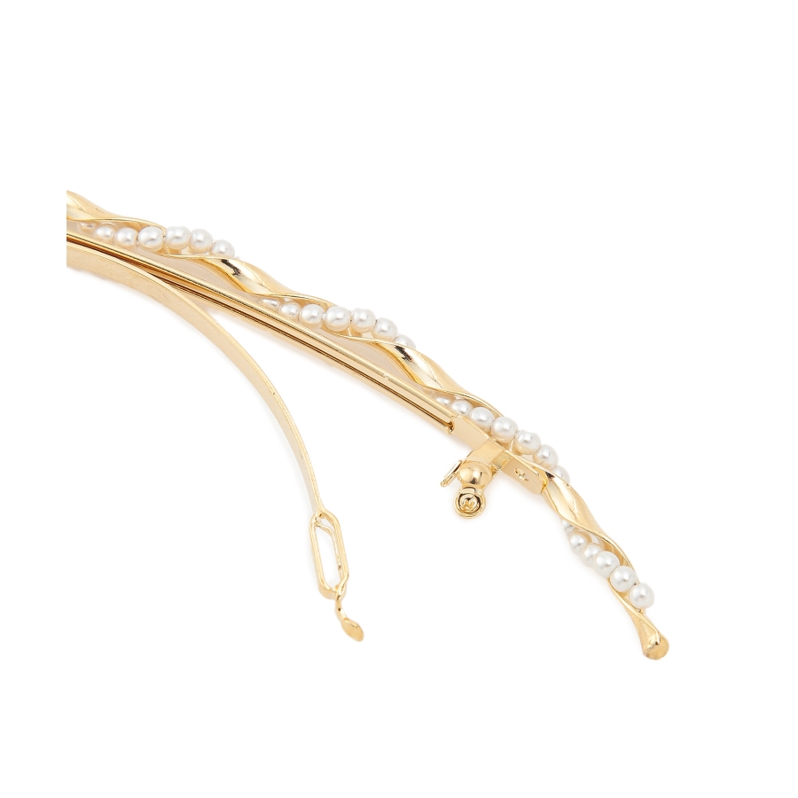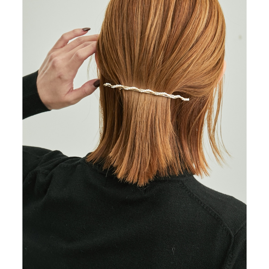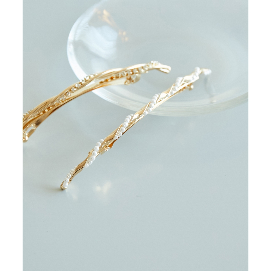 【デザイン・シルエット】 ・立体感のあるツイストデザインが特徴のメタルバレッタ。 ・細やかなビジューとパールで華やかにデコレーション。 【カラー】 ・カラーによって組成の混率が異なります。 ホワイト(10):ビジュー 合金 ガラス キナリ(16):パール 合金 人造真珠 【スタイリングポイント】 ・フォーマルスタイルから、デイリーのカジュアルコーデまで、幅広く合わせやすい。 ※撮影時の光、お使いのモニター環境によって色の見え方が違う場合がございます。