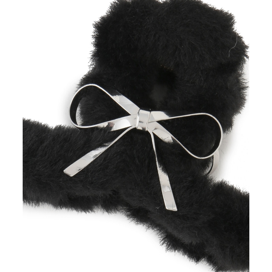 【デザイン・シルエット】 ・ふわふわのフェイクファーをたっぷり使った、冬仕様のヘアバンス。 ・アクセントで添えたメタルリボンが見逃せないポイント。 【カラー】 ・ブラック、アイボリーのモノトーン2色展開。 【スタイリングポイント】 ・簡単なハーフアップも華やかな印象に。 ・お出かけシーンなどのきれいめルックにも合わせやすいのが魅力。 ※撮影時の光、お使いのモニター環境によって色の見え方が違う場合がございます。
