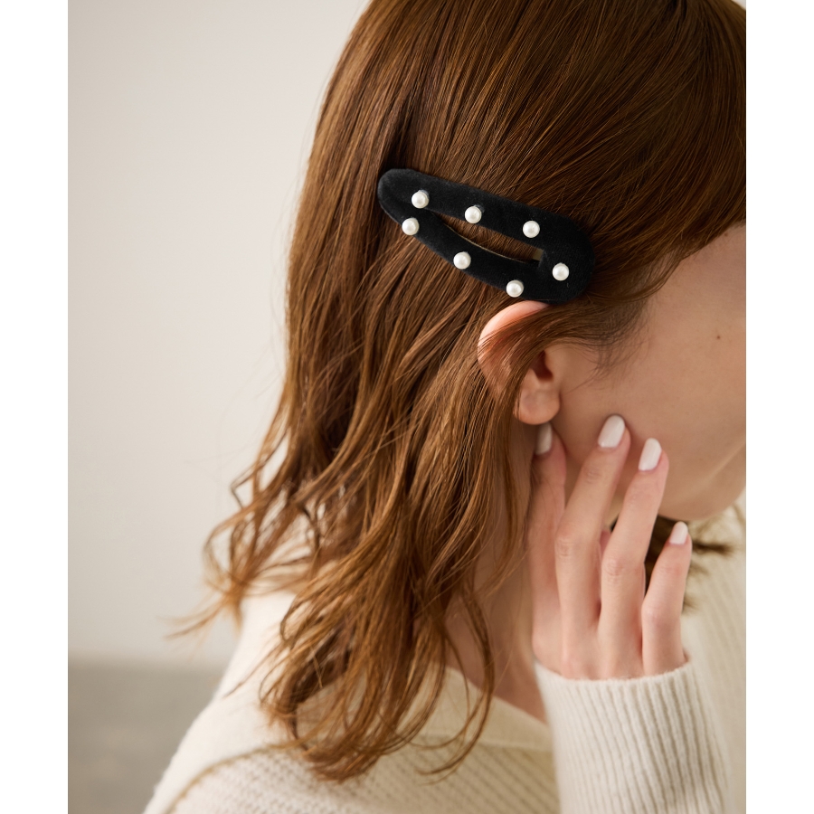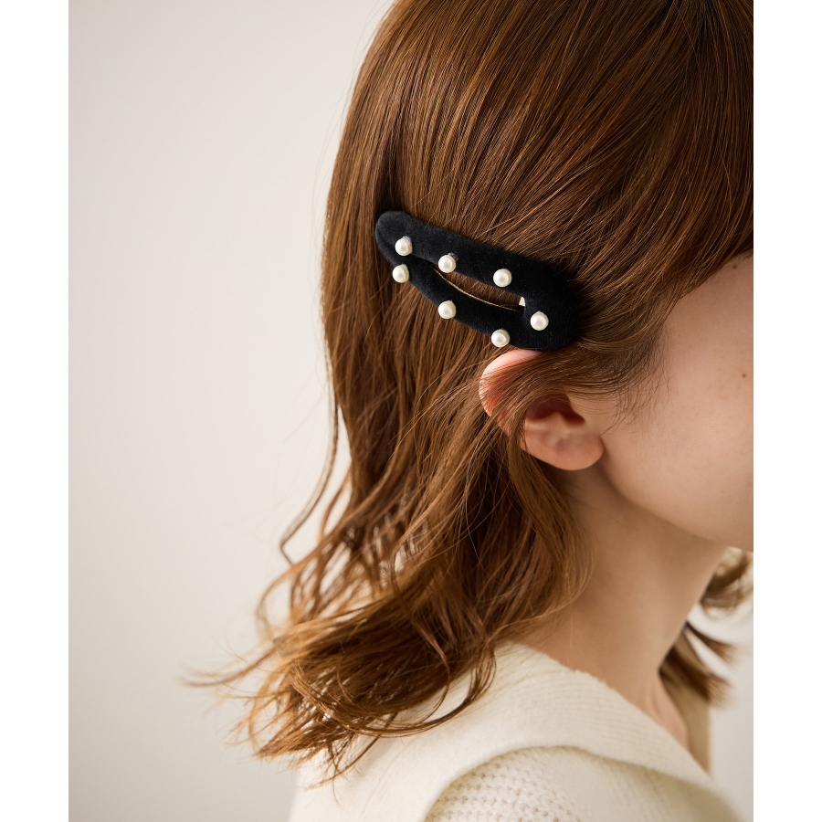 ・均等にあしらわれたパールが、クラシカルで顔周りをパッと華やか見せる。