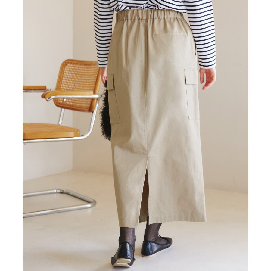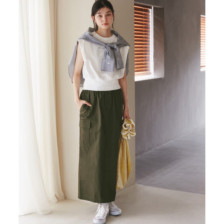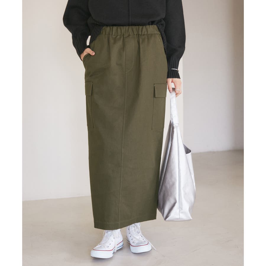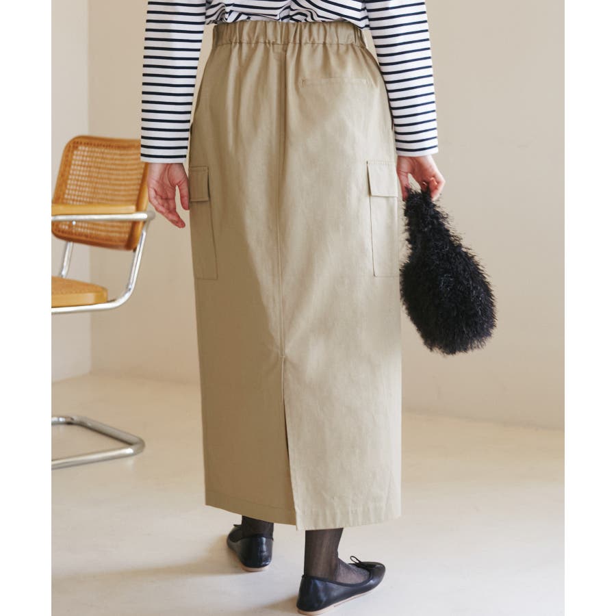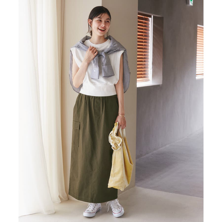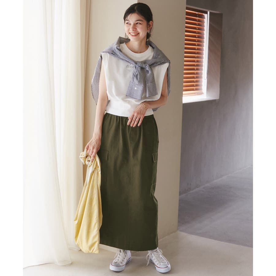 【素材感】 ・ベージュ(27)のみに箔プリントを施した今年らしいスカートは、プリントの後に洗いをかける事で、程良い箔プリントが完成。 ・カーキ(36)は箔プリントを施していないので、シンプルに着たい方におすすめ。 【デザイン・シルエット】 ・ナローシルエットとミディアム丈で、大人っぽく仕上げたカーゴスカート。 ・ギャザーウエストで穿き心地もラクラク。 ・バックスリット入りで歩きやすさにも配慮。 ・便利なサイドポケット付き。 【カラー】 ・ベージュ、カーキのアースカラー2色展開。 【スタイリングポイント】 ・カレッジロゴTシャツやスウェットシャツ、フーディーなどが好相性。 ・レーストップスを合わせると女性らしい着こなしに。 ・足もとはハイカット数にーカーがおすすめ。 ----------------------------- 裏地:なし 透け感:なし 伸縮性なし 生地感・厚さ:普通 ウエスト:ゴム ポケット:あり 季節:通年 ----------------------------- ※撮影時の光、お使いのモニター環境によって色の見え方が違う場合がございます。 ※モデル身長:166cm 着用サイズ:38