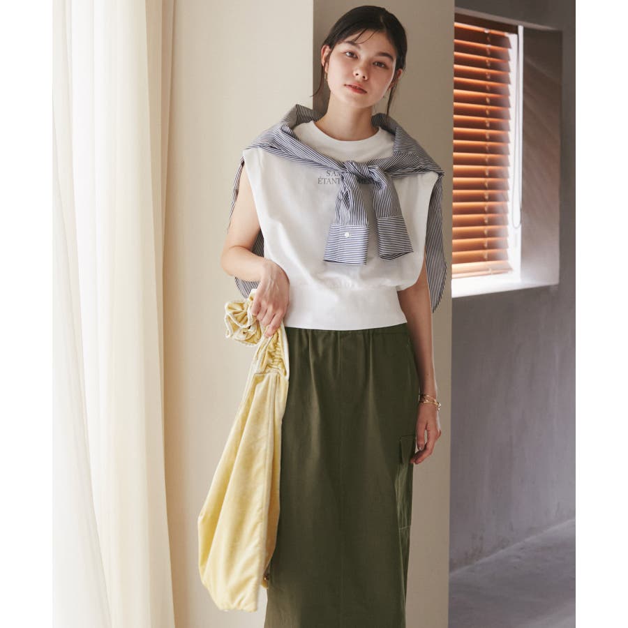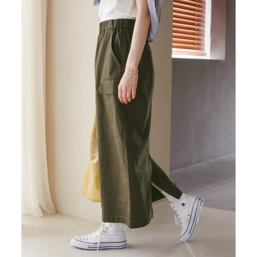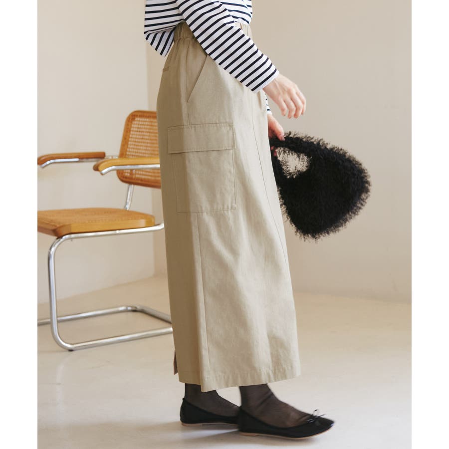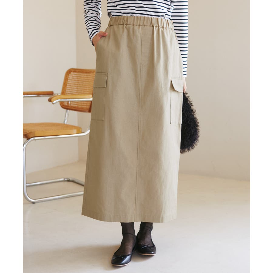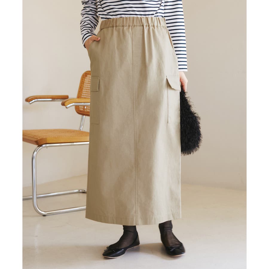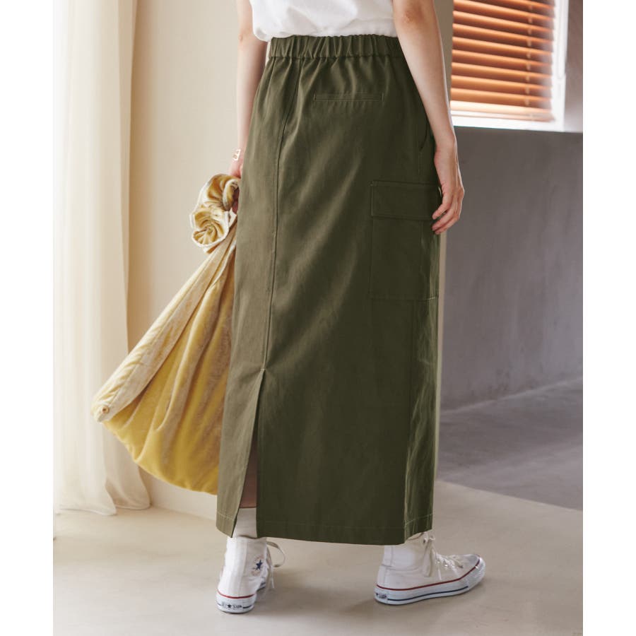 【素材感】 ・ベージュ(27)のみに箔プリントを施した今年らしいスカートは、プリントの後に洗いをかける事で、程良い箔プリントが完成。 ・カーキ(36)は箔プリントを施していないので、シンプルに着たい方におすすめ。 【デザイン・シルエット】 ・ナローシルエットとミディアム丈で、大人っぽく仕上げたカーゴスカート。 ・ギャザーウエストで穿き心地もラクラク。 ・バックスリット入りで歩きやすさにも配慮。 ・便利なサイドポケット付き。 【カラー】 ・ベージュ、カーキのアースカラー2色展開。 【スタイリングポイント】 ・カレッジロゴTシャツやスウェットシャツ、フーディーなどが好相性。 ・レーストップスを合わせると女性らしい着こなしに。 ・足もとはハイカット数にーカーがおすすめ。 ----------------------------- 裏地:なし 透け感:なし 伸縮性なし 生地感・厚さ:普通 ウエスト:ゴム ポケット:あり 季節:通年 ----------------------------- ※撮影時の光、お使いのモニター環境によって色の見え方が違う場合がございます。 ※モデル身長:166cm 着用サイズ:38