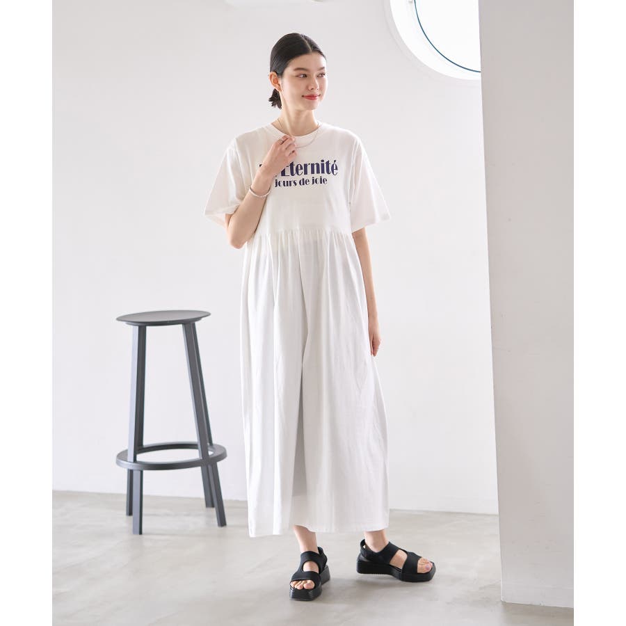 【デザイン・シルエット】 ・身頃を拾いにくい、ゆったりシルエットのカットワンピース。 ・ハイウエスト位置で切り替えを入れ、脚長効果を期待できるディテールもプラス。 ・フロントにアクセントのロゴ入り。 【カラー】 ・ブラック、チャコールグレー、オフホワイト、レッドの4色展開。 【スタイリングポイント】 ・ソックスと、スニーカーやサンダルでキュートなカジュアルコーデが完成。 ・パーカーなどの羽織ものを活用すれば、早い時期から着用可能。 ----------------------------- 裏地:なし 透け感:オフホワイト(15)はややあり 伸縮性:ややあり 生地感・厚さ:普通 ポケット:なし ファスナー:なし 季節:夏 ----------------------------- ※撮影時の光、お使いのモニター環境によって色の見え方が違う場合がございます。 ※モデル身長:166cm 着用サイズ:38