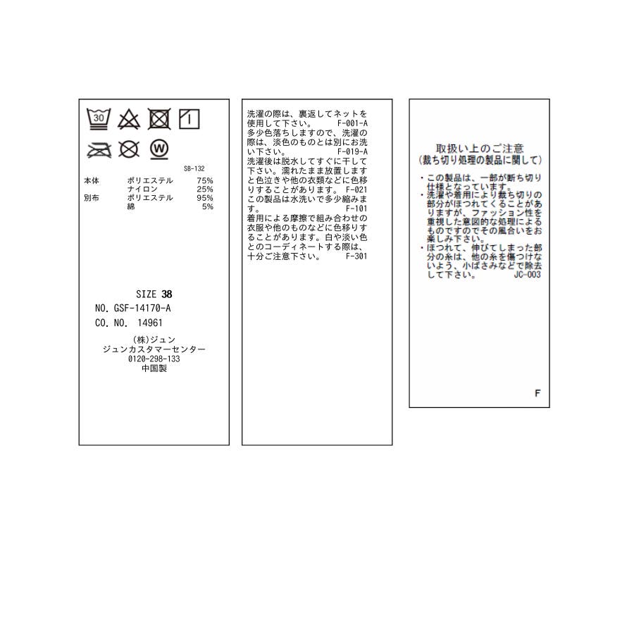 | 38 | 190(リボン含む)cm | 15.7cm | (裾幅)103 |