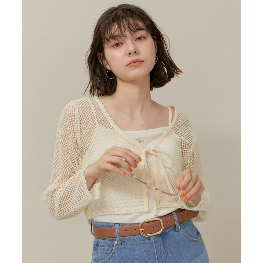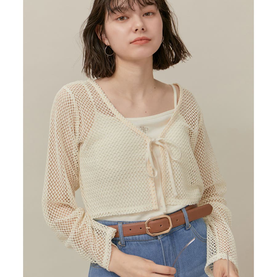 クロップドメッシュカットカーディガン