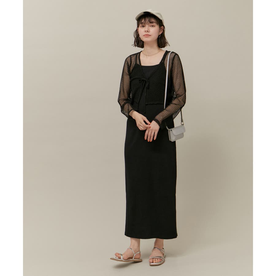 【素材感】 ・ドライタッチなニットのような見え感のメッシュ素材で、カジュアルスタイルにもフェミニンスタイルにも◎ 【デザイン・シルエット】 ・すっきりとしたクロップド丈のカットカーディガン。 ・異素材の配色切り替えで、メリハリをプラス。 ・ネックリボンがノスタルジックさを演出。 ・袖は絞りがなく、真っ直ぐのラインに。 【カラー】 ・ブラック、アイボリーのモノクロカラー2色展開。 【スタイリングポイント】 ・ワンピースの羽織に最適の着丈。 ・ロング丈のトップスやチュニックブラウスとのレイヤードにも便利。 ・夏場の冷房対策にさっと羽織れる優れもの。 ----------------------------- 裏地:なし 透け感:あり 伸縮性:なし 生地感・厚さ:薄手 ポケット:なし 季節:春~秋 ----------------------------- ※撮影時の光、お使いのモニター環境によって色の見え方が違う場合がございます。 ※モデル身長:166cm 着用サイズ:38