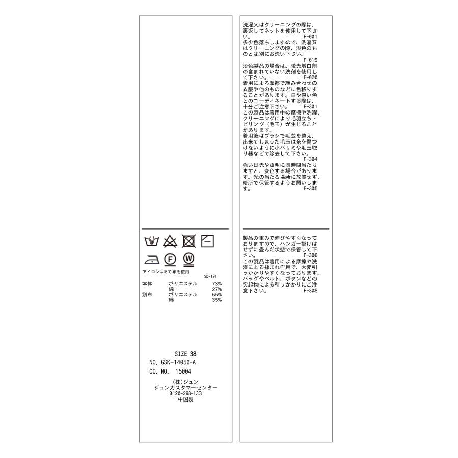 | 素材 | ブラック(01):(本体) ポリエステル 73% 綿 27% (別布) ポリエステル 65% 綿 35%|キナリ(16):(本体) ポリエステル 73% 綿 27% (別布) ポリエステル 65% 綿 35% |