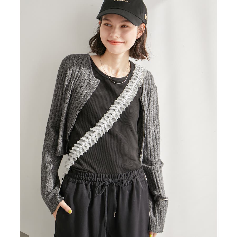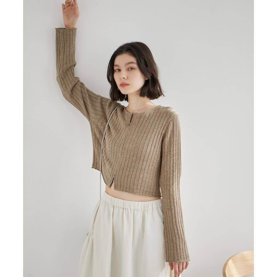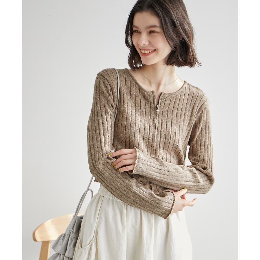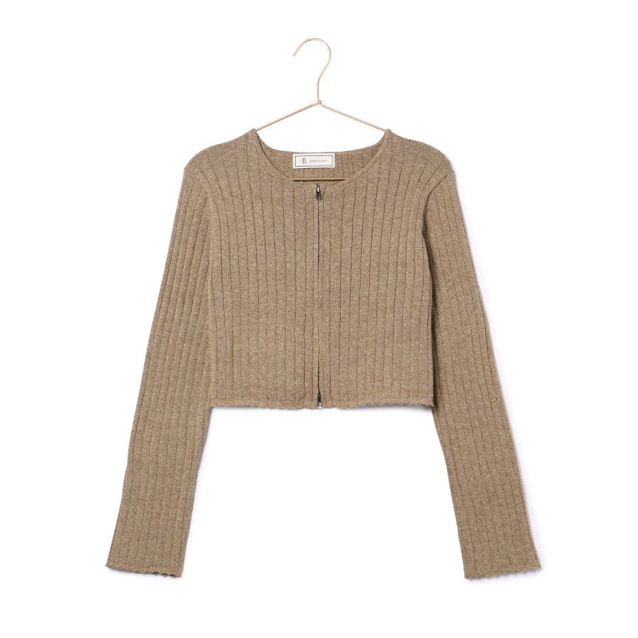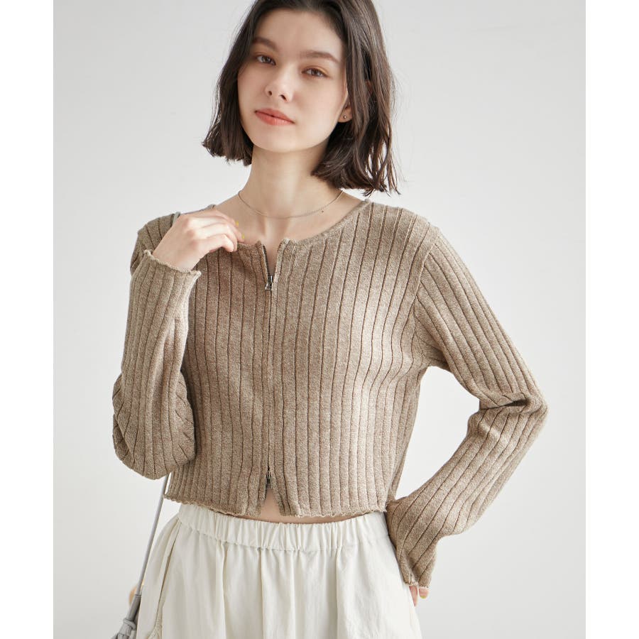【素材感】 ・立体感のあるワイドリブニットを採用。 【デザイン・シルエット】 ・フロントジップのショート丈ニットカーディガン。 ・ネックの開きはやや広く、女性らしい仕上がり。 ・同シリーズで襟付きジップカーディガン(品番:GDK24030)も展開。 【カラー】 ・ブラック、ブラウン、ライトグリーンの3色展開。 【スタイリングポイント】 ・ハイライズのボトムと好バランス。 ・ロング丈のカットソーやシャツに重ねたレイヤードもおすすめ。 ・ワンピースの羽織にも取り入れやすい。 ----------------------------- 裏地:なし 透け感:なし 伸縮性:あり 生地感・厚さ:普通 ポケット:なし 季節:春・秋 ----------------------------- ※撮影時の光、お使いのモニター環境によって色の見え方が違う場合がございます。 ※モデル身長:166cm 着用サイズ:38