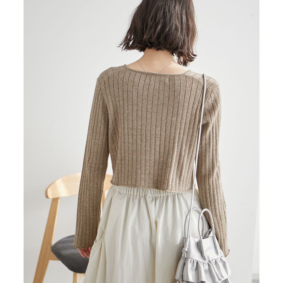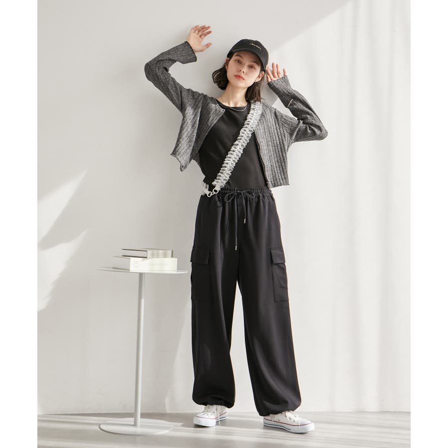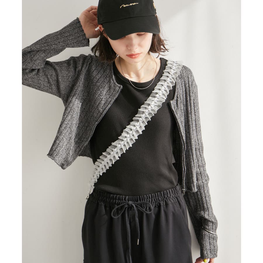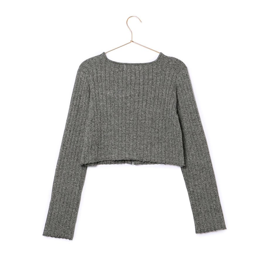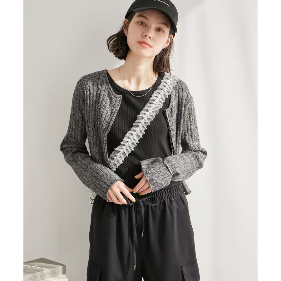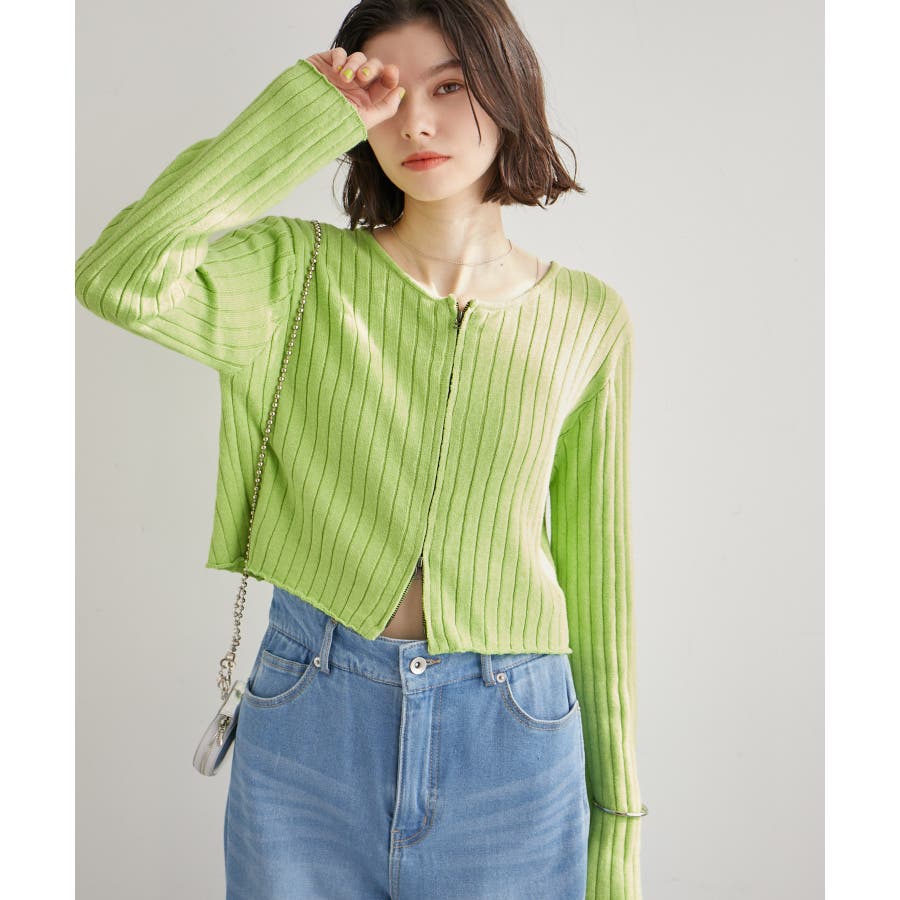 【素材感】 ・立体感のあるワイドリブニットを採用。 【デザイン・シルエット】 ・フロントジップのショート丈ニットカーディガン。 ・ネックの開きはやや広く、女性らしい仕上がり。 ・同シリーズで襟付きジップカーディガン(品番:GDK24030)も展開。 【カラー】 ・ブラック、ブラウン、ライトグリーンの3色展開。 【スタイリングポイント】 ・ハイライズのボトムと好バランス。 ・ロング丈のカットソーやシャツに重ねたレイヤードもおすすめ。 ・ワンピースの羽織にも取り入れやすい。 ----------------------------- 裏地:なし 透け感:なし 伸縮性:あり 生地感・厚さ:普通 ポケット:なし 季節:春・秋 ----------------------------- ※撮影時の光、お使いのモニター環境によって色の見え方が違う場合がございます。 ※モデル身長:166cm 着用サイズ:38