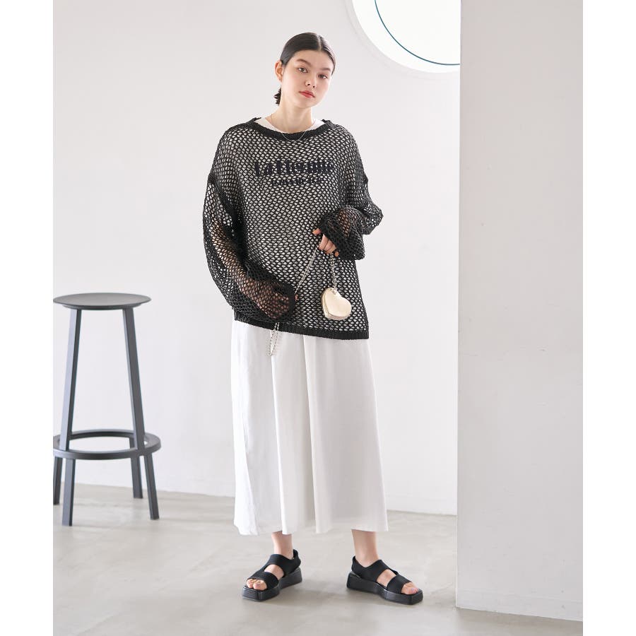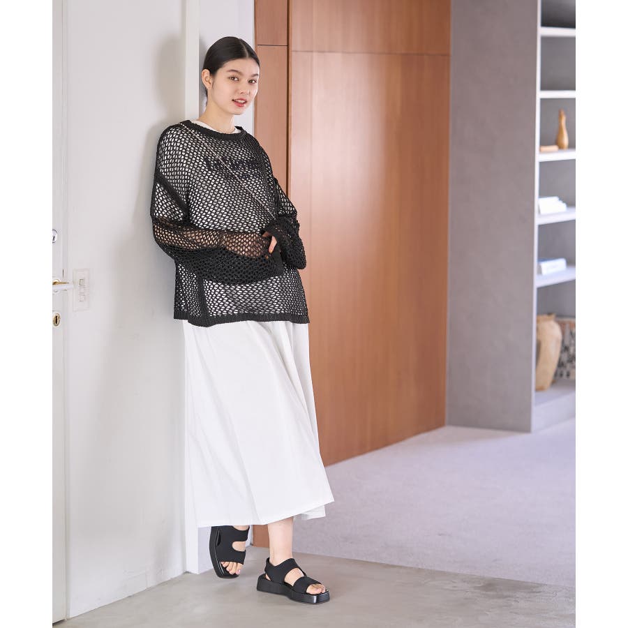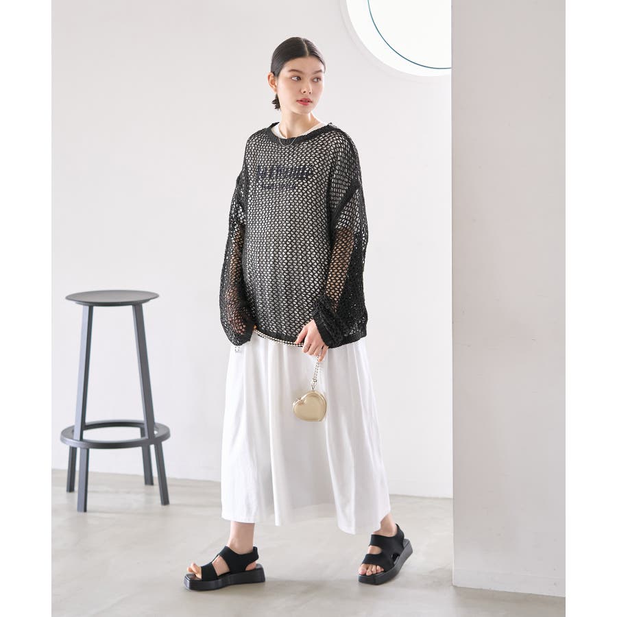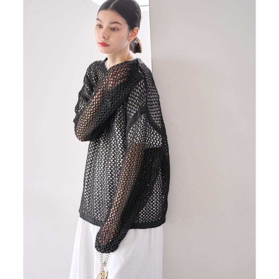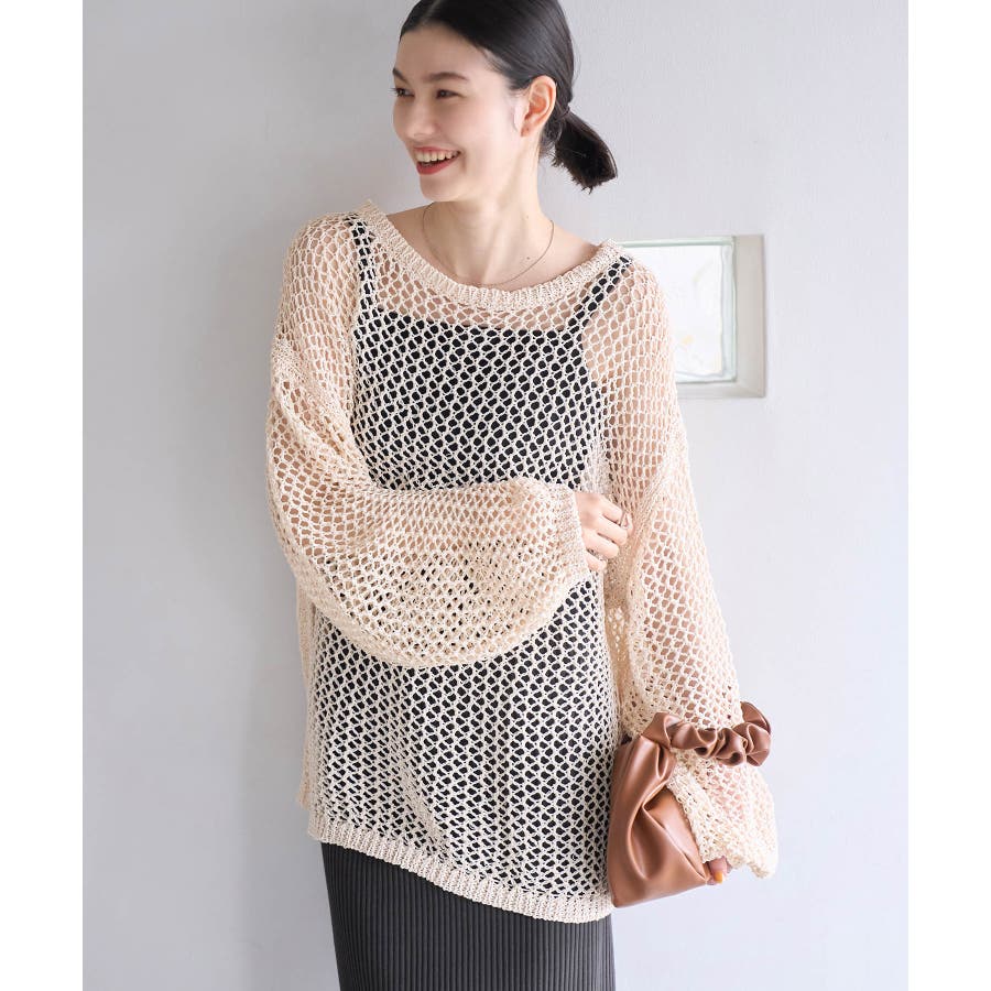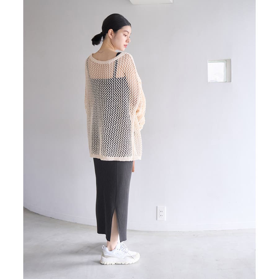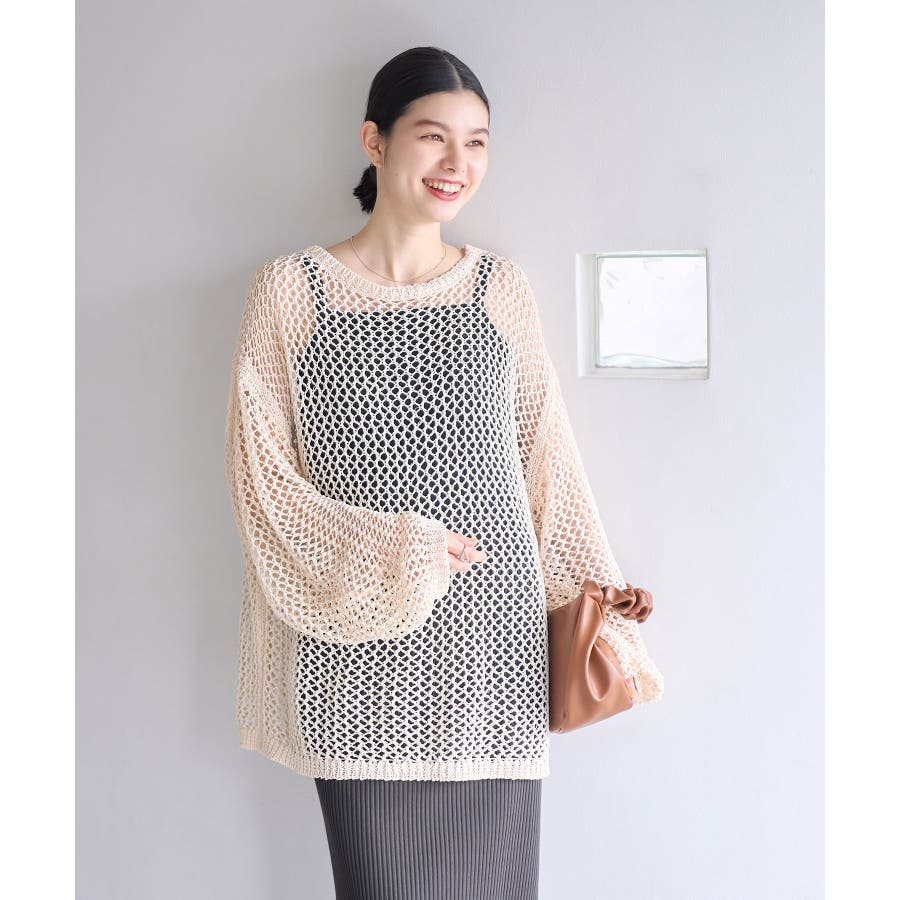 【デザイン・シルエット】 ・ルーズに着こなす、ゆったりとしたメッシュ編みの長袖クルーネックニット。 ・透け感が魅力で、幅広いレイヤードに対応。 【カラー】 ・チャコールグレー、アイボリー、キャメルの合わせやすい3色展開。 【スタイリングポイント】 ・タンクトップやキャミソールの他、スリーブレスワンピースとのレイヤードも◎。 ・ストンと落ちるシルエットは、ロングスカートとのバランス感もモダンに見える。 ----------------------------- 裏地:なし 透け感:あり 伸縮性:あり 生地感・厚さ:やや薄手 季節:春・秋 ----------------------------- ※撮影時の光、お使いのモニター環境によって色の見え方が違う場合がございます。 ※モデル身長:166cm 着用サイズ:38
