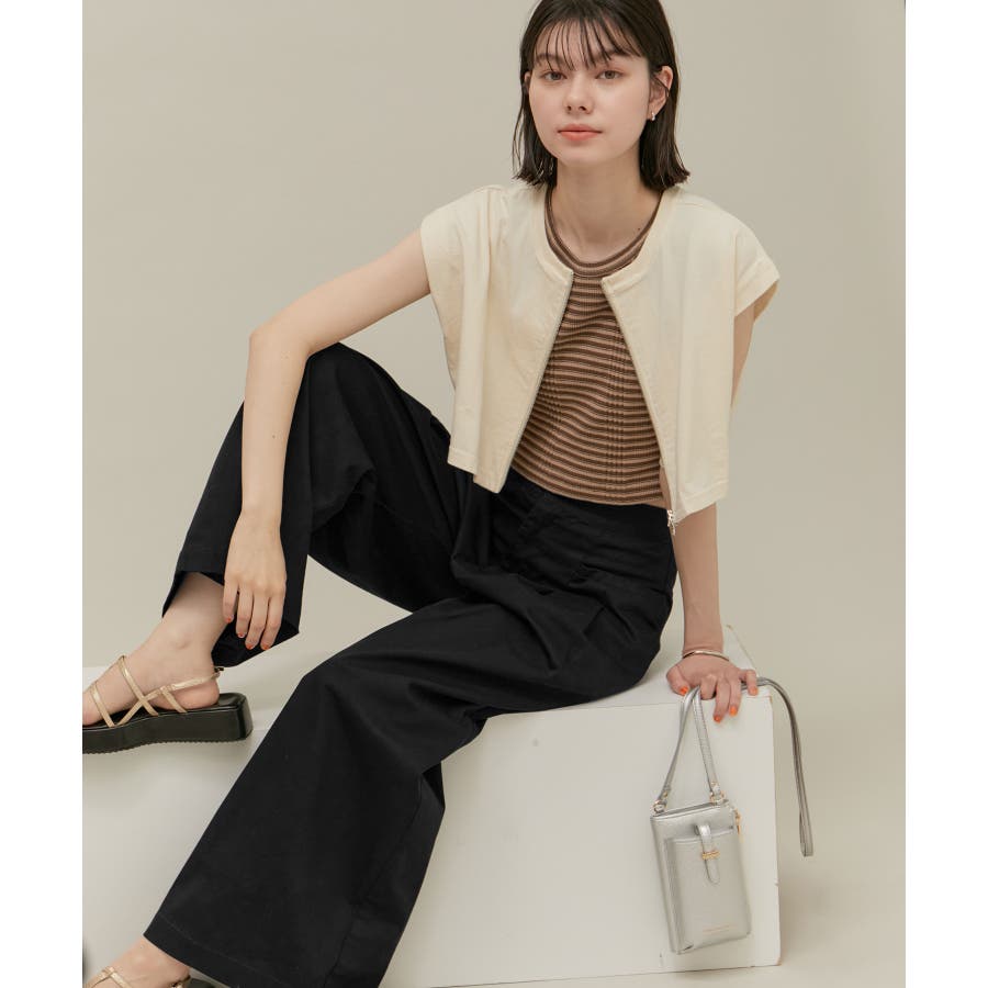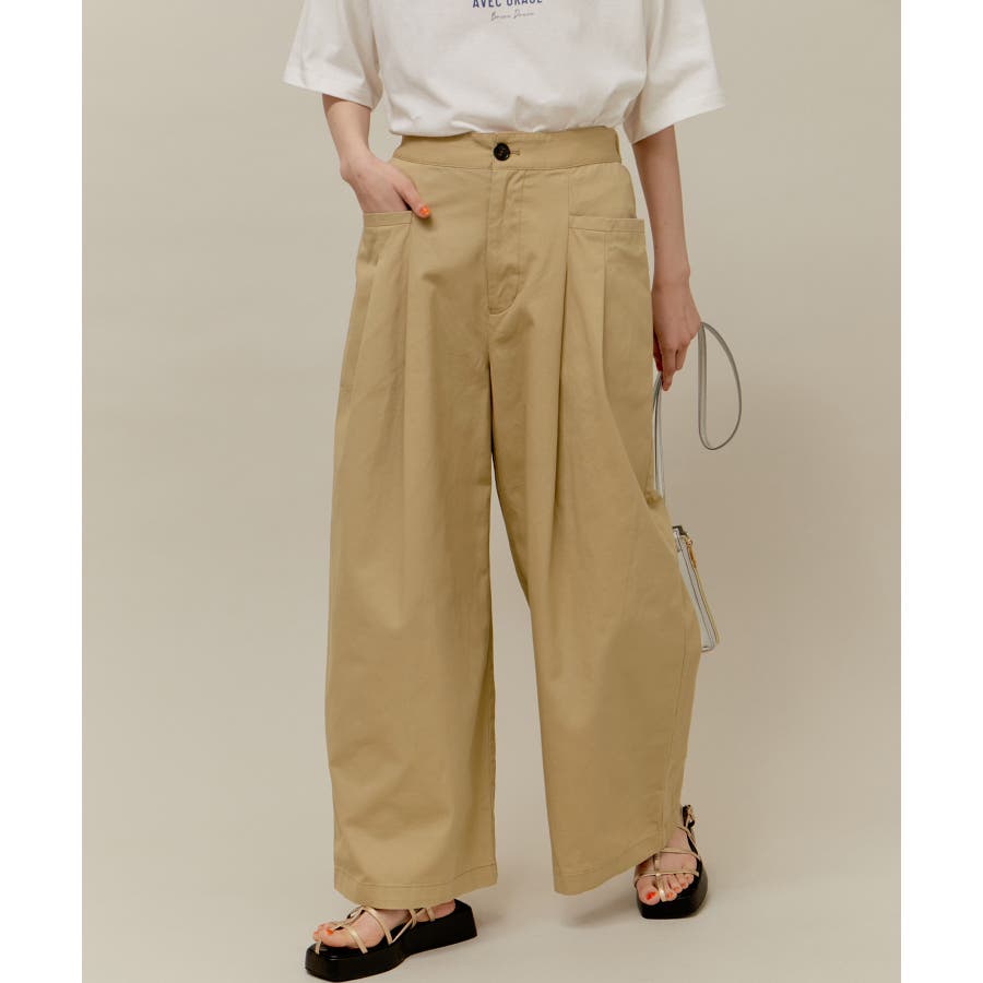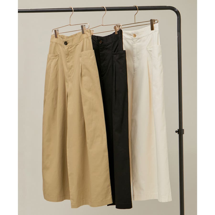 【デザイン・シルエット】 ・存在感のあるサイドポケットと2本のタックで腰周りをカバーしつつ、すっきりと見せてくれるデザインパンツ。 ・裾に向かってのワイドなシルエット、やや長めの股下丈でゆるっと今年らしく穿ける。 ・ベルトラインは後ろ側がゴム仕様でラクチン。 【カラー】 ・ブラック、オフホワイト、キャメルの合わせやすい3色展開。 【スタイリングポイント】 ・クロップド丈のトップスと好バランス。 ・ボーダーシャツに合わせて爽やかな夏の着こなしに。 ----------------------------- 裏地:なし 透け感:なし 伸縮性:なし 生地感・厚さ:普通 ポケット: あり ウエスト:後ろゴム 季節:通年 ----------------------------- ※撮影時の光、お使いのモニター環境によって色の見え方が違う場合がございます。 ※モデル身長:165cm 着用サイズ:38