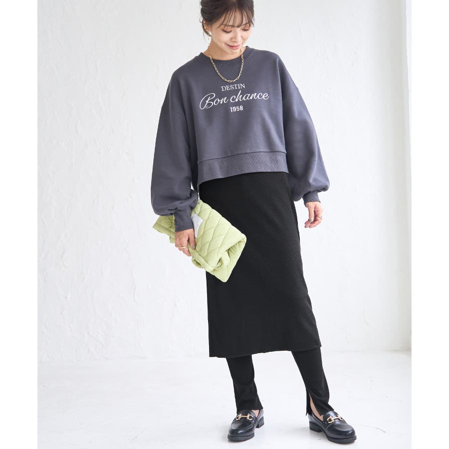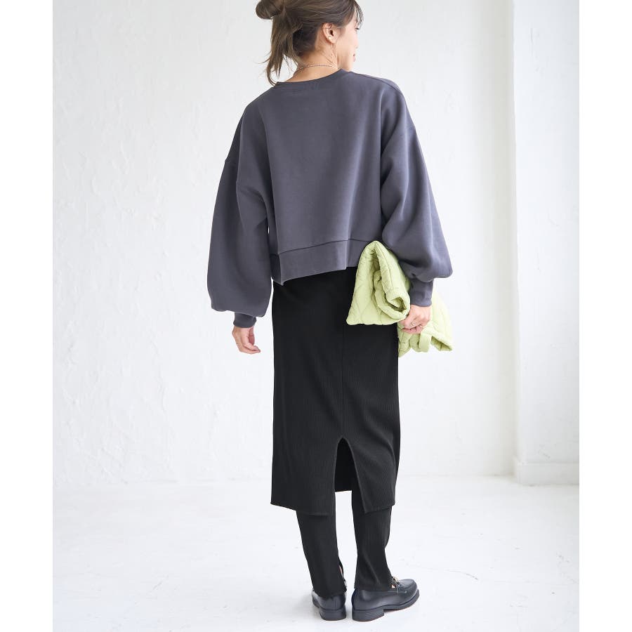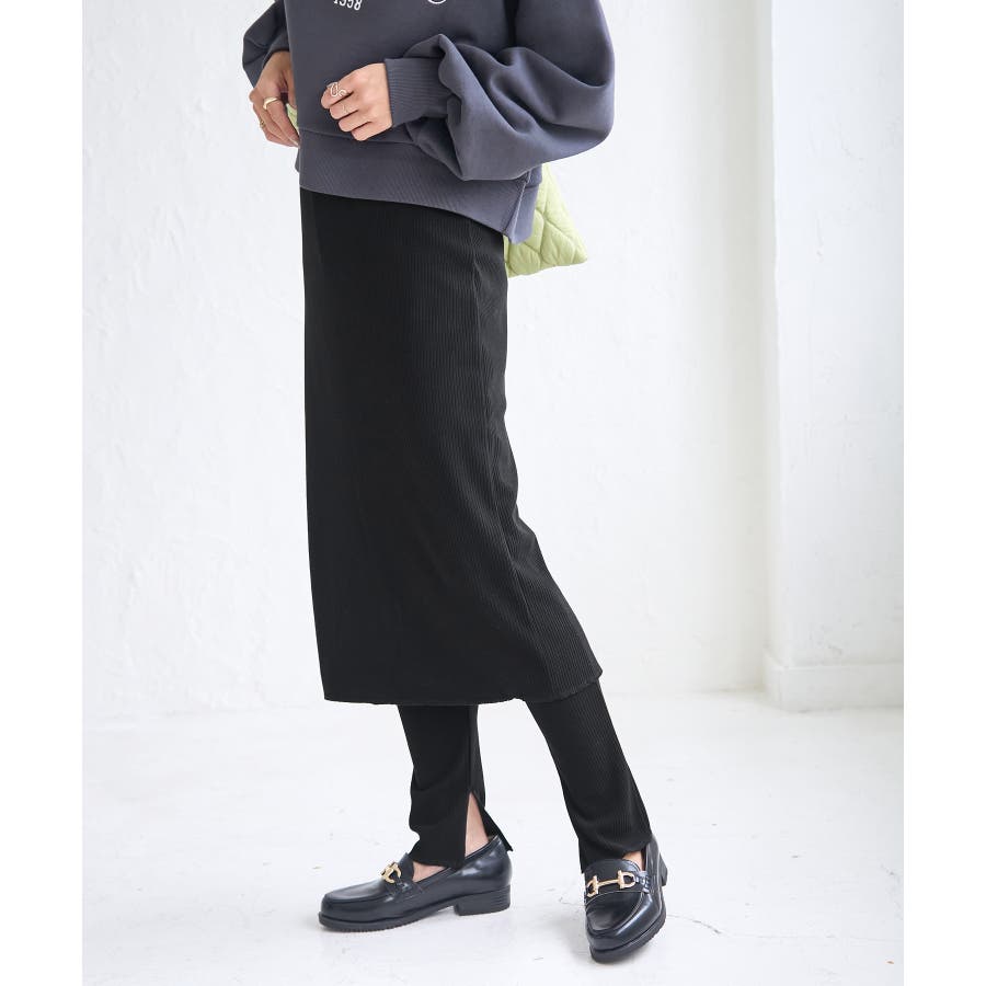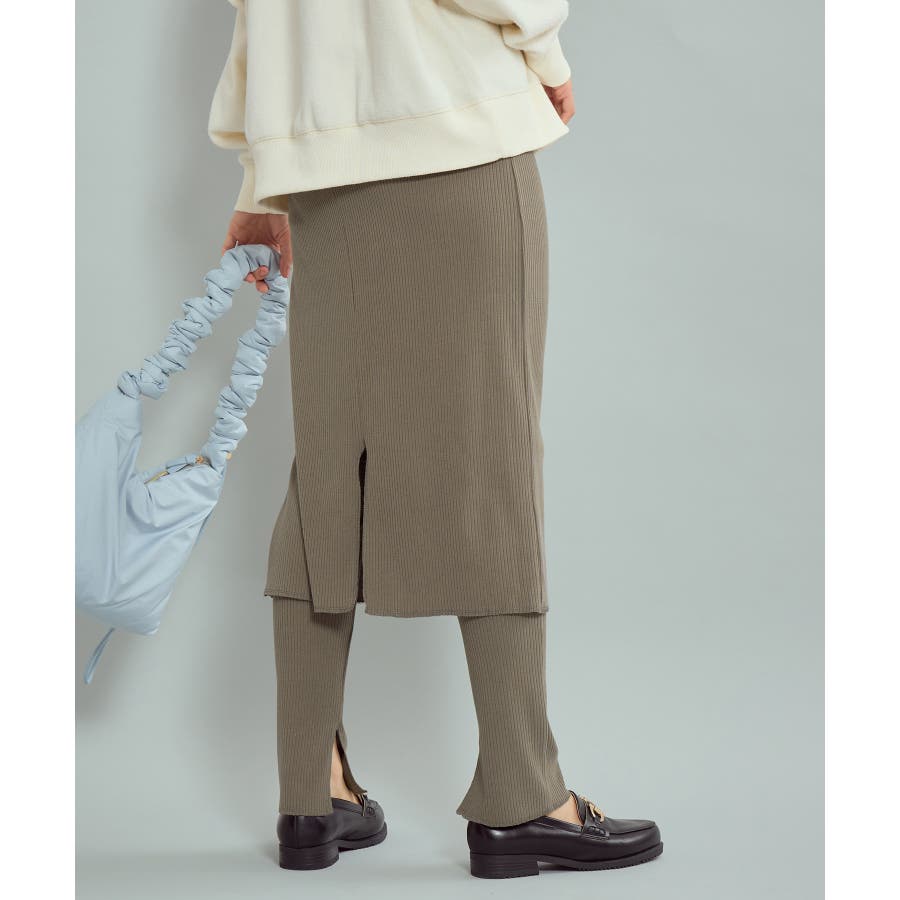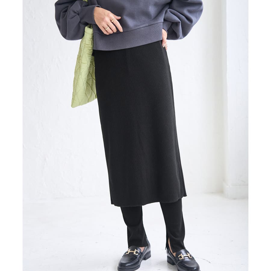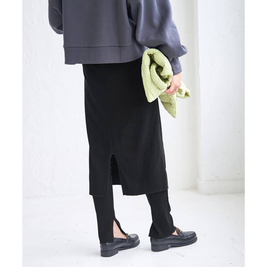 【素材感】 ・ウォーム感のあるリブカットソー素材を使用。 【デザイン・シルエット】 ・スカートとパンツのセットアイテム。 ・スカートもパンツもリブ仕立てにより細身のライン。 ・スカート丈は膝下のやや長め。 【カラー】 ・ブラック、カーキのシャープな2色を展開。 【スタイリングポイント】 ・カジュアルなスウェットシャツやフーディーは、ビッグサイズのものをわせるとモダンな仕上がりに。 ・足元はローカットスニーカーや、フラットシューズを合わせて。 ----------------------------- 裏地:なし 透け感:なし 伸縮性:あり 生地感・厚さ:普通 ポケット:なし その他仕様:パンツとスカートはくっついています。 季節:秋・春 ----------------------------- ※撮影時の光、お使いのモニター環境によって色の見え方が違う場合がございます。 ※モデル身長:166cm 着用サイズ:38/160cm 着用サイズ:38
