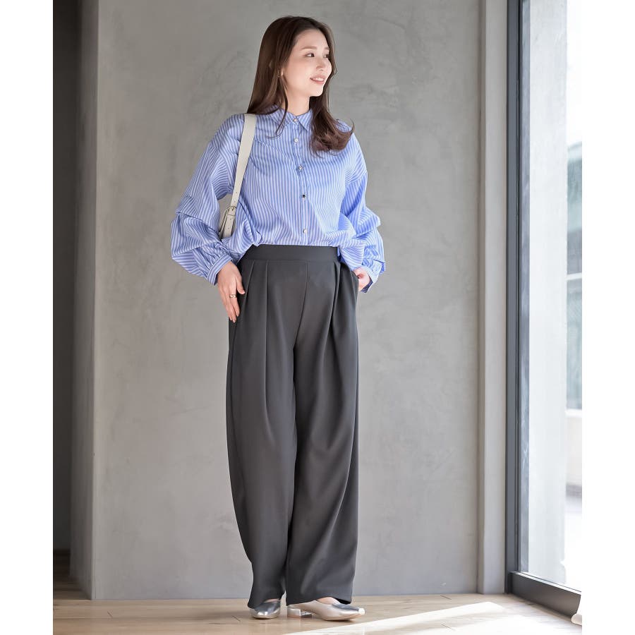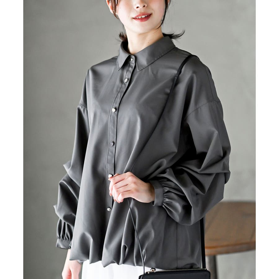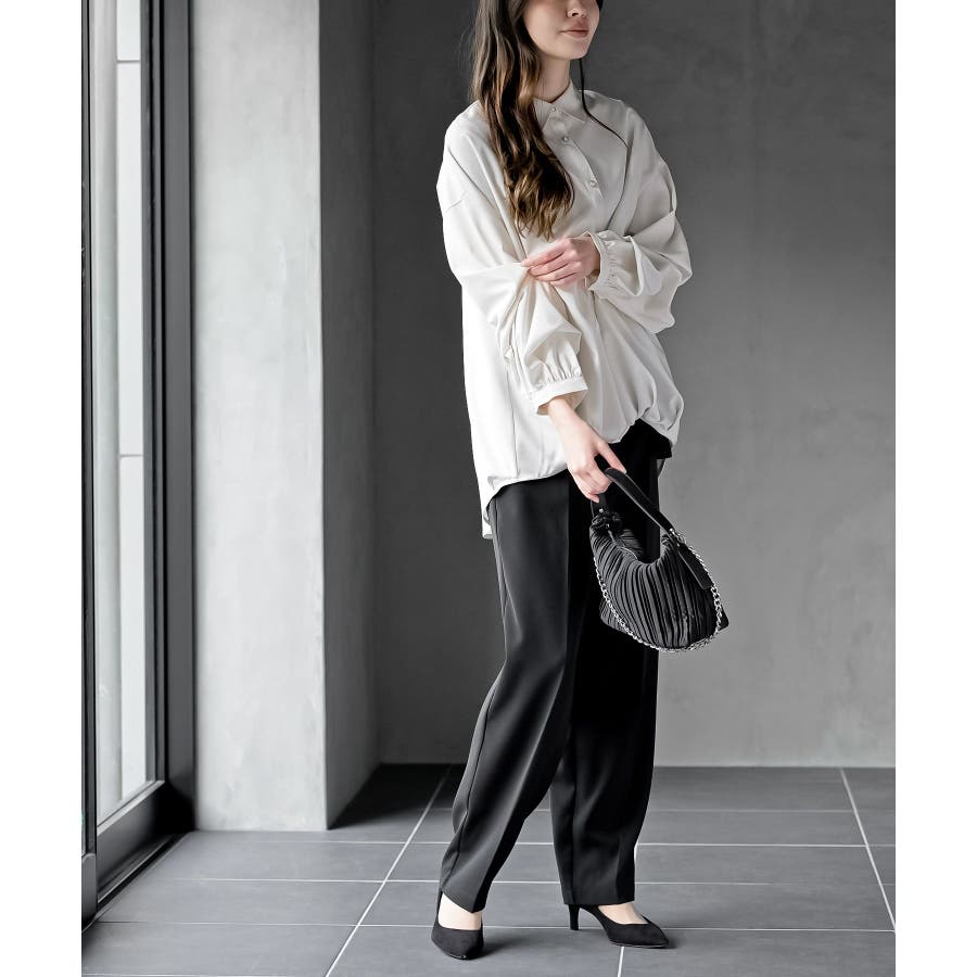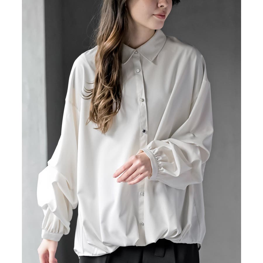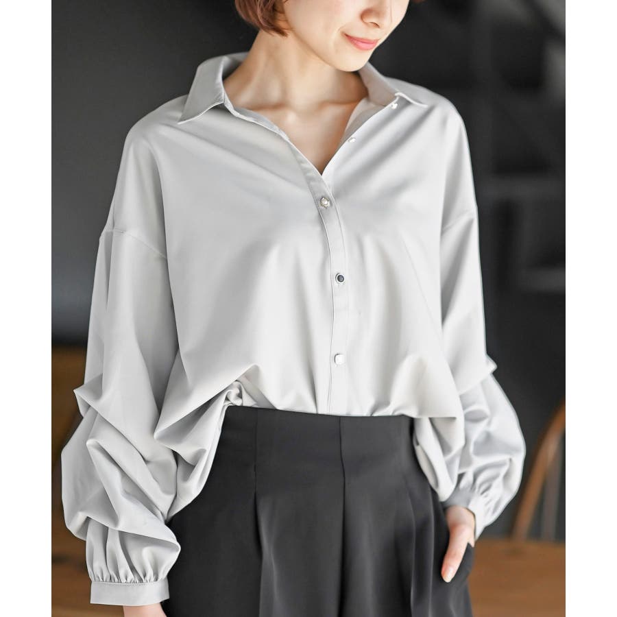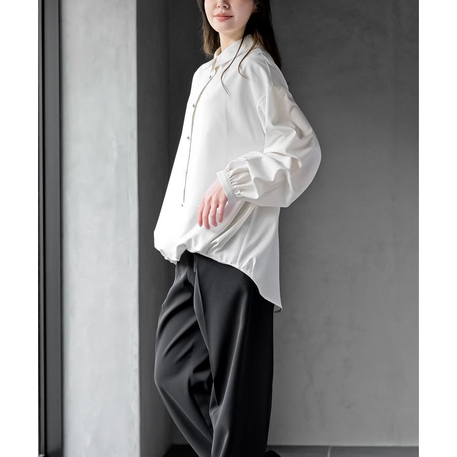 変形スリーブ裾タック多釦ブラウス