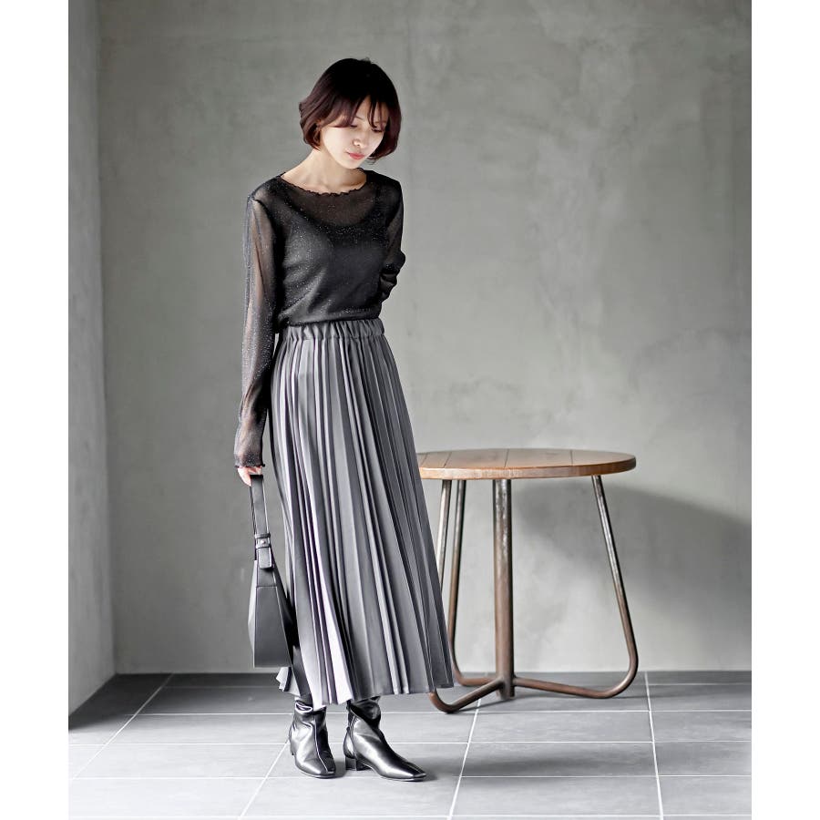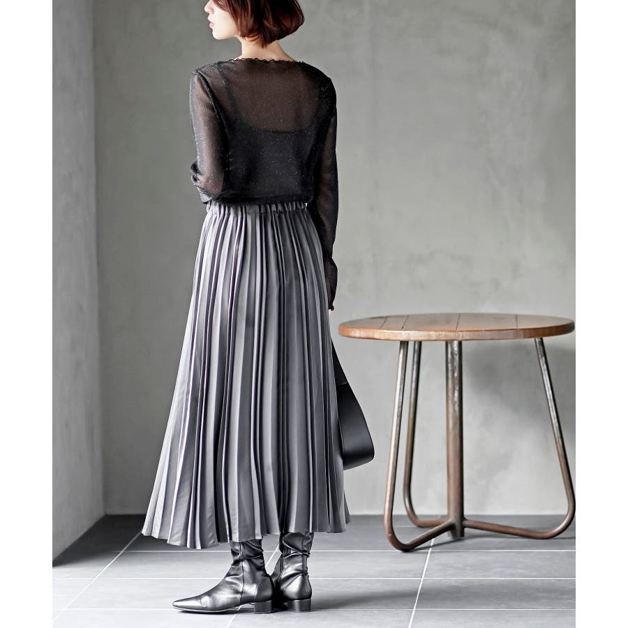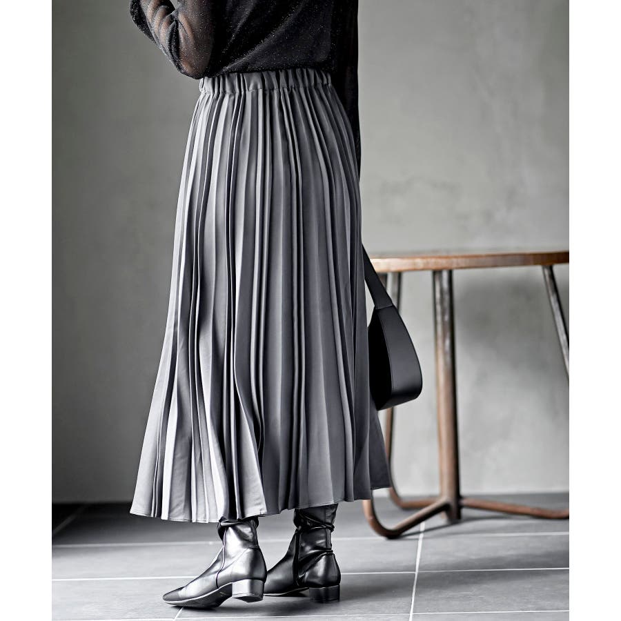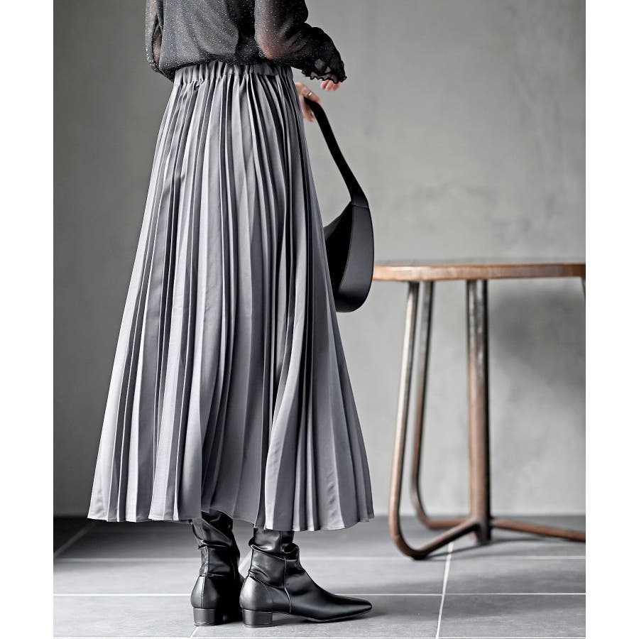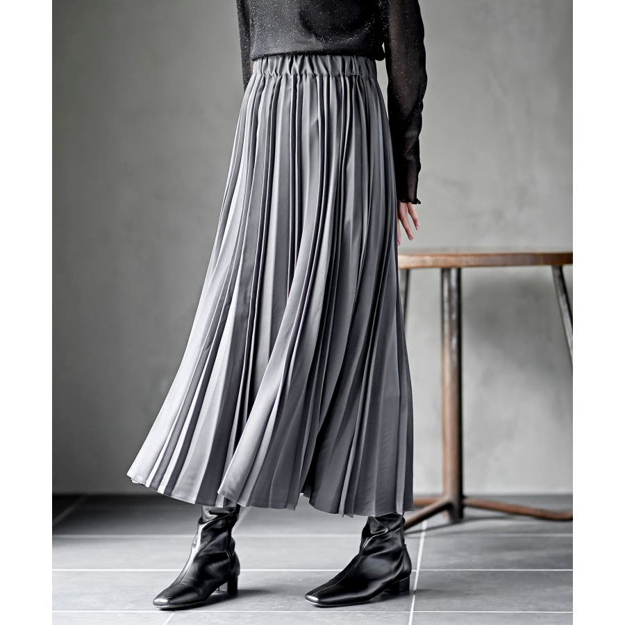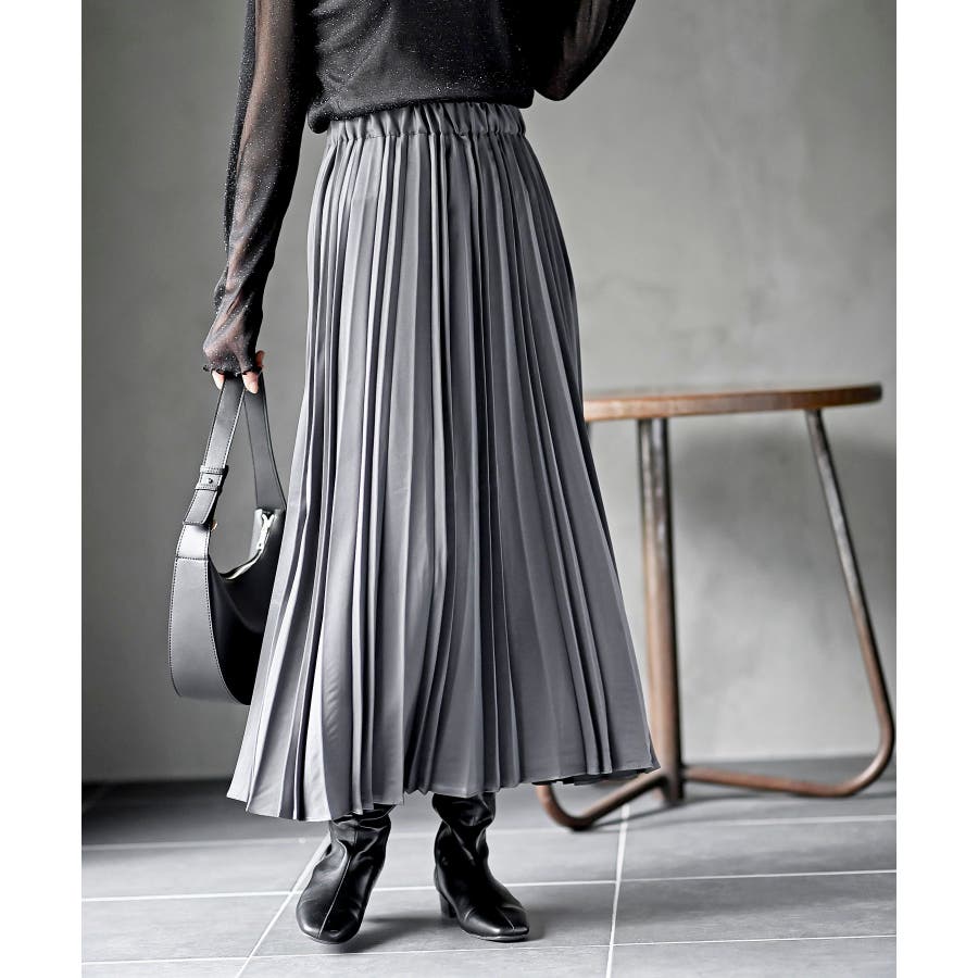 ランダムプリーツなのでシワが目立たず、サテンのような質感がとても高見えします!ブラックコーデにチャコールグレー最高です