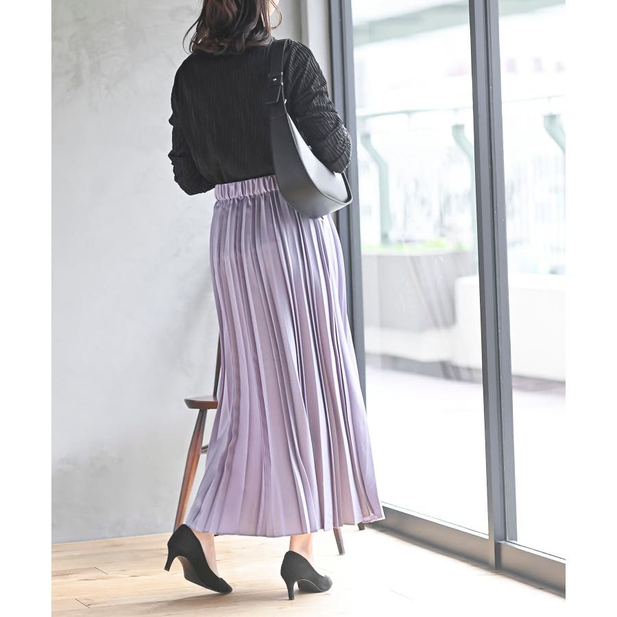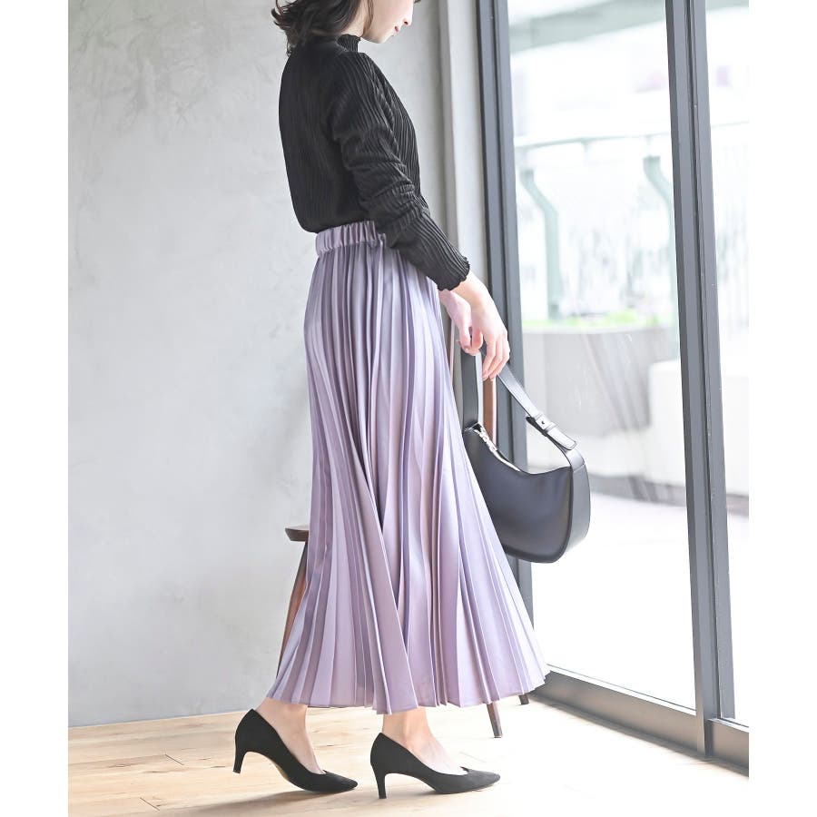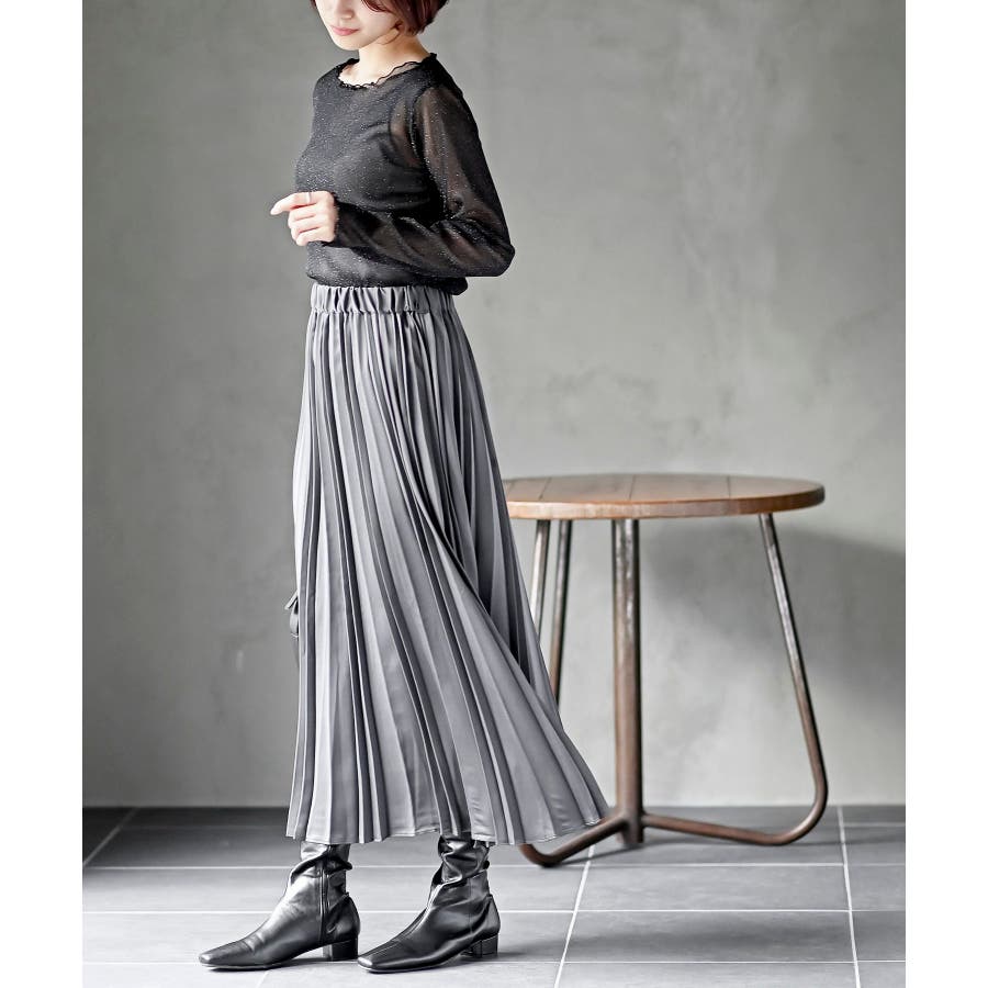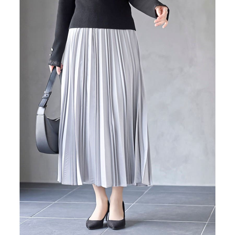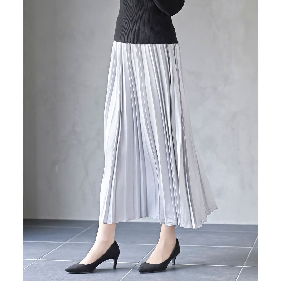ランダムプリーツなのでシワが目立たず、サテンのような質感がとても高見えします!ブラックコーデにチャコールグレー最高です