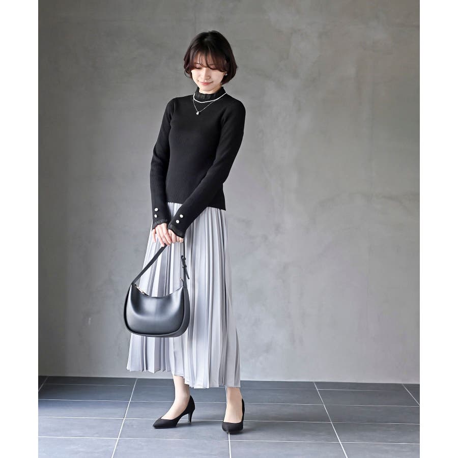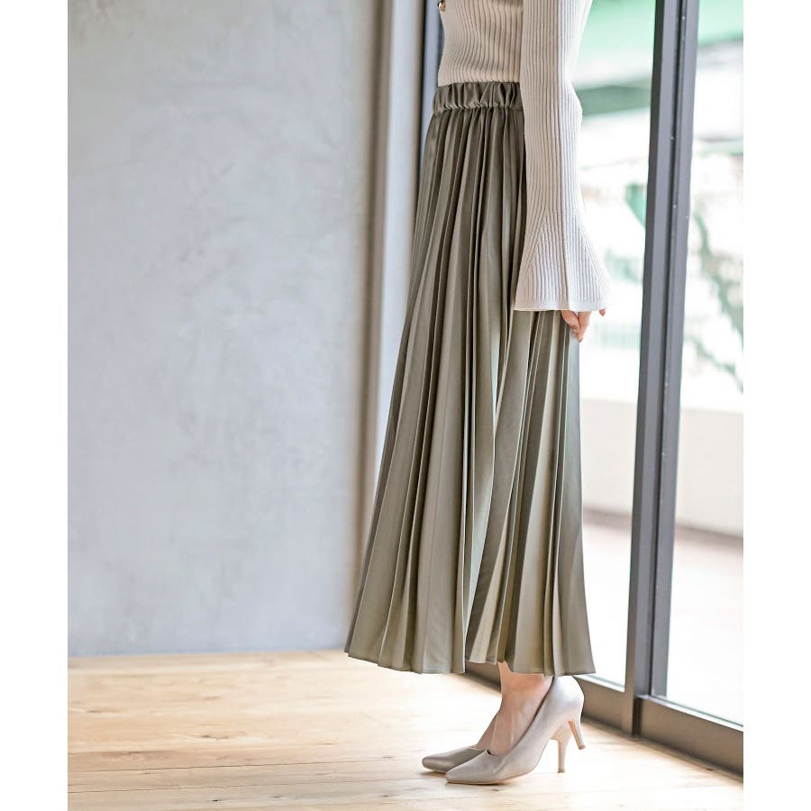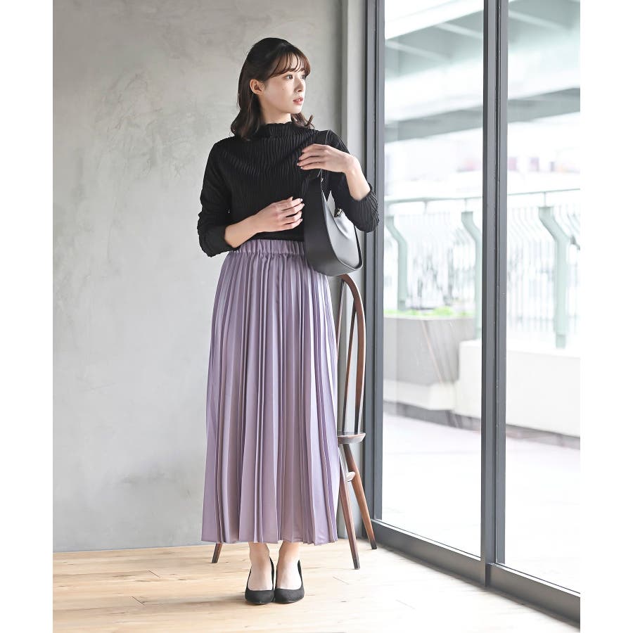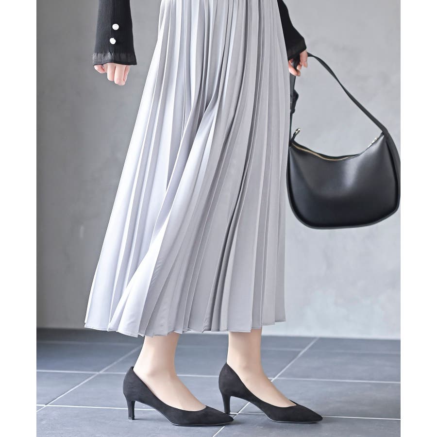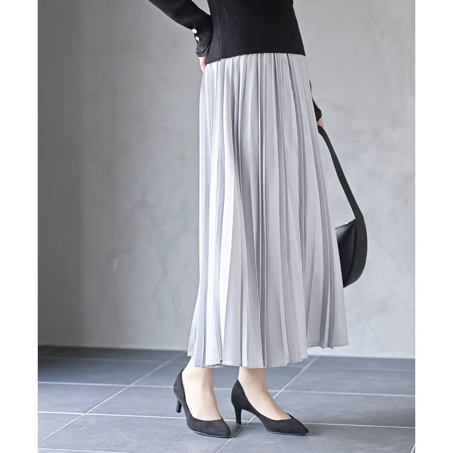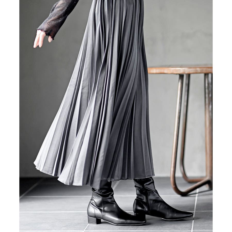 ランダムプリーツなのでシワが目立たず、サテンのような質感がとても高見えします!ブラックコーデにチャコールグレー最高です