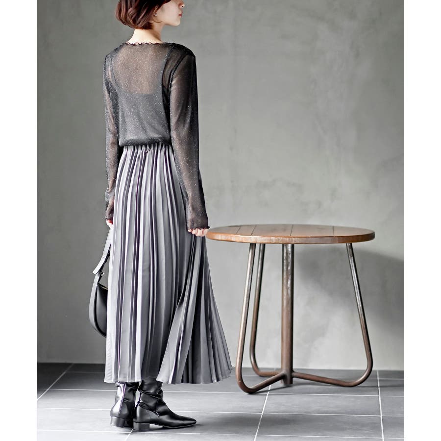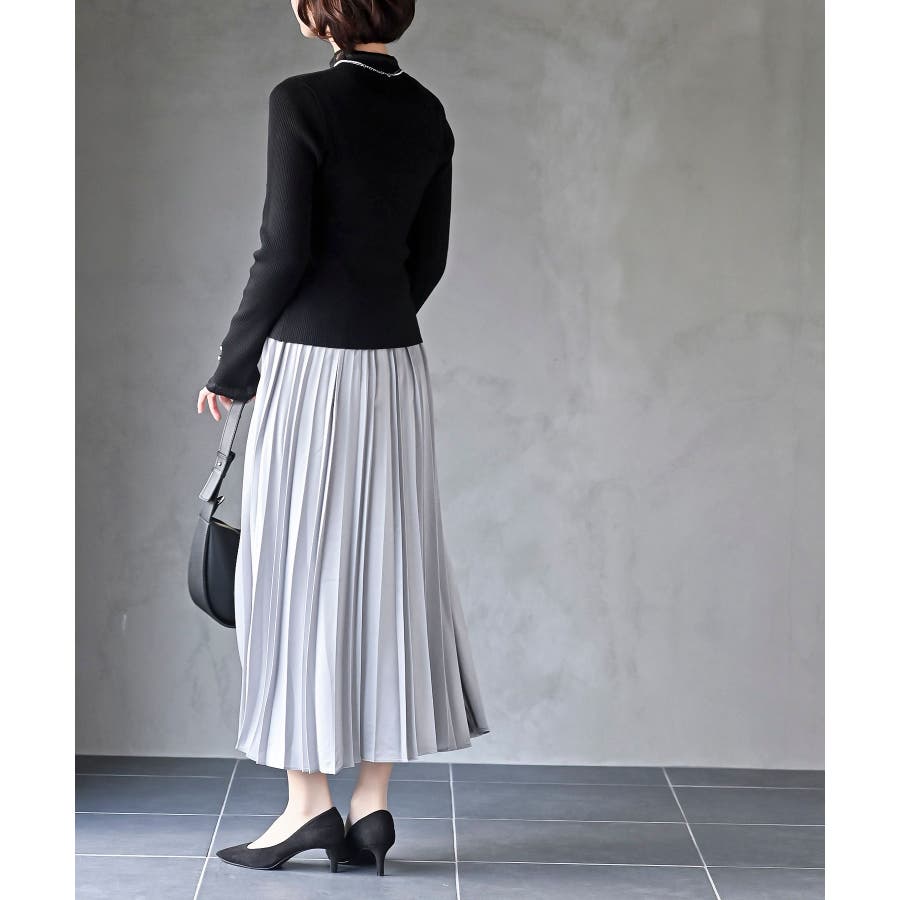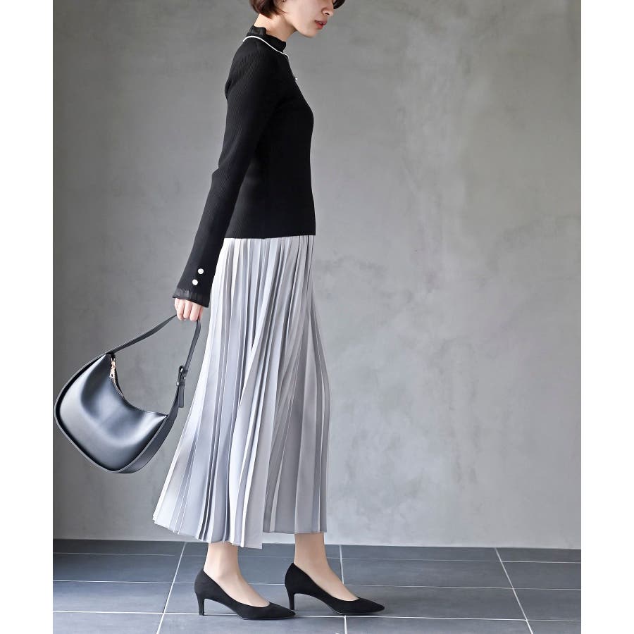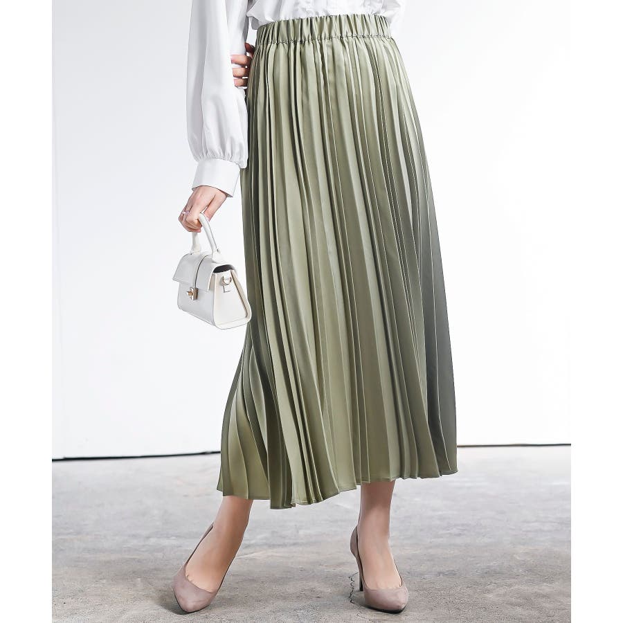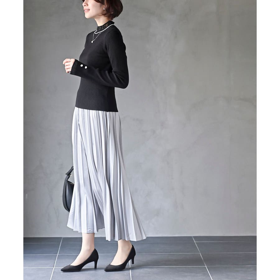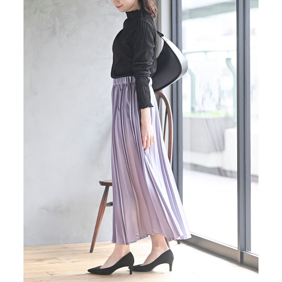 ランダムプリーツなのでシワが目立たず、サテンのような質感がとても高見えします!ブラックコーデにチャコールグレー最高です