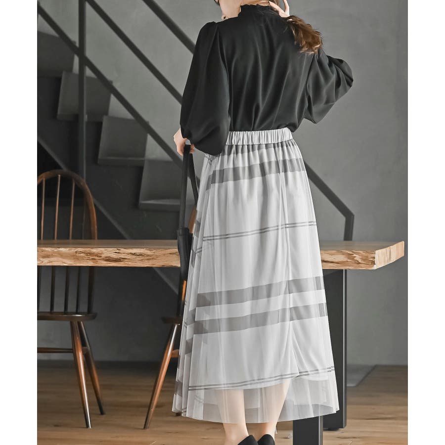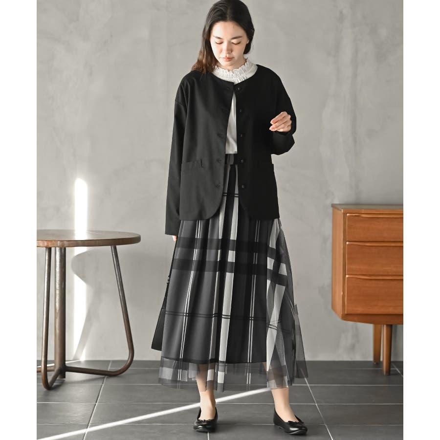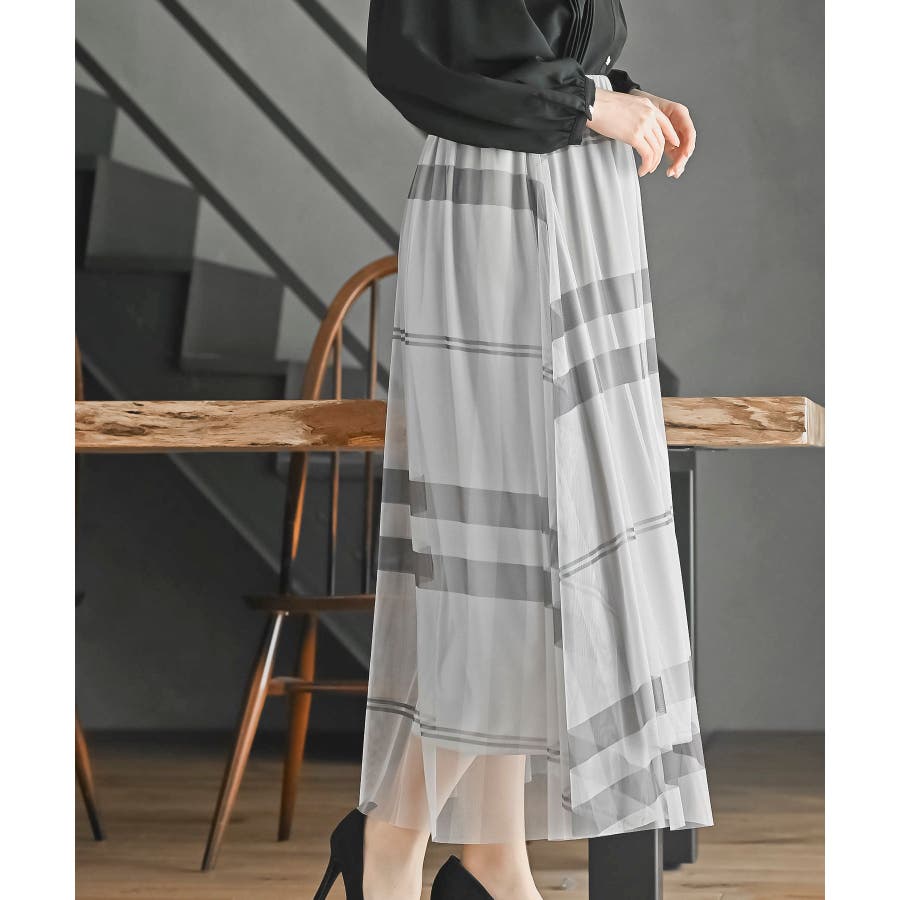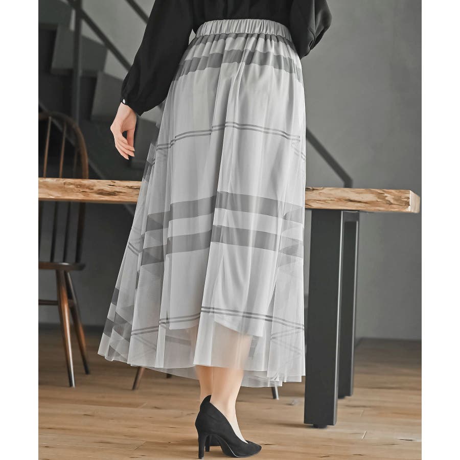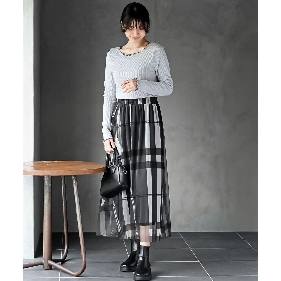 チュールチェックプリントギャザースカート