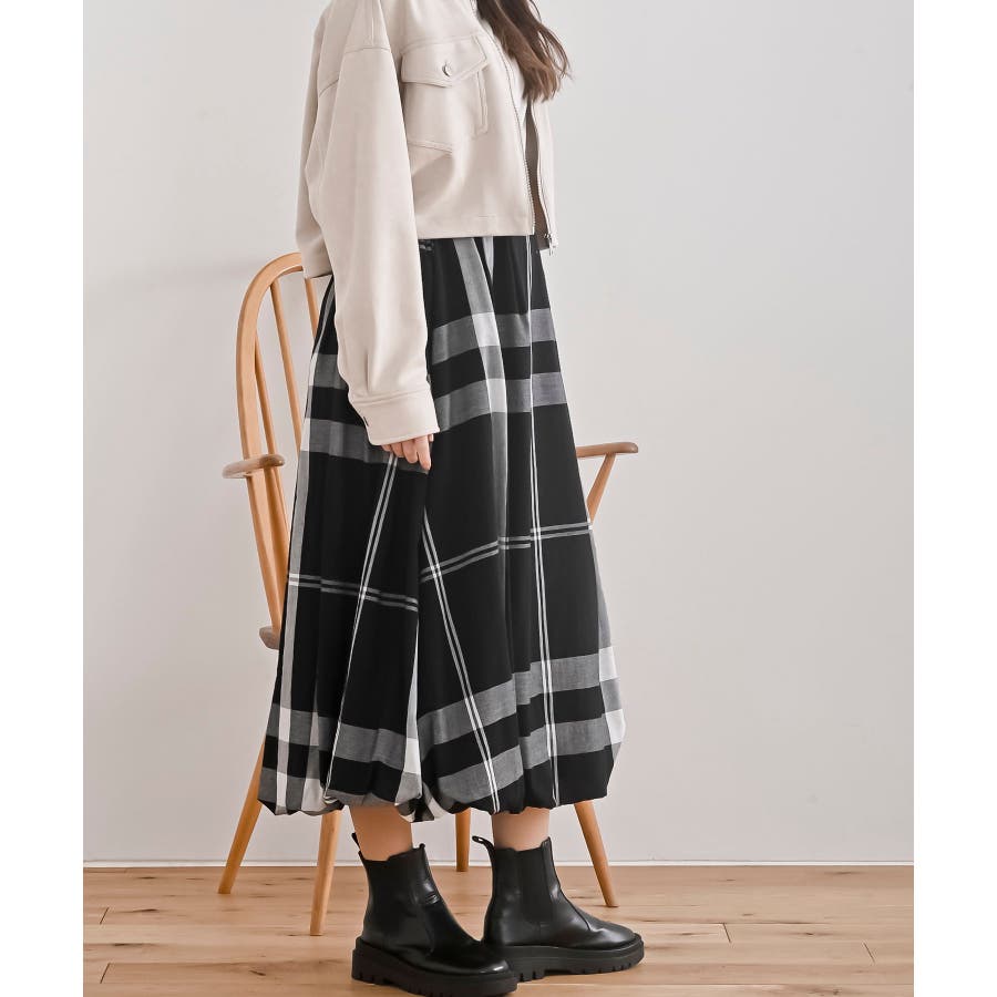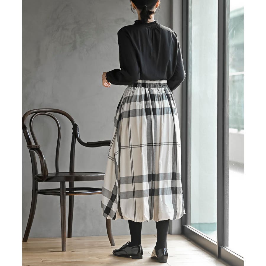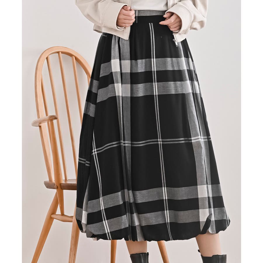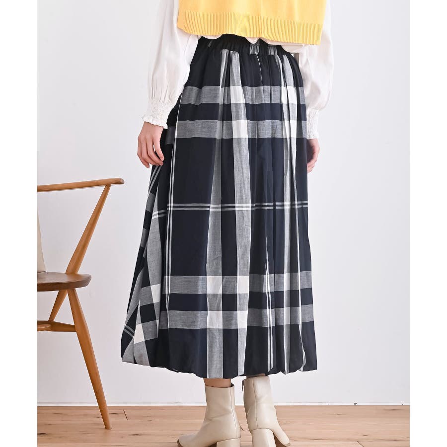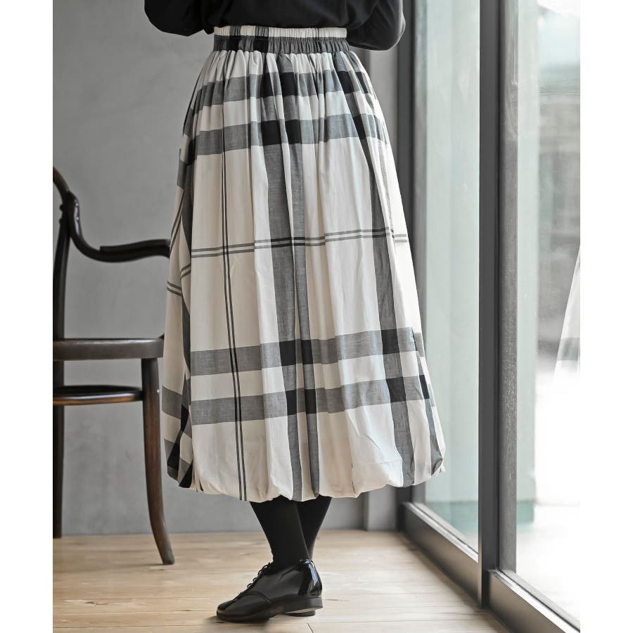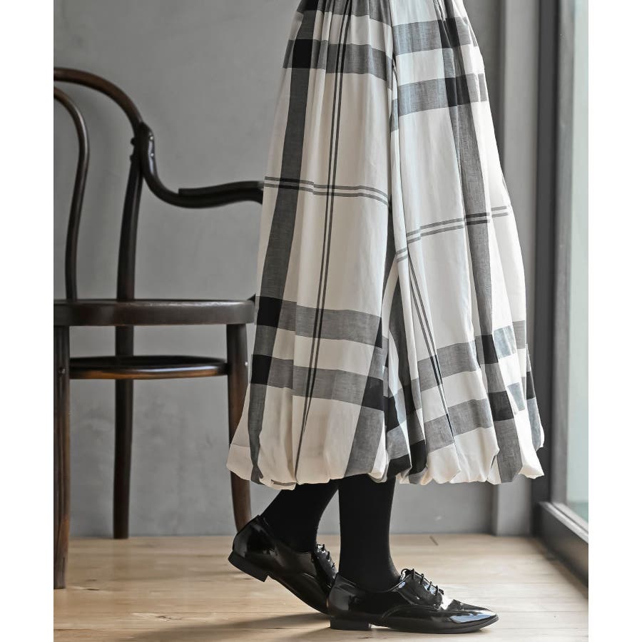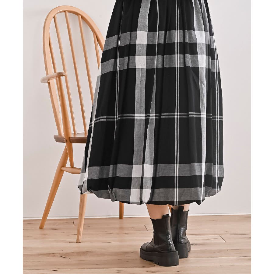 チェック柄ガーゼバルーンスカート