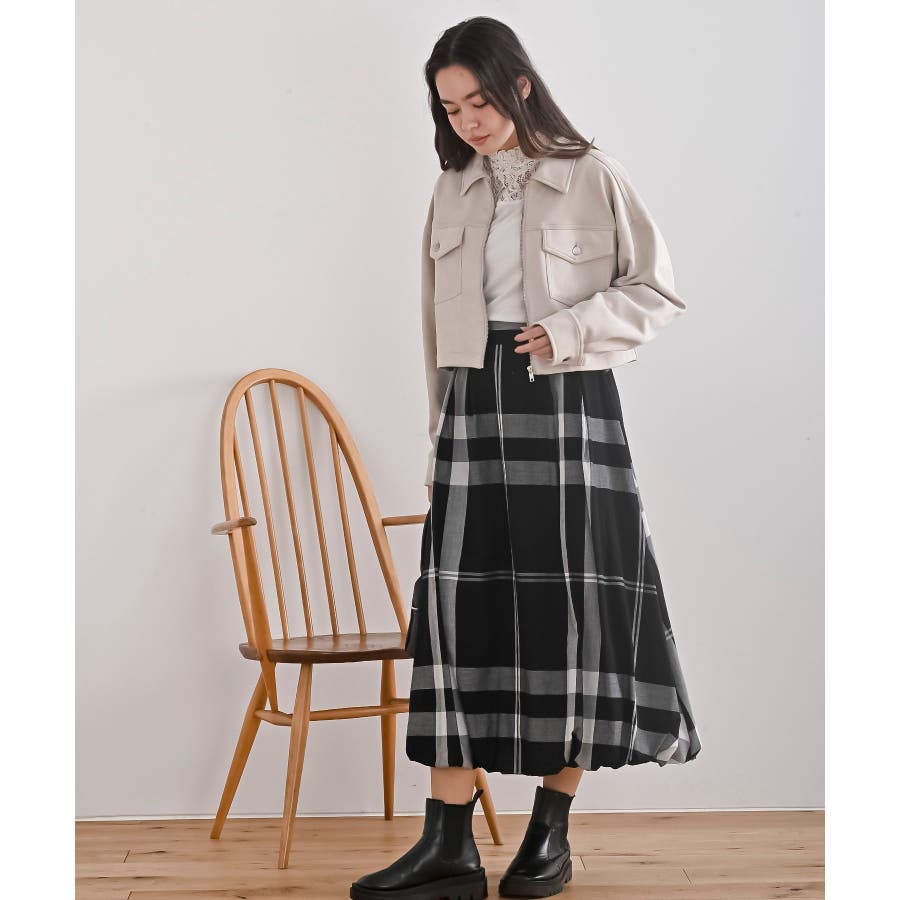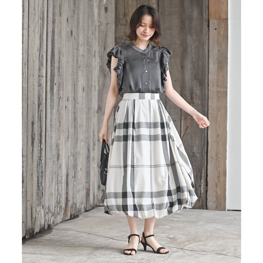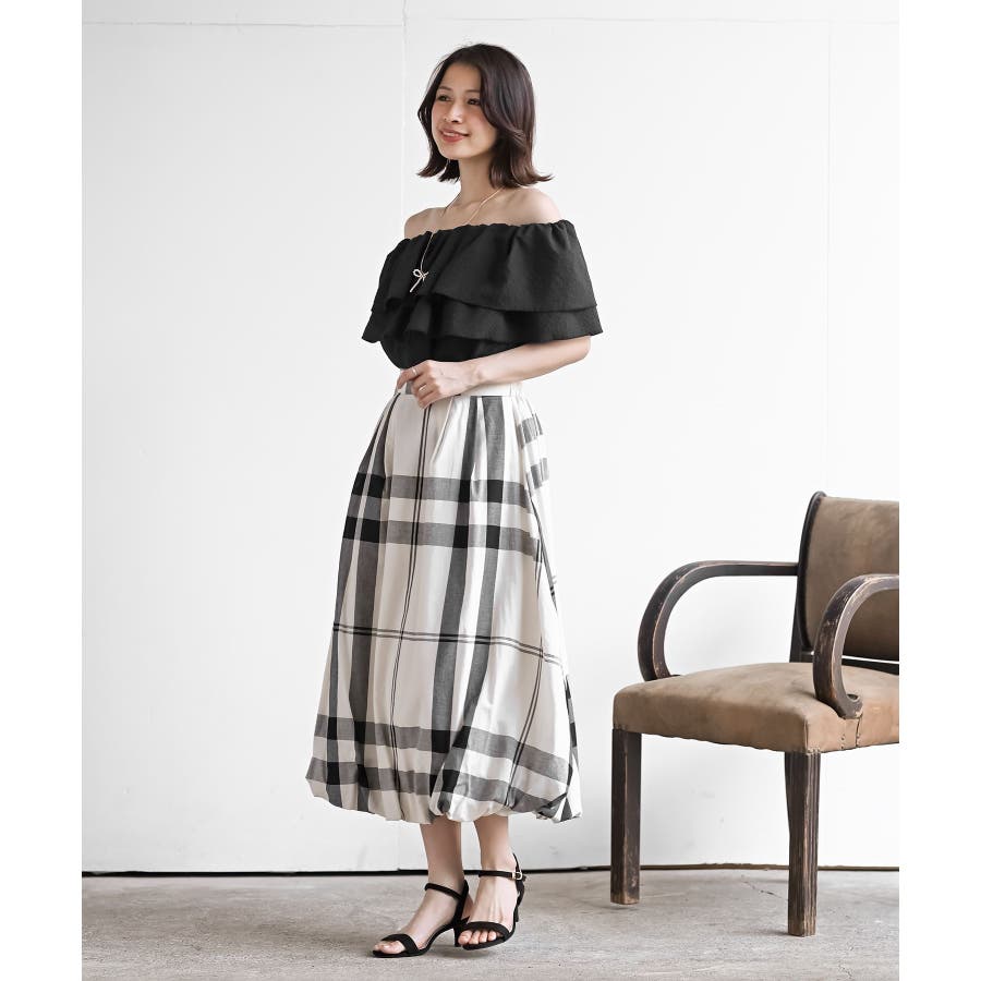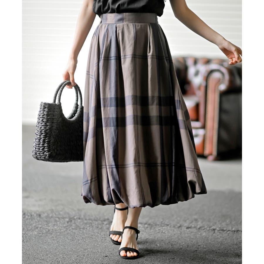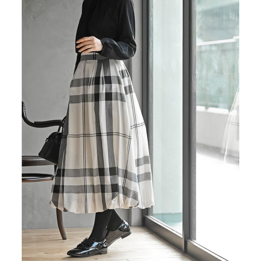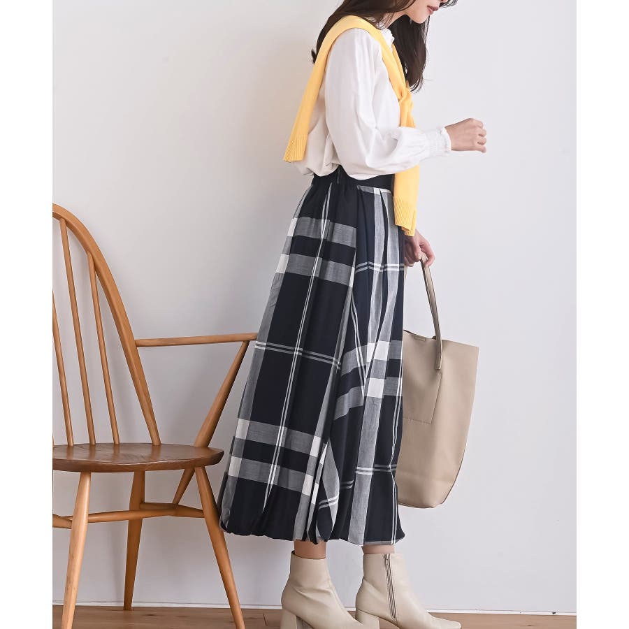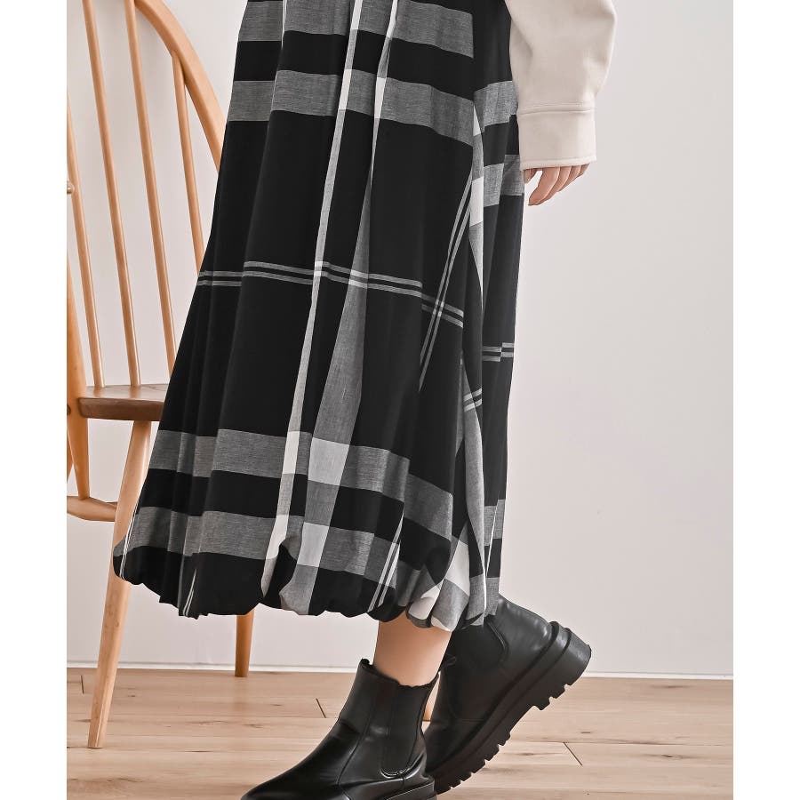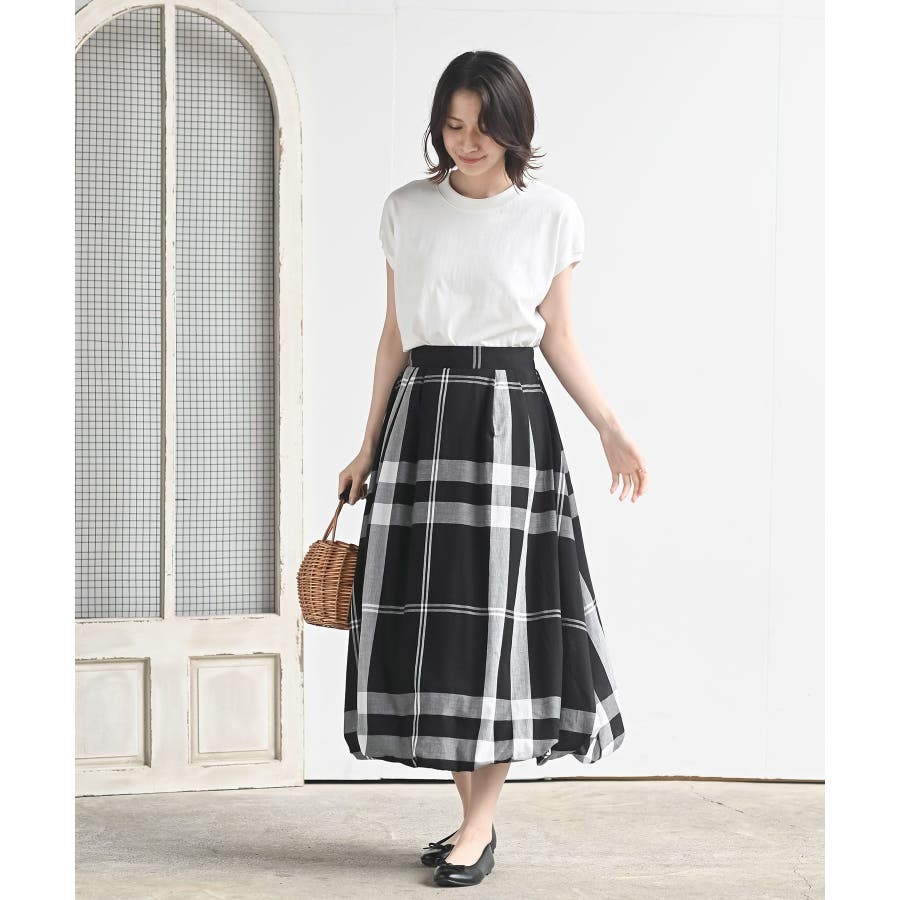 チェック柄ガーゼバルーンスカート