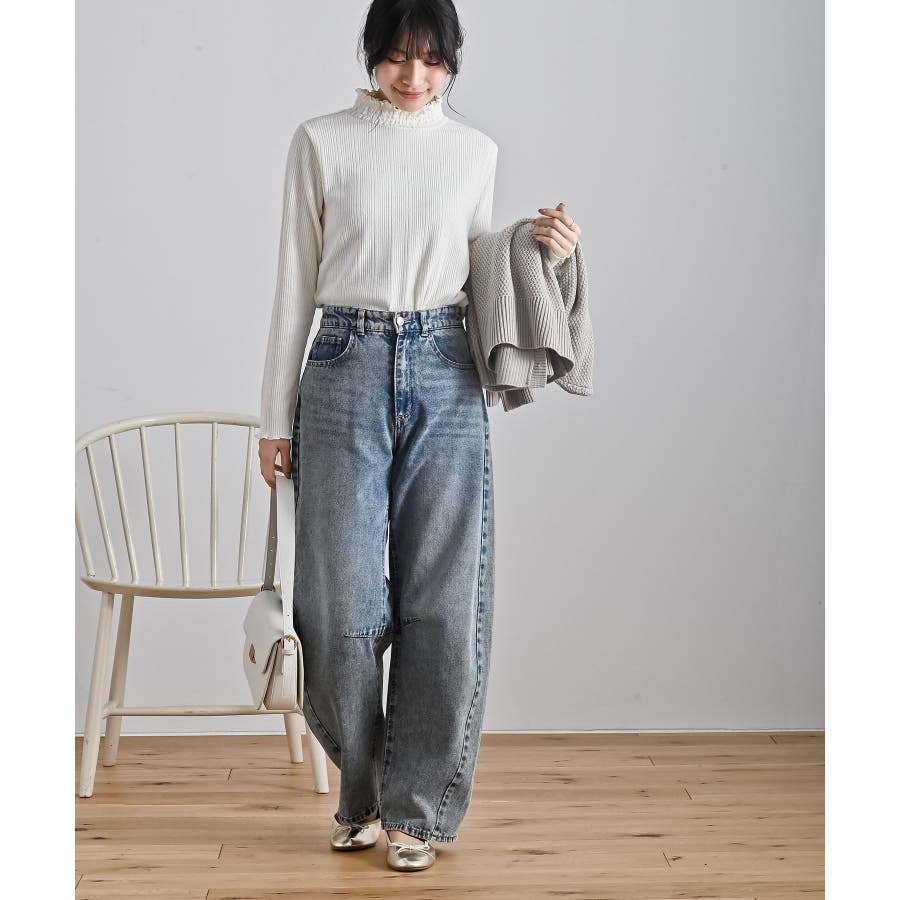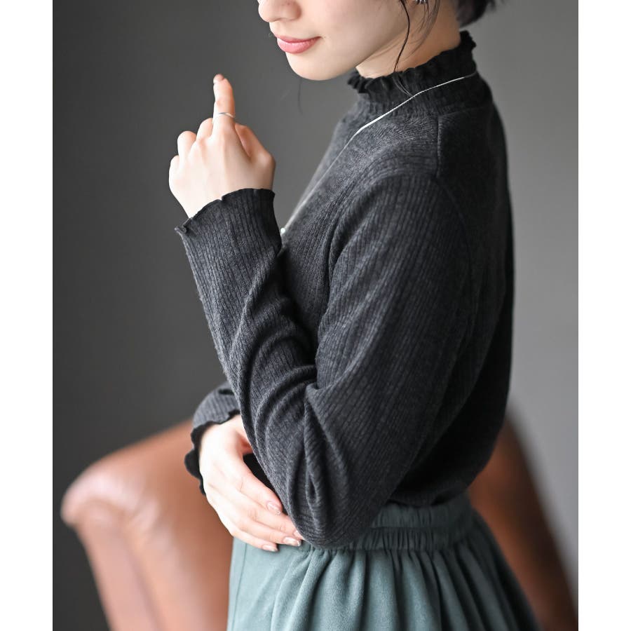 リブニットソー衿シャ-リングカットソー
