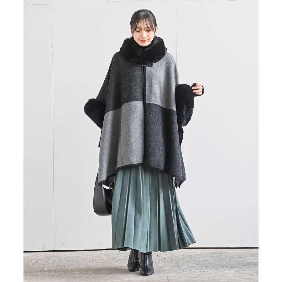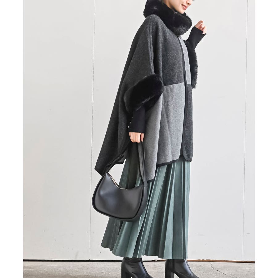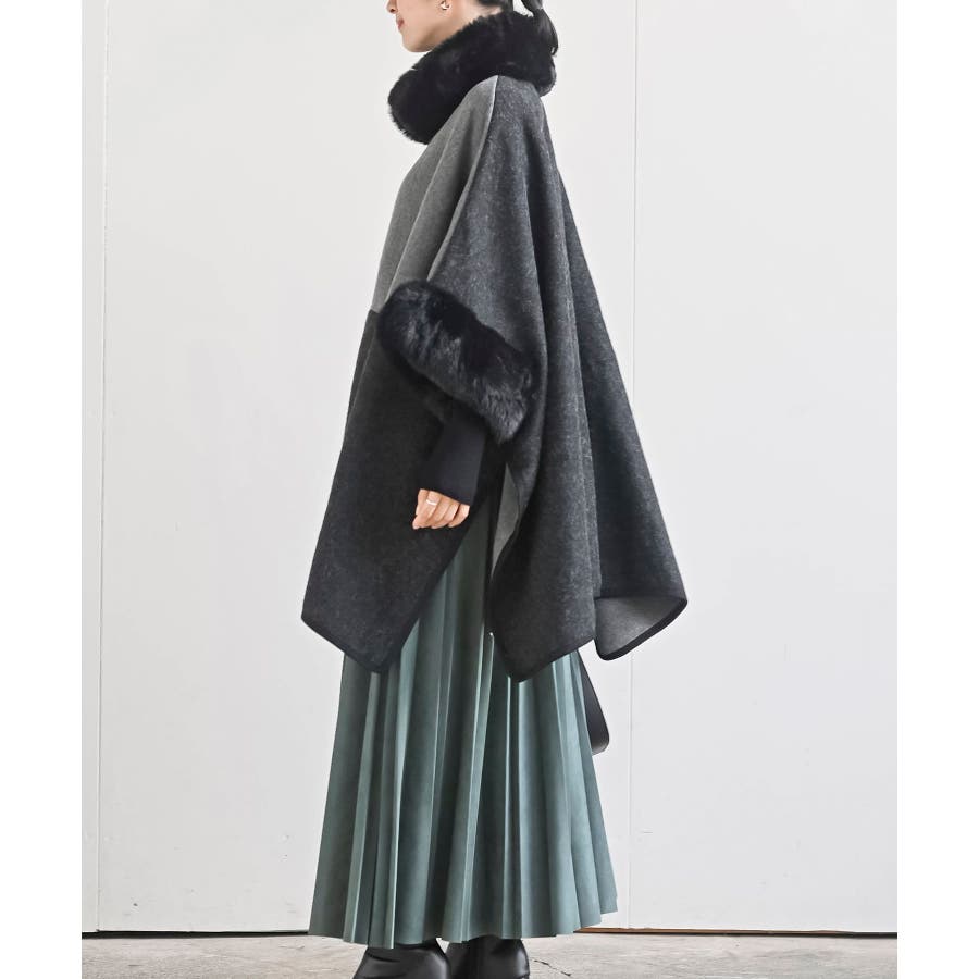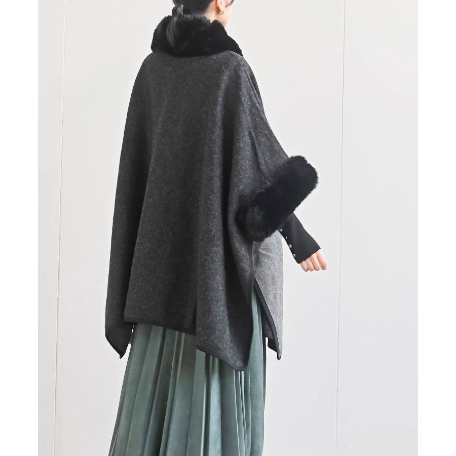 フェイクファーポンチョコート