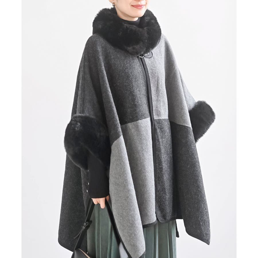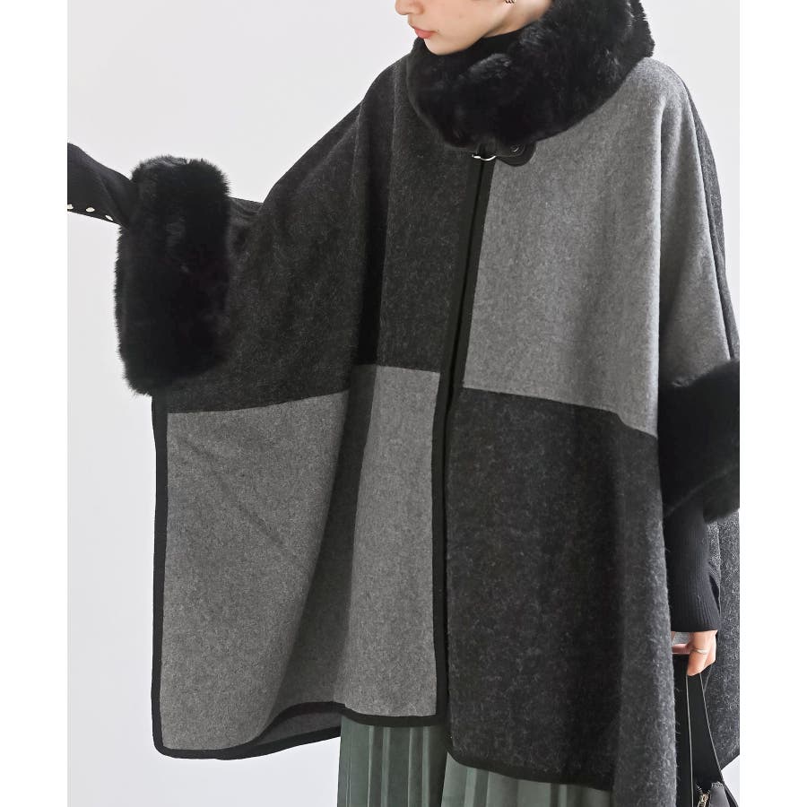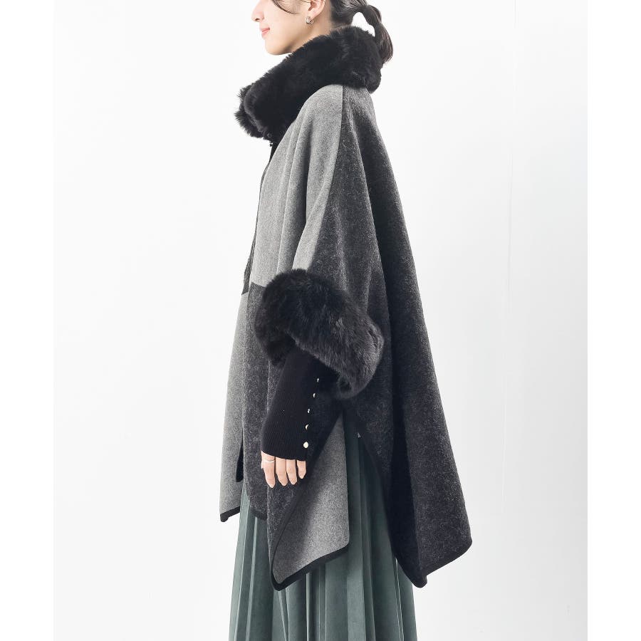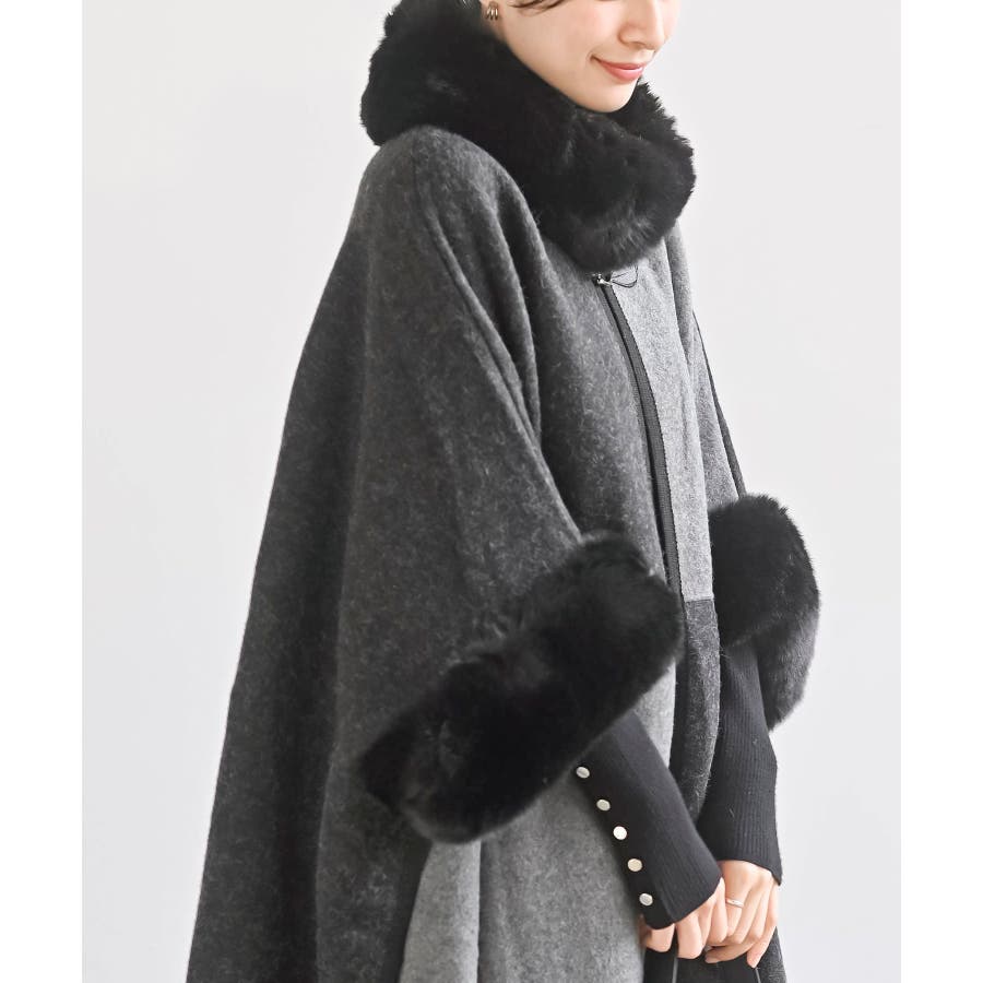 フェイクファーポンチョコート