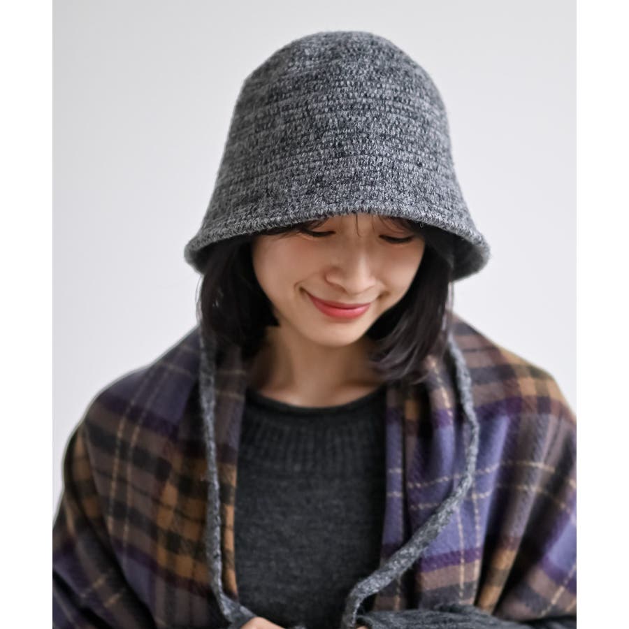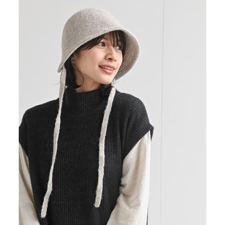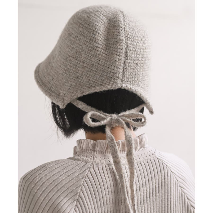 BACKリボン柄編みバケットハット
