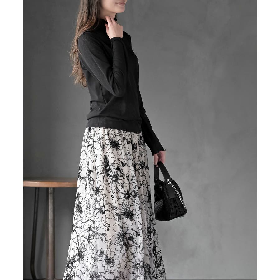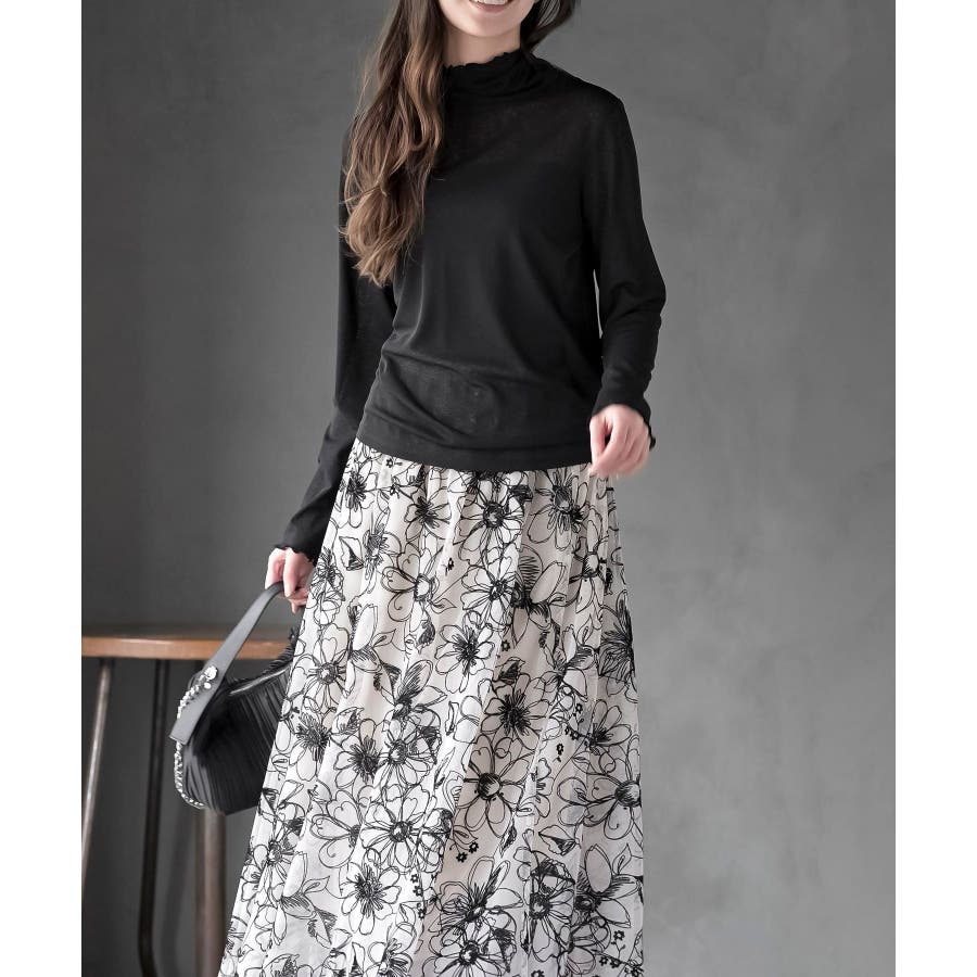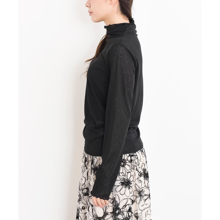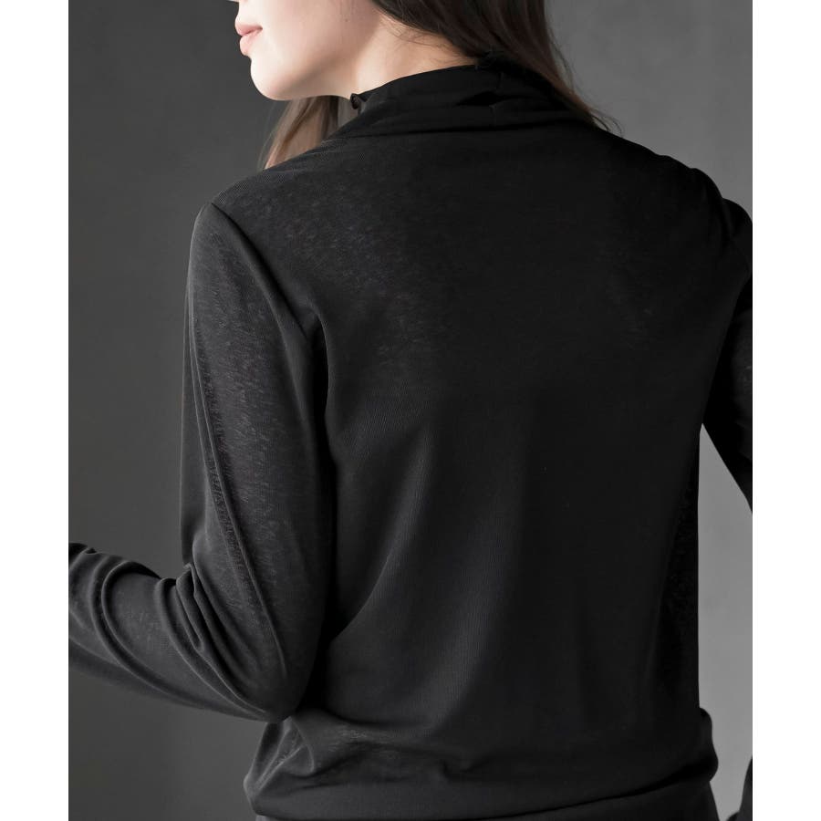 【ブラック】シアー天竺ハイネックカットソー