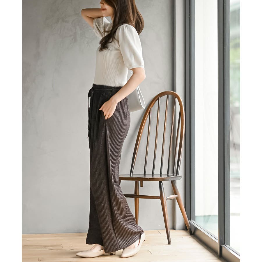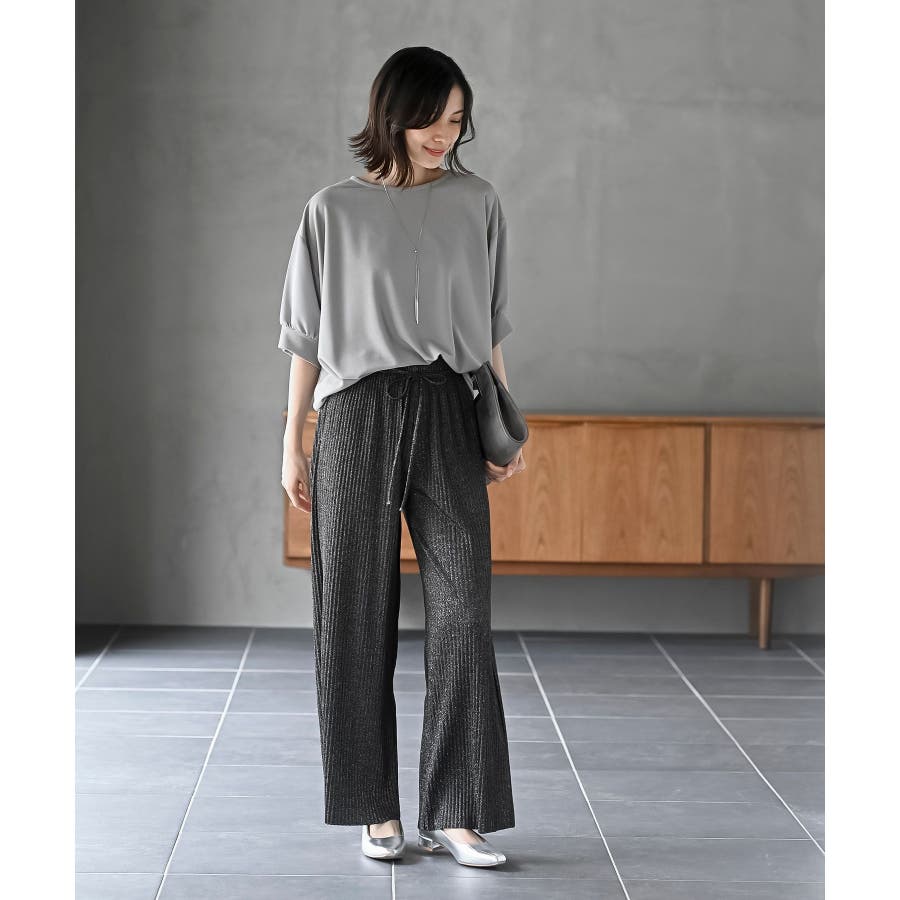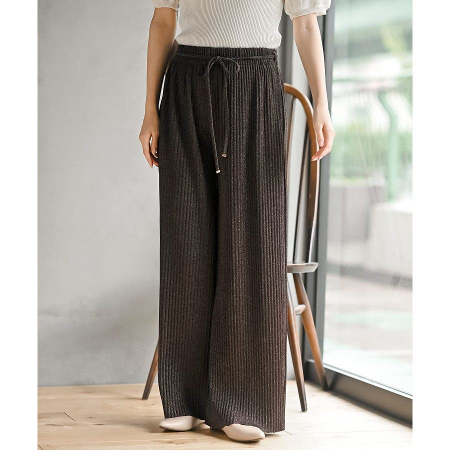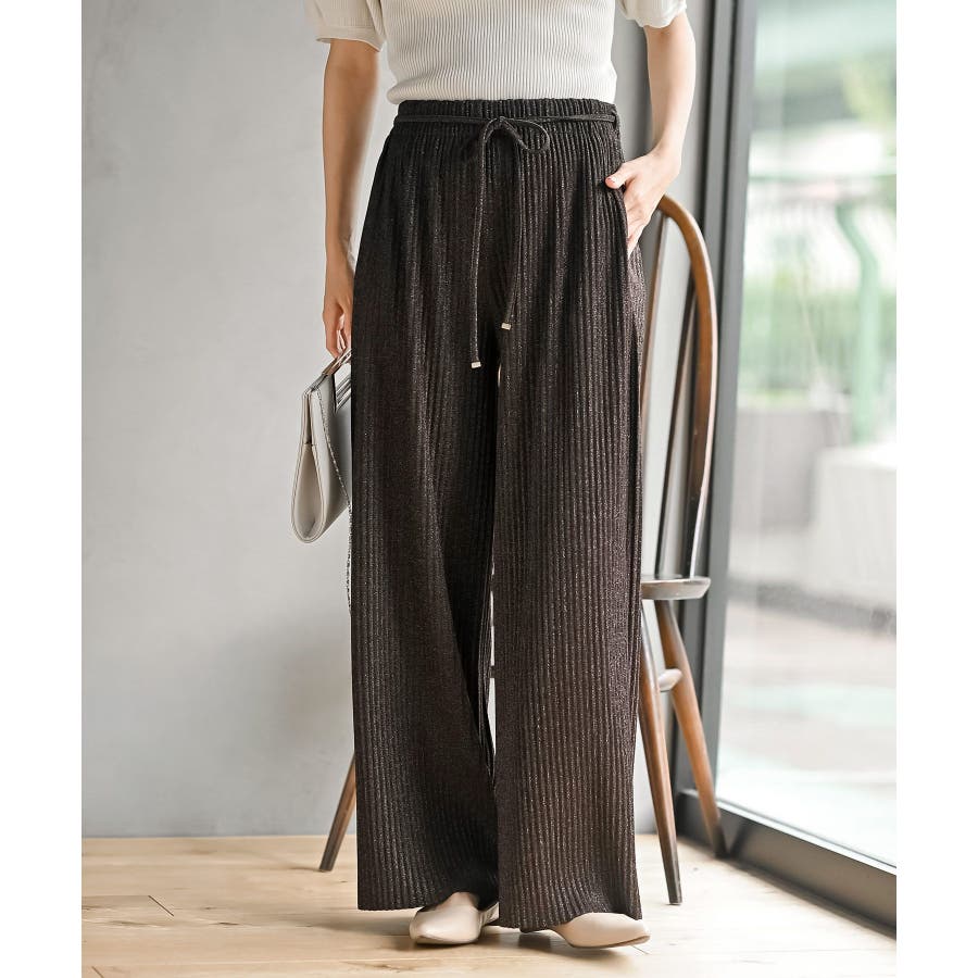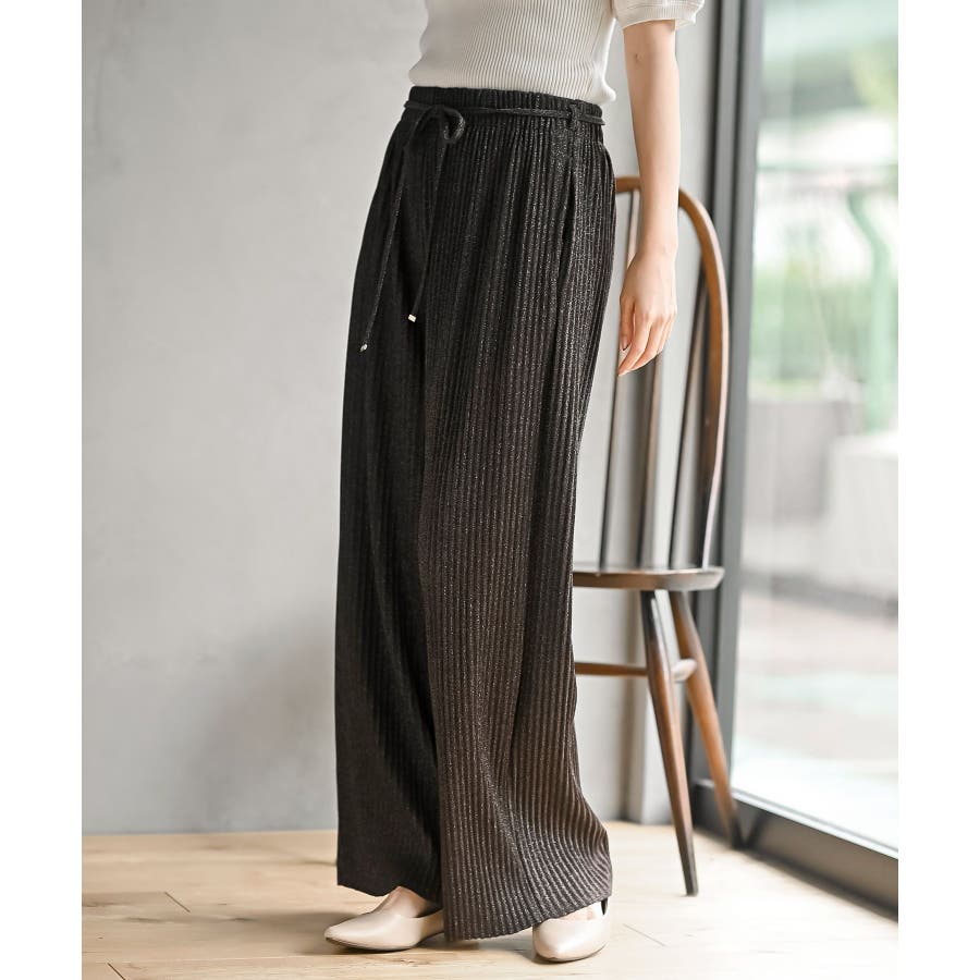 ラメカットジョーゼットプリーツパンツ