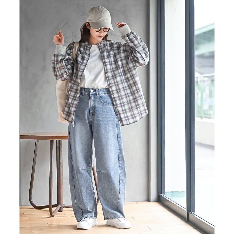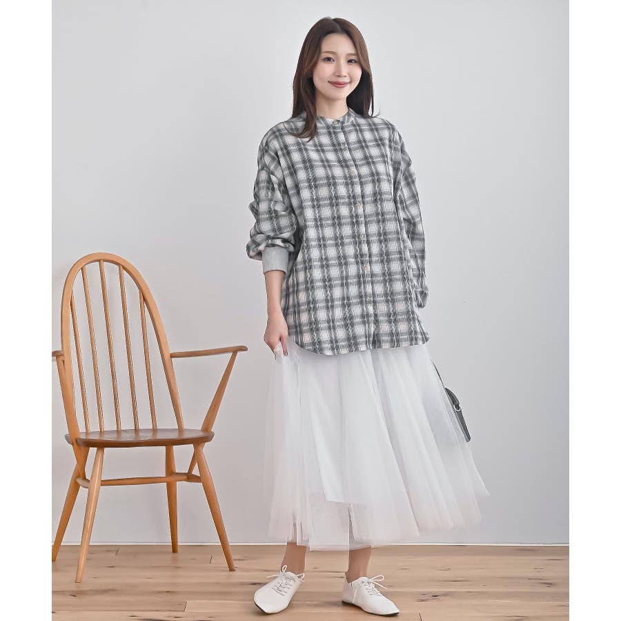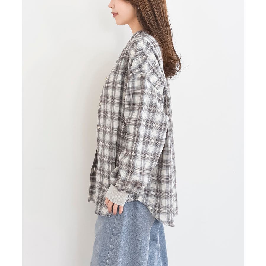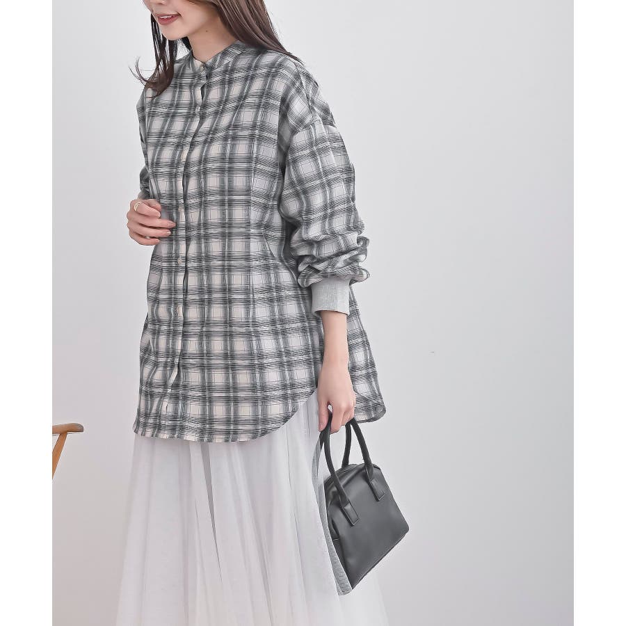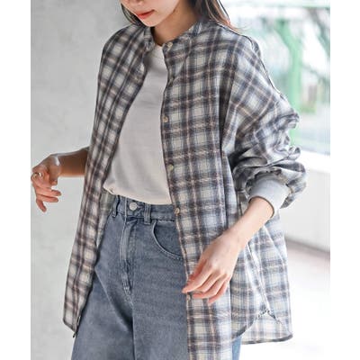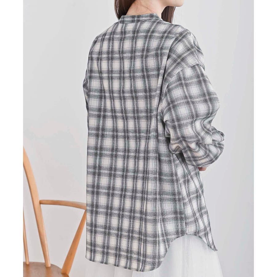 リブ使いバンドカラーチェックシャツ
