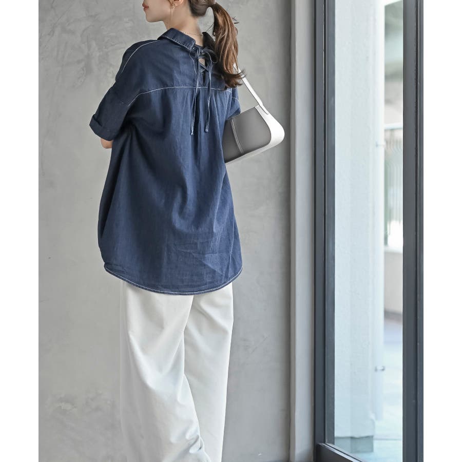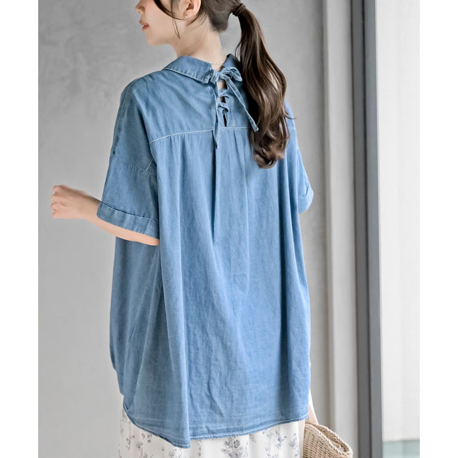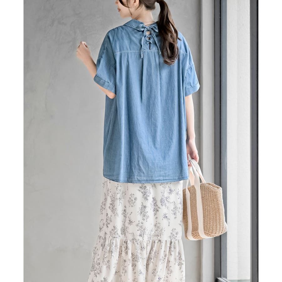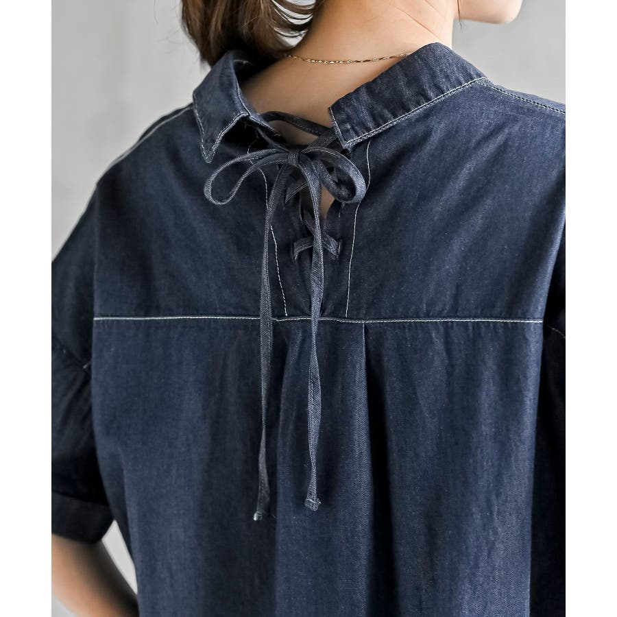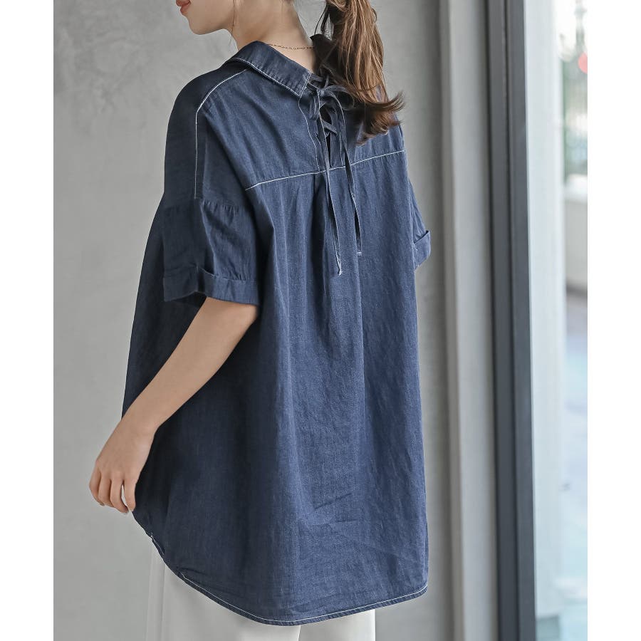 BACKレースアップ 裾タックブラウス