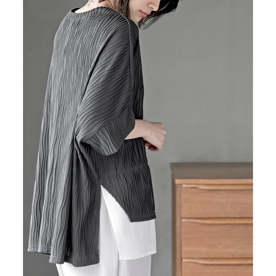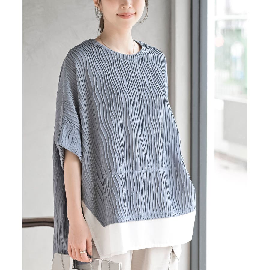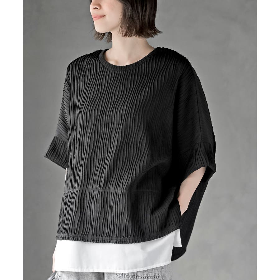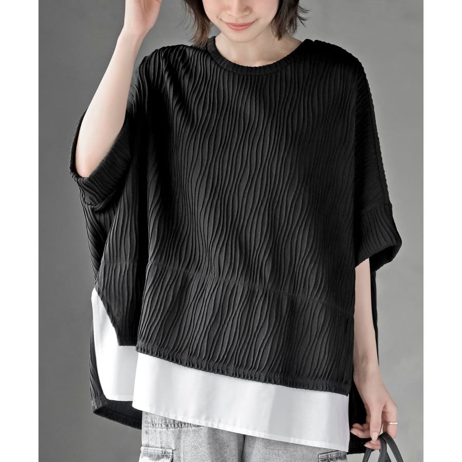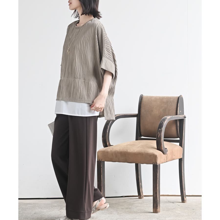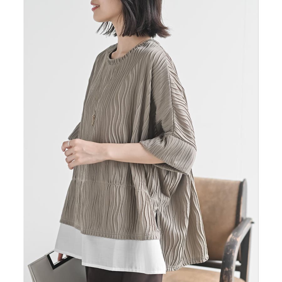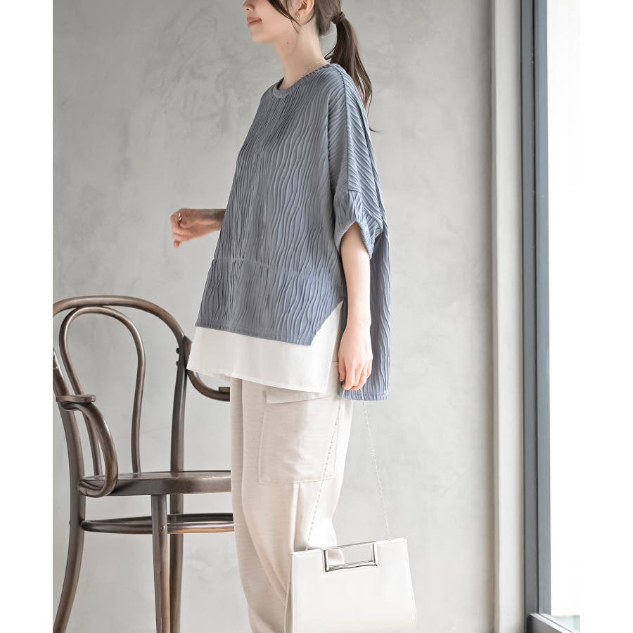 ウェーブジャガードレイヤード風ドルマンチュニック