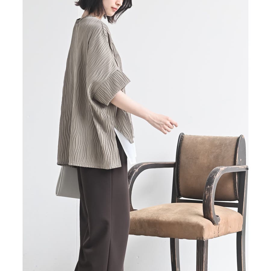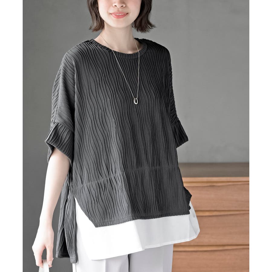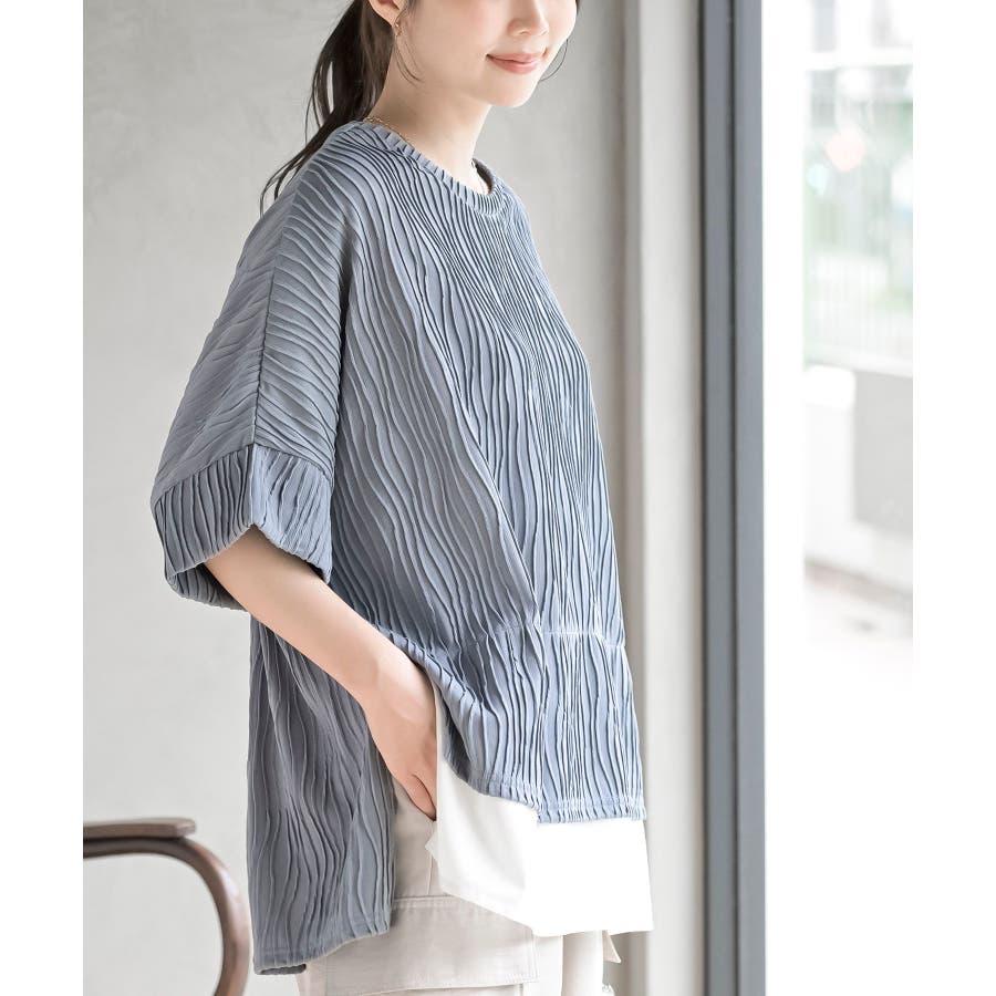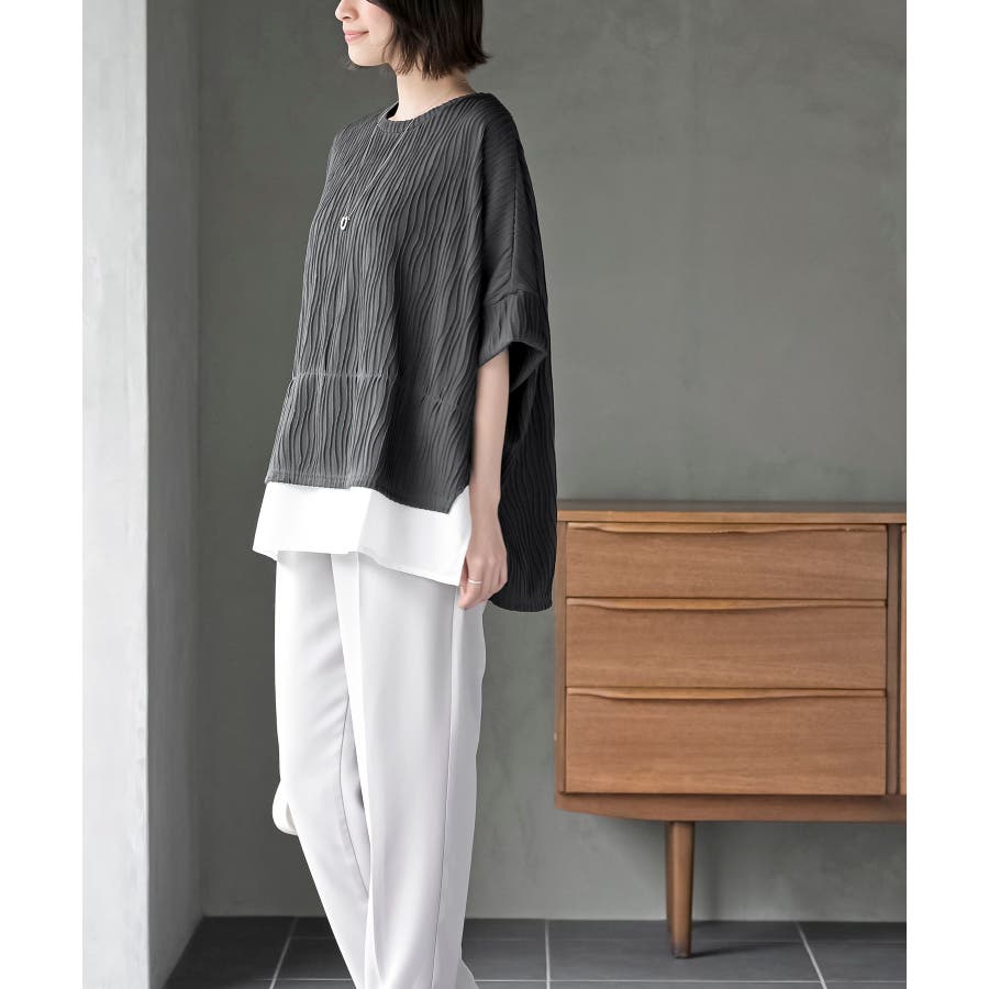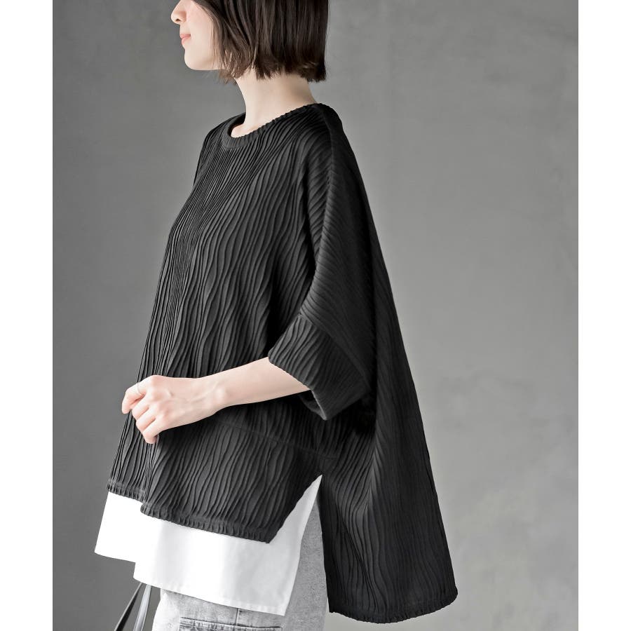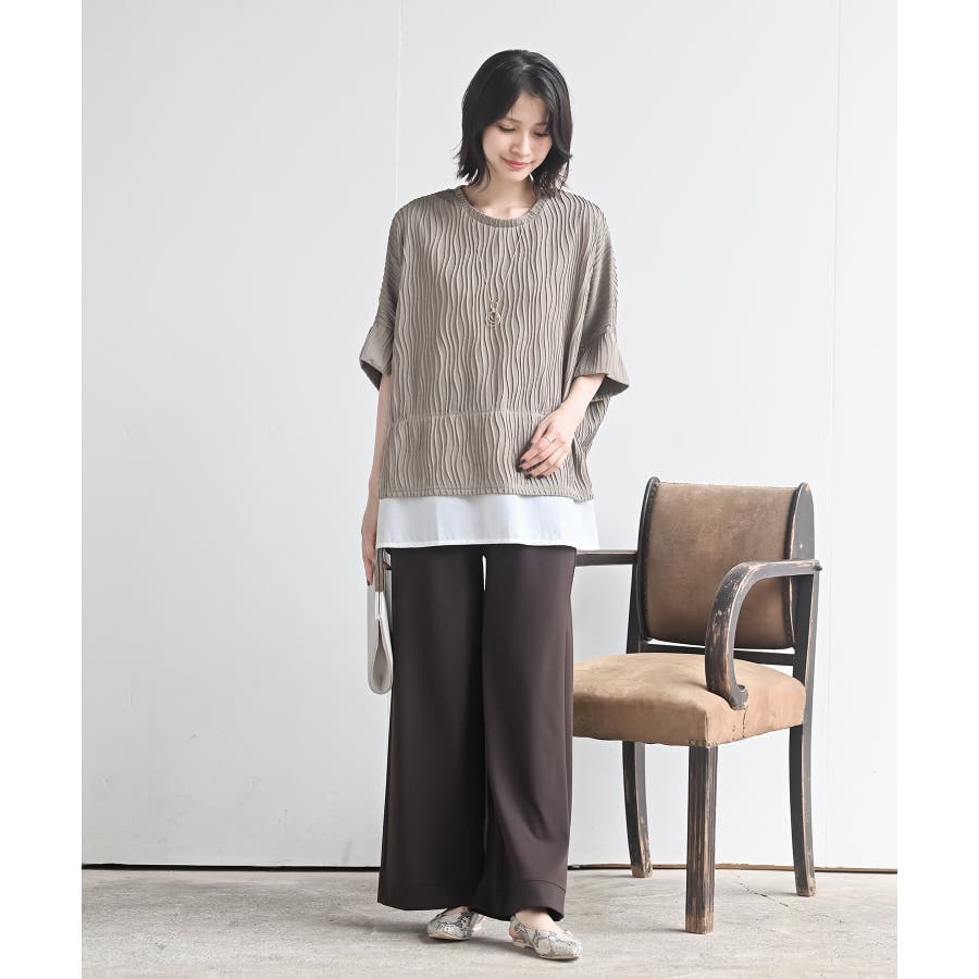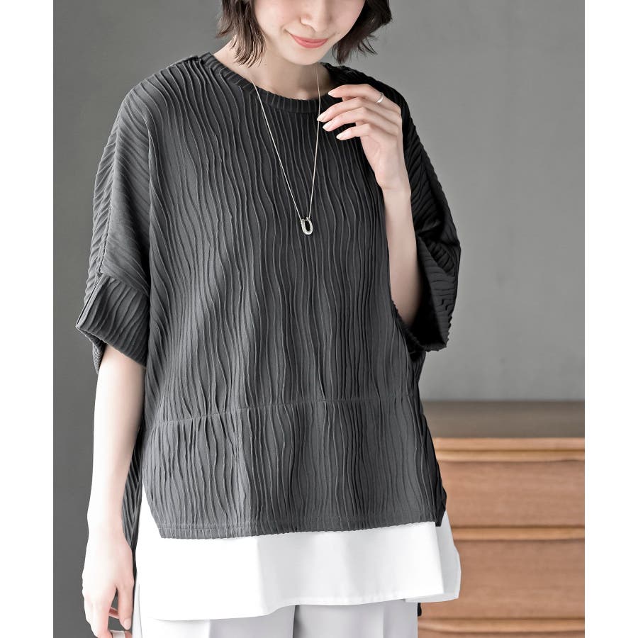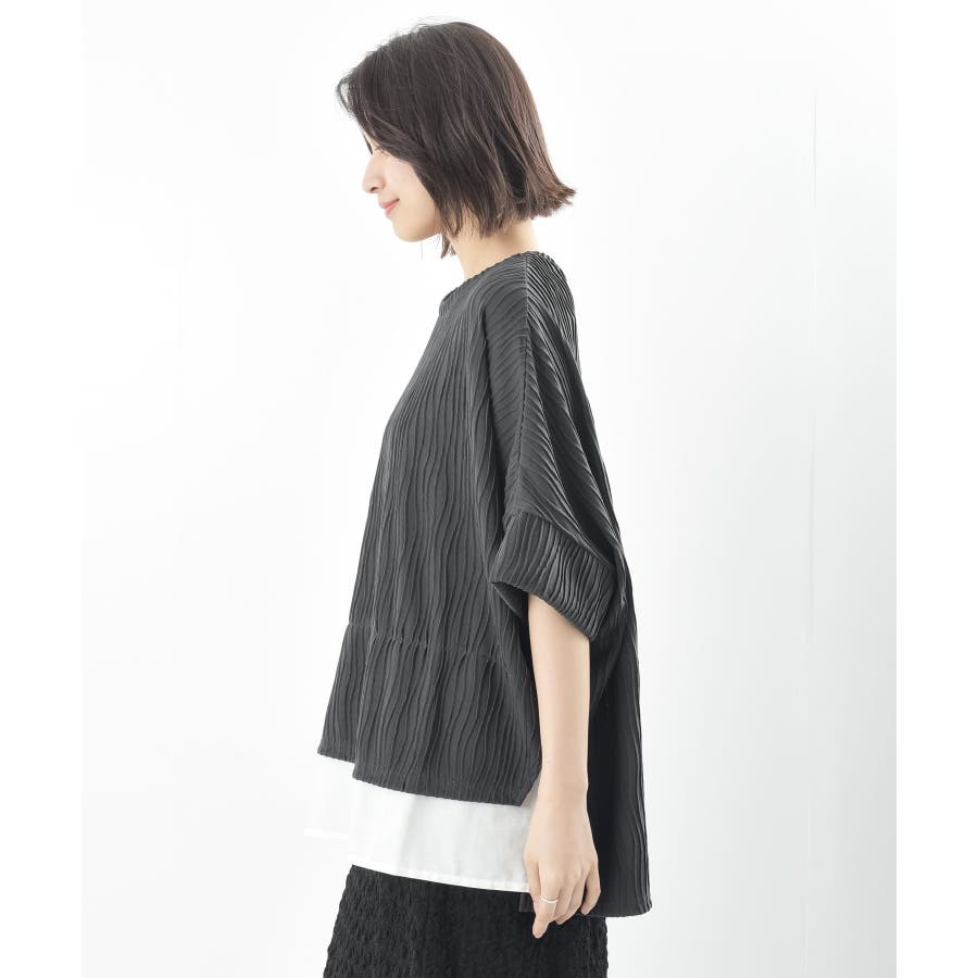 ウェーブジャガードレイヤード風ドルマンチュニック