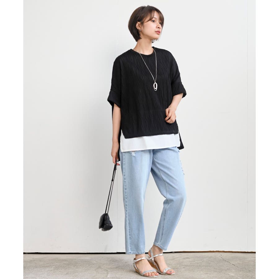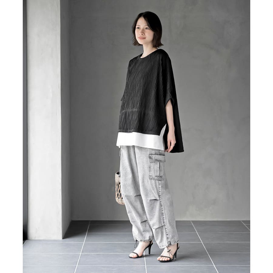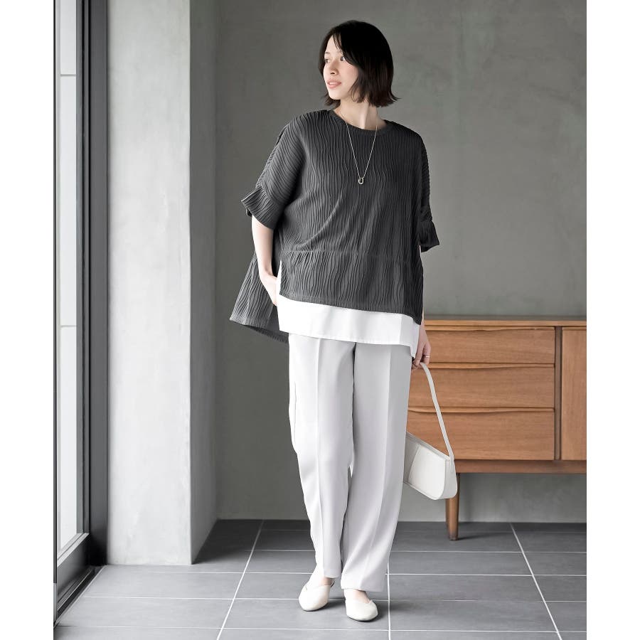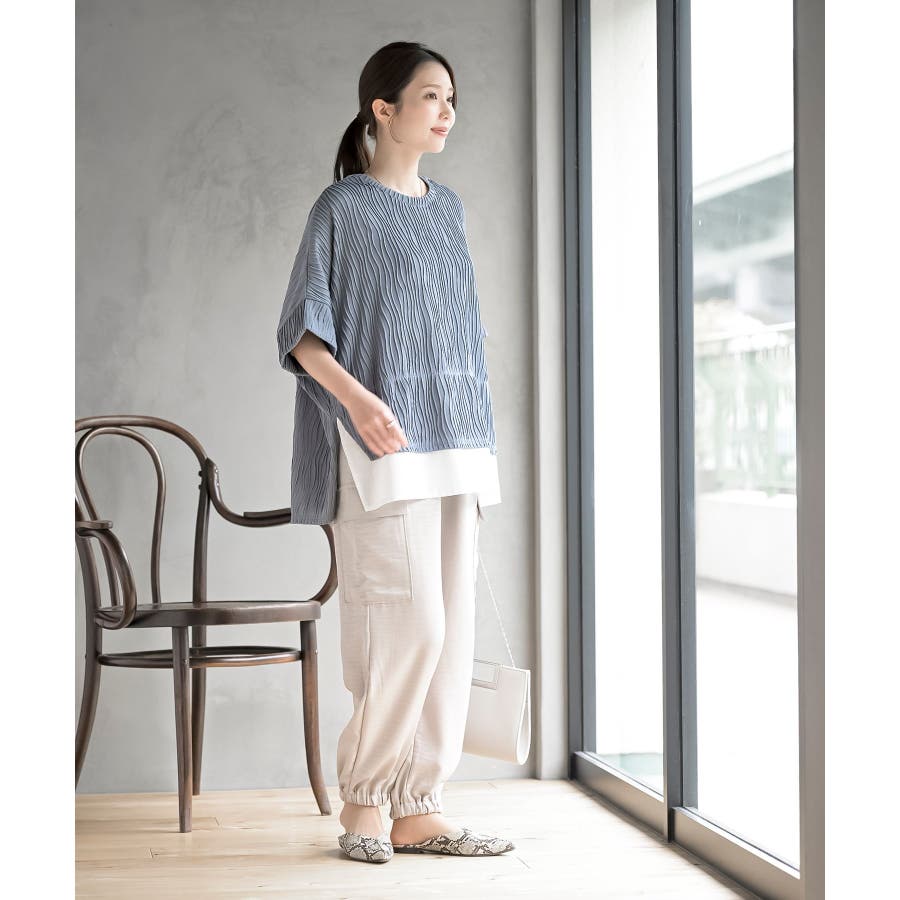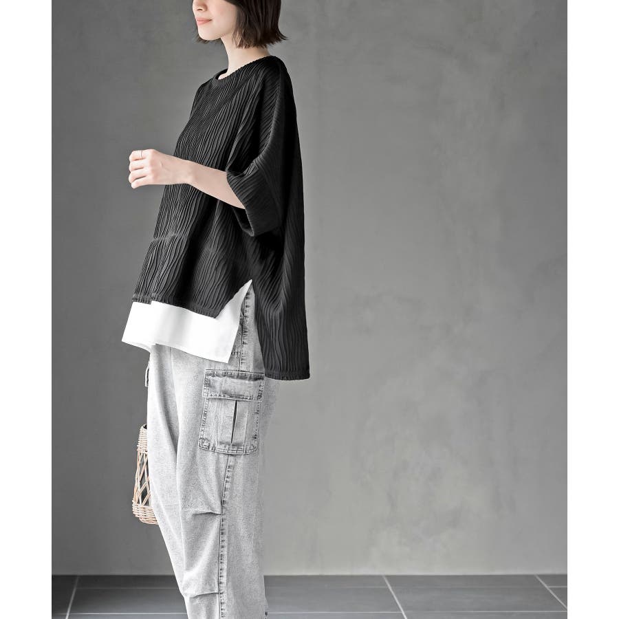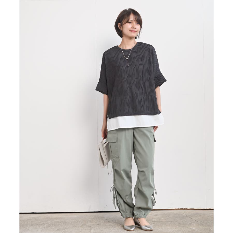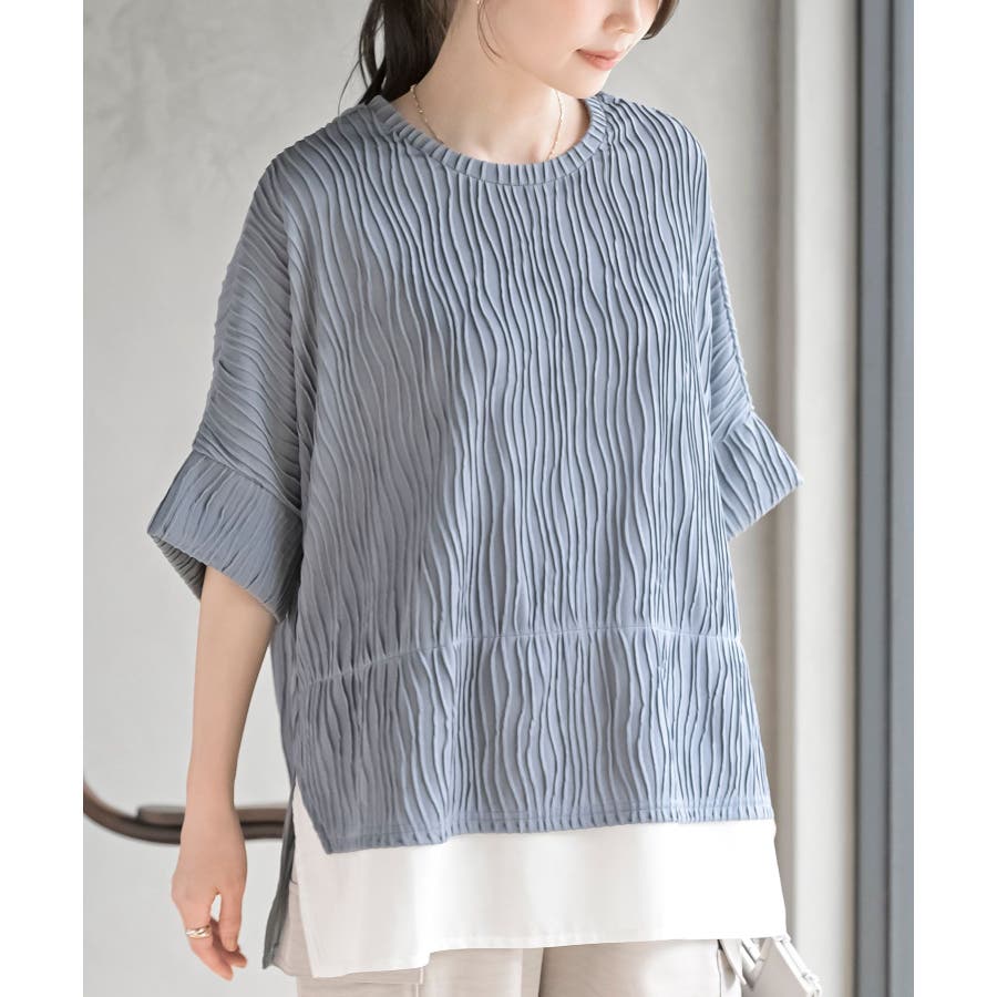 ウェーブジャガードレイヤード風ドルマンチュニック