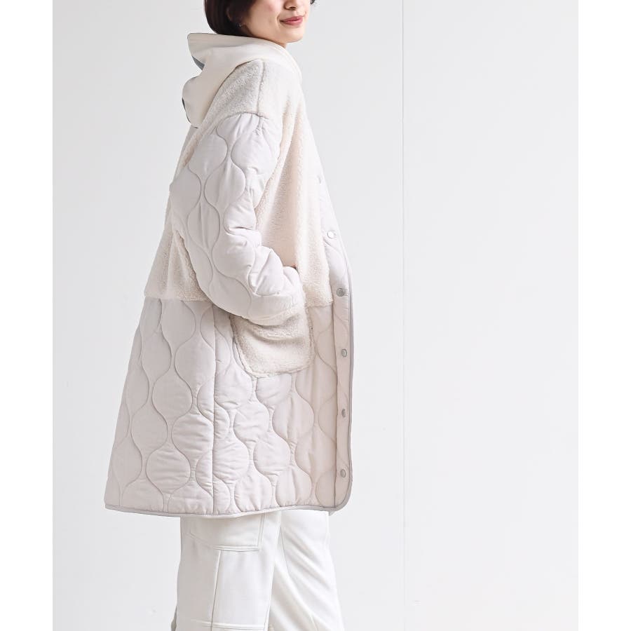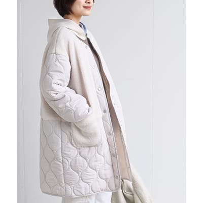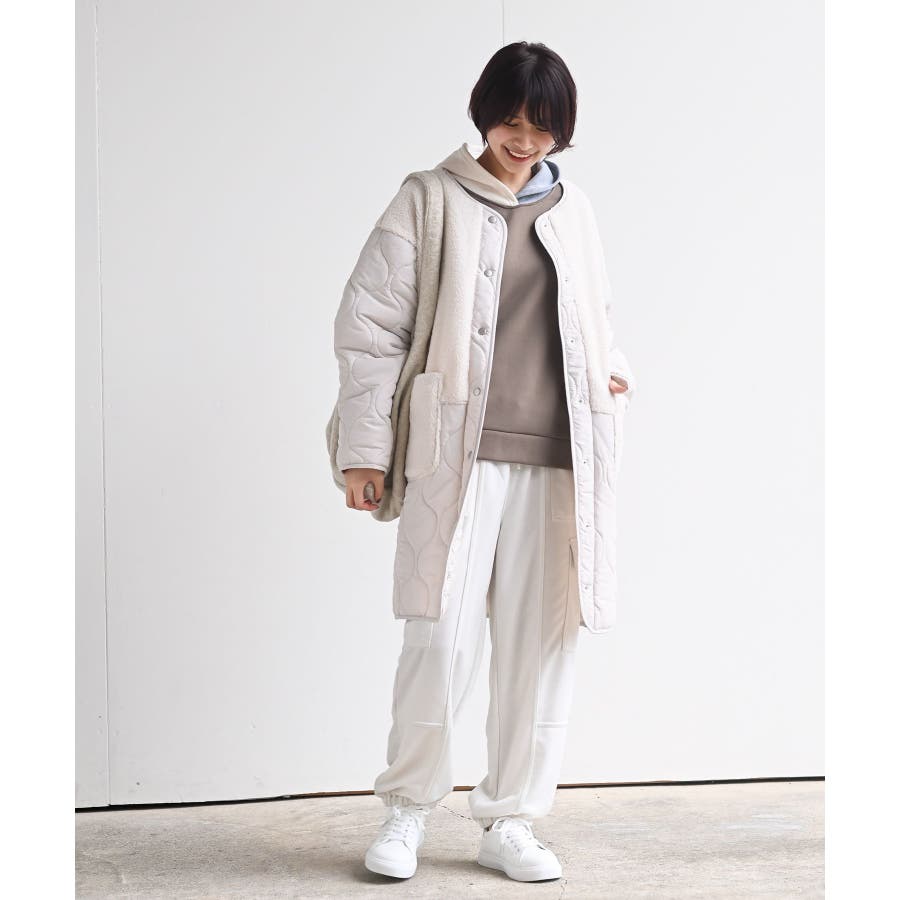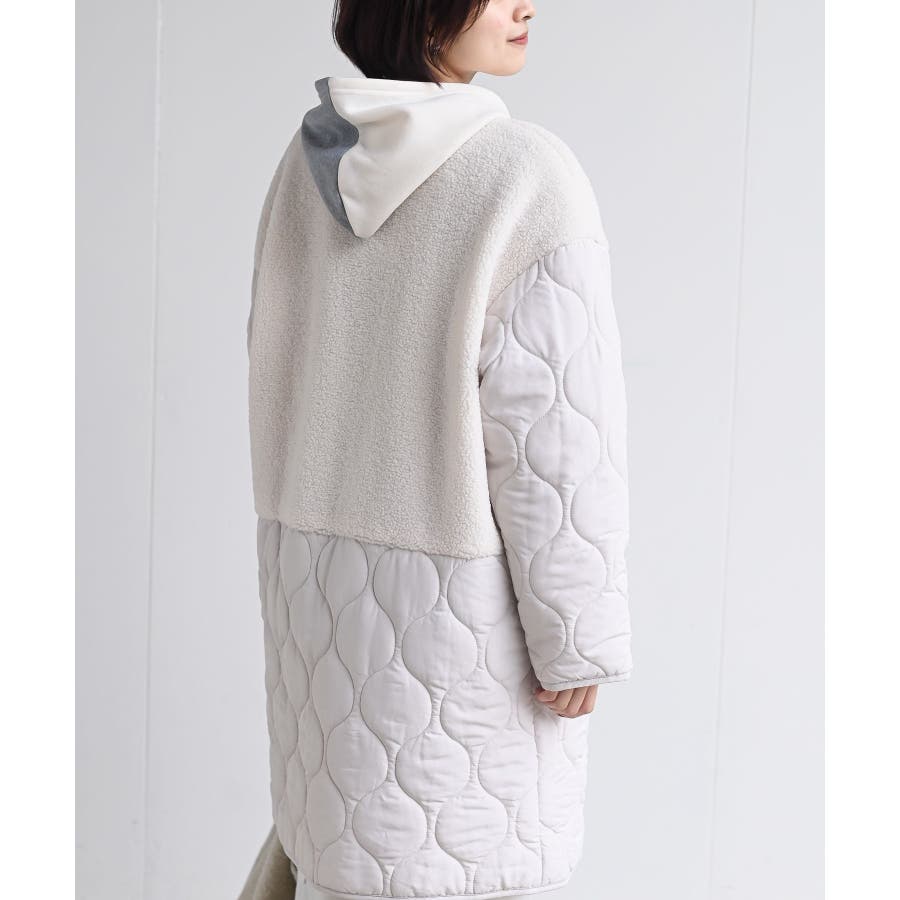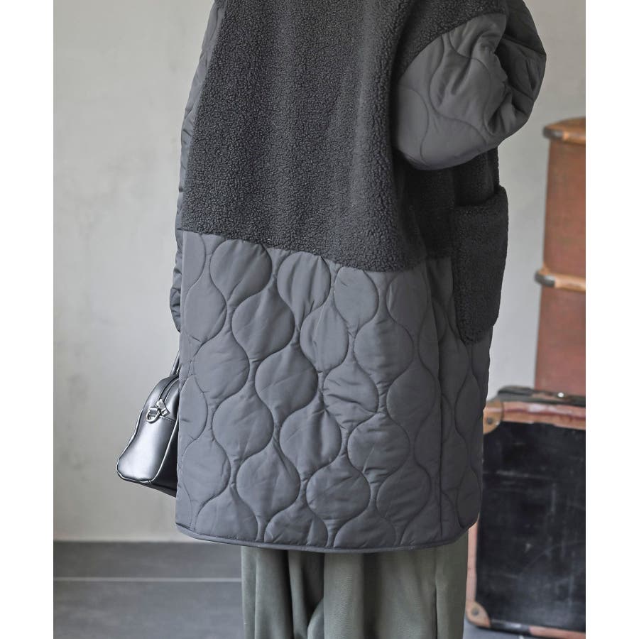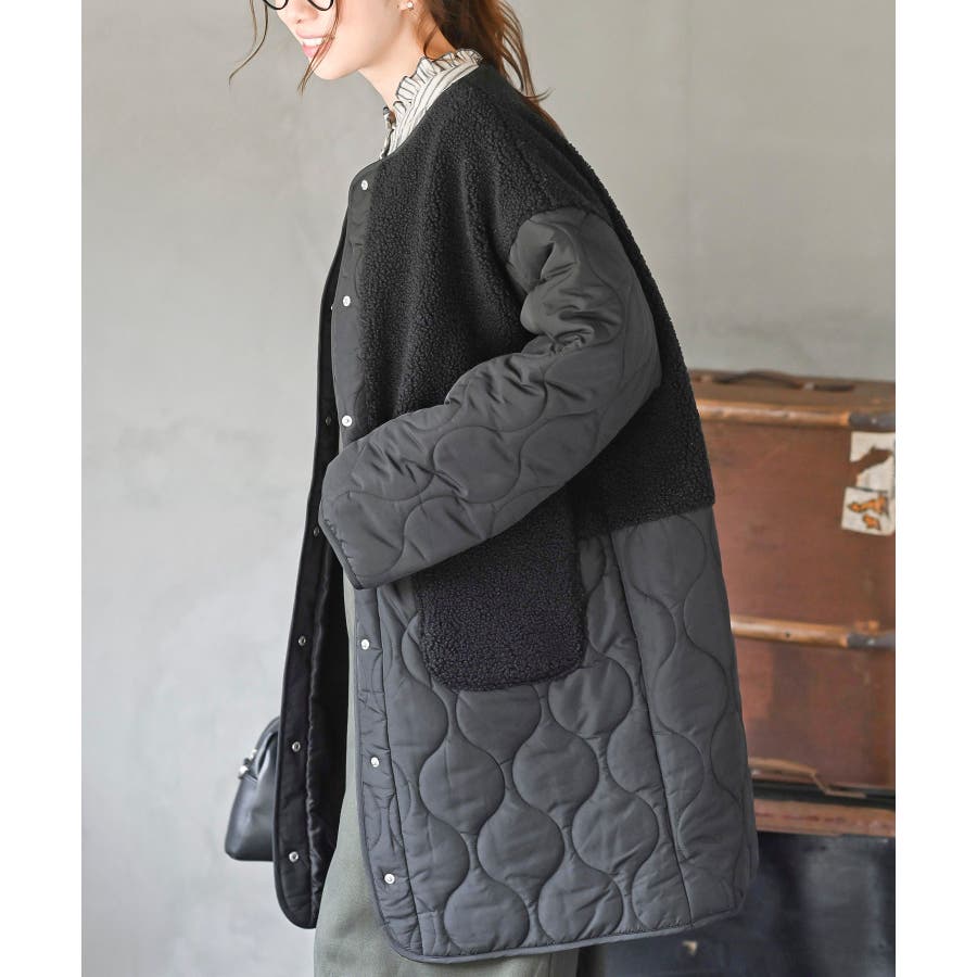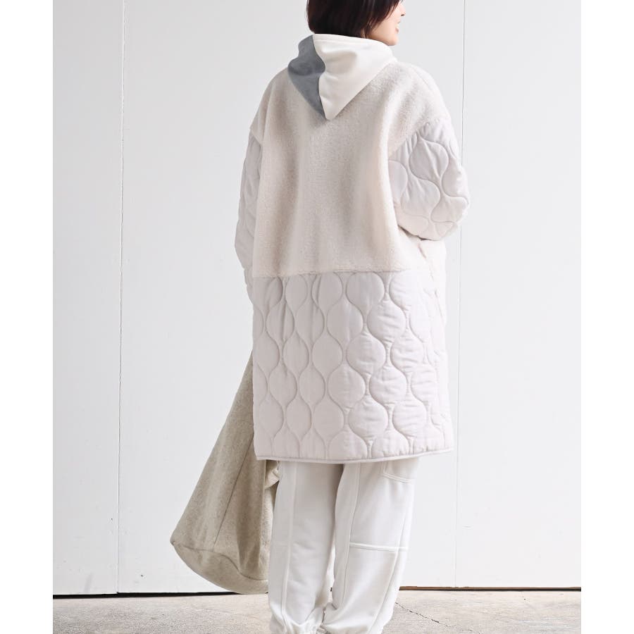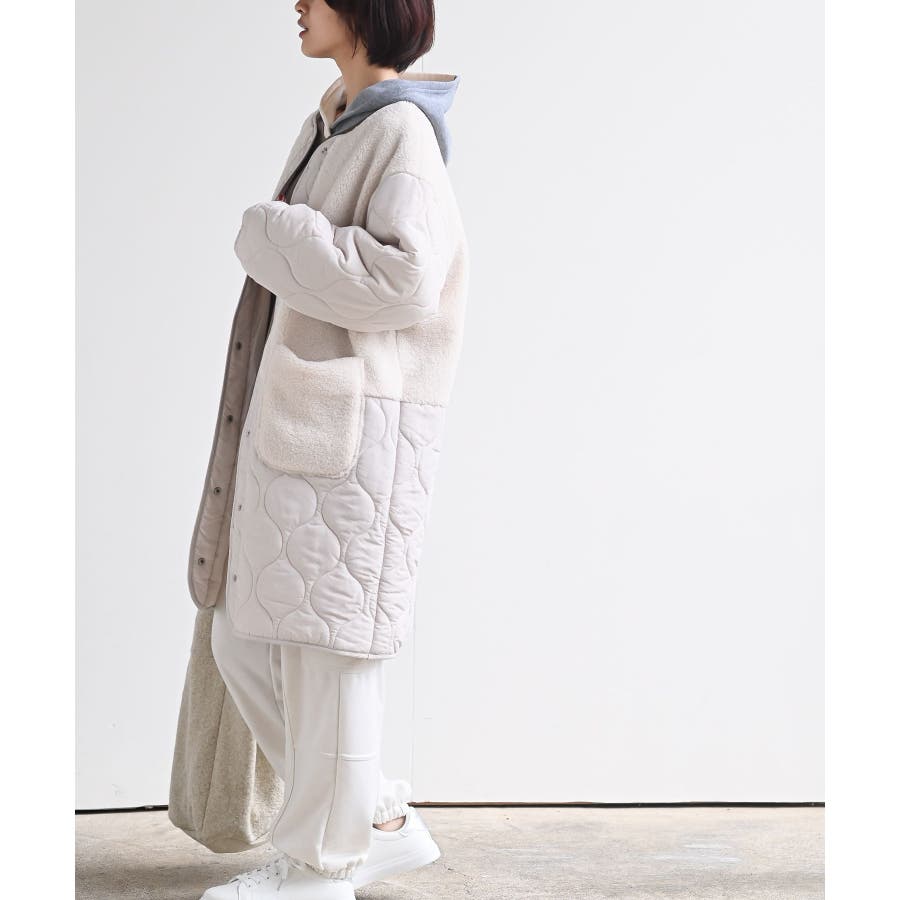 ボア×ウェーブキルト切替ノーカラーコート