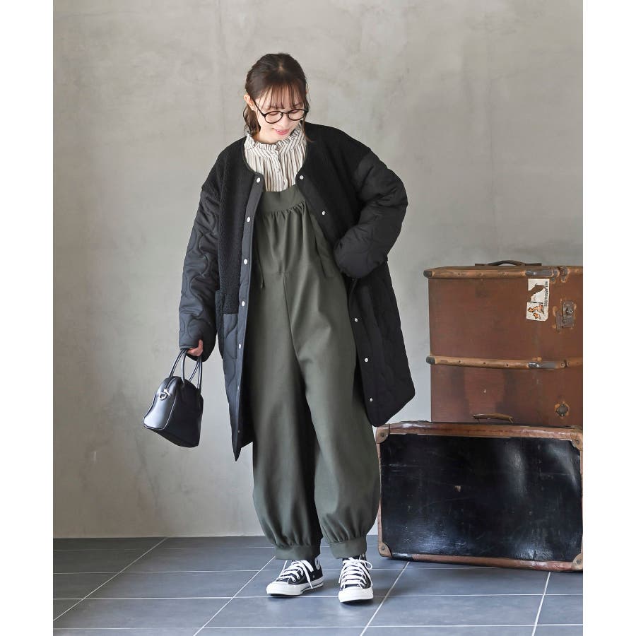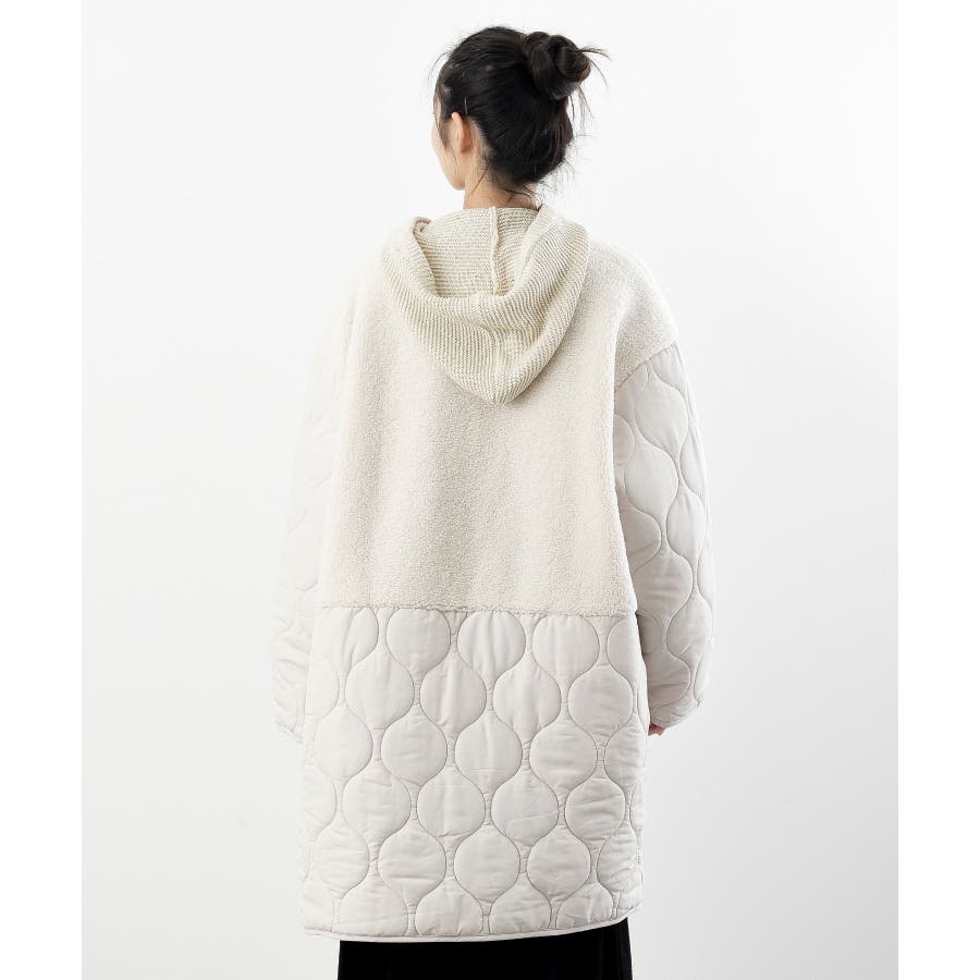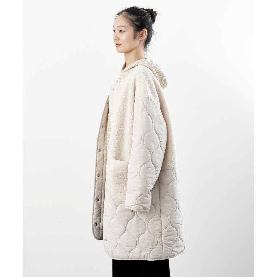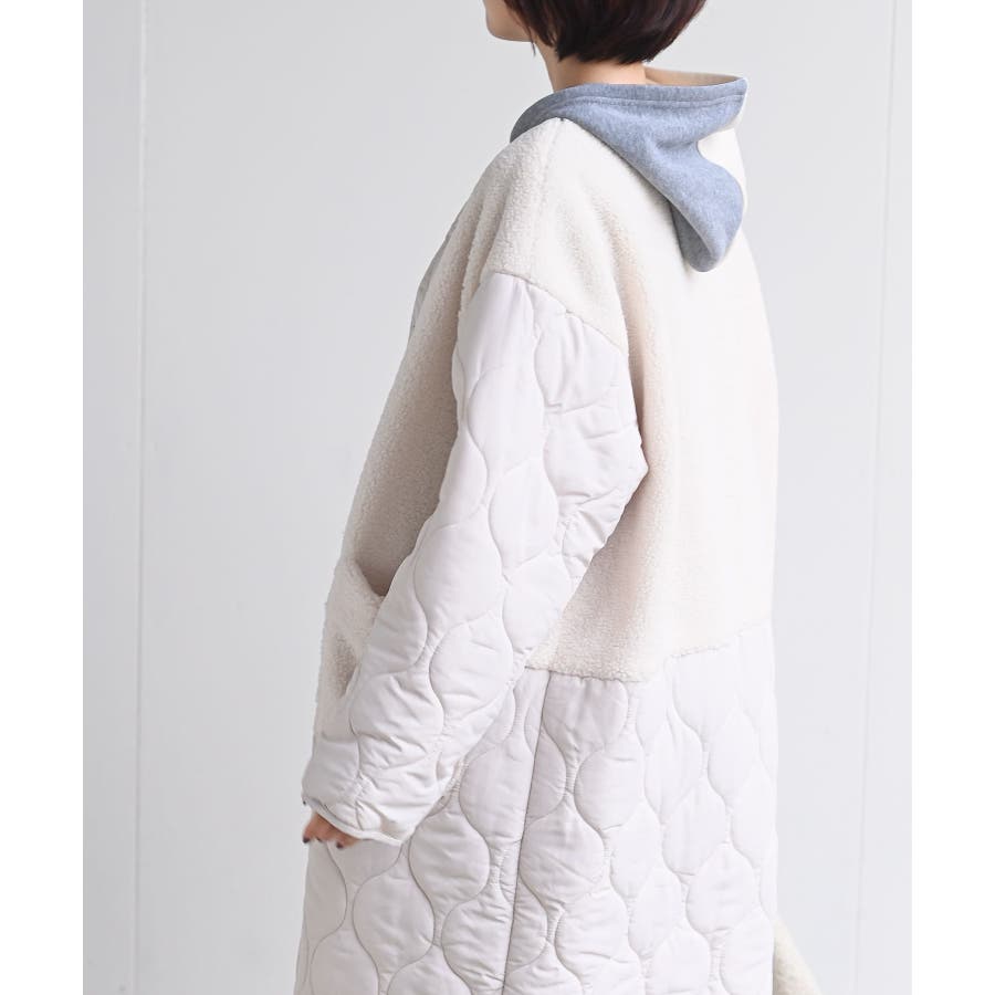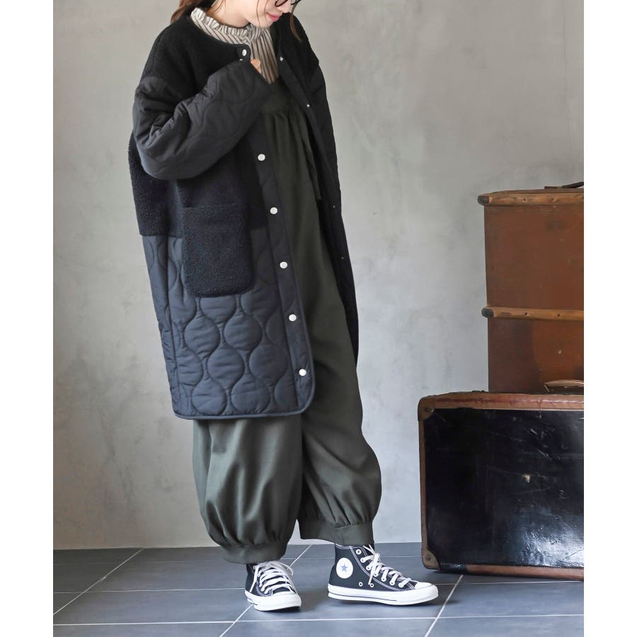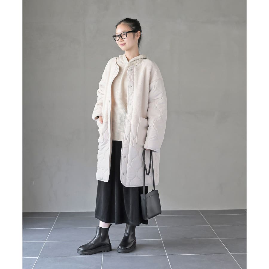 ボア×ウェーブキルト切替ノーカラーコート