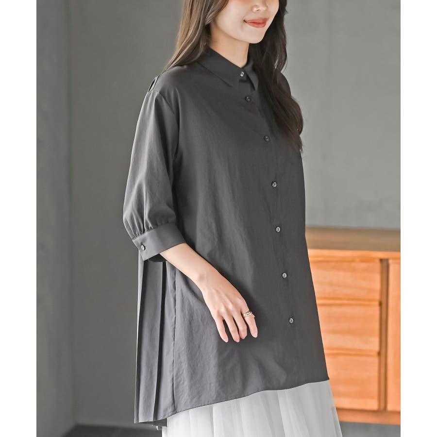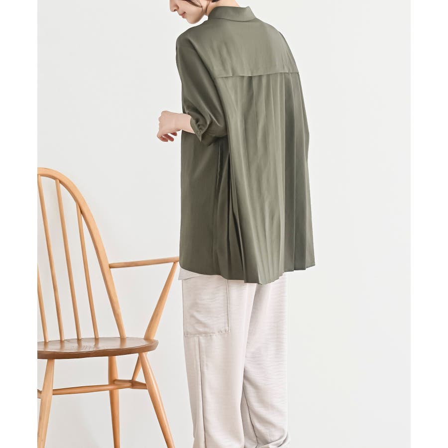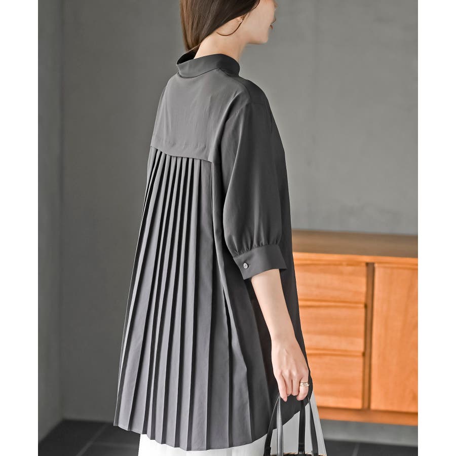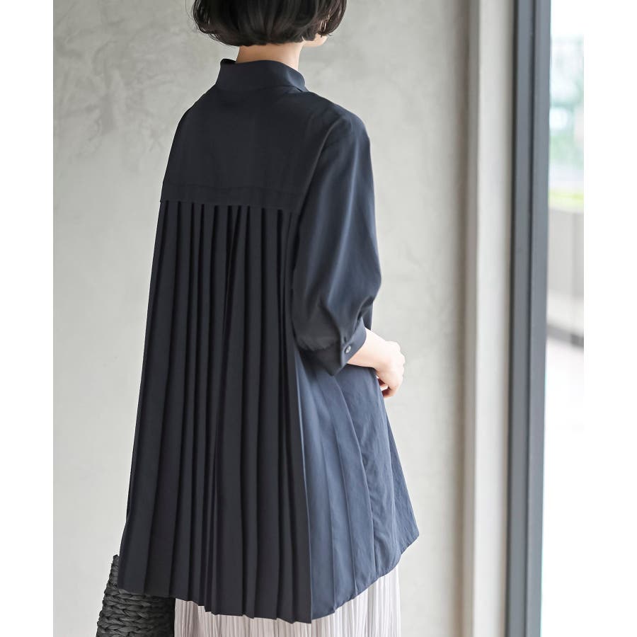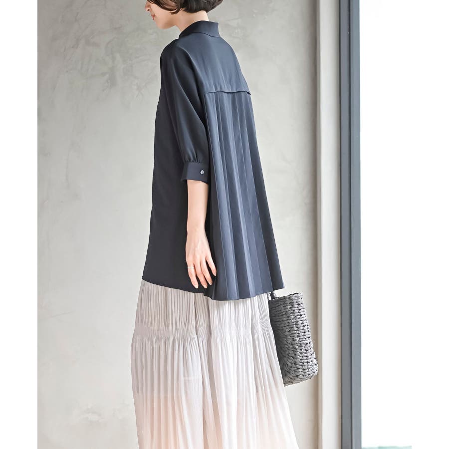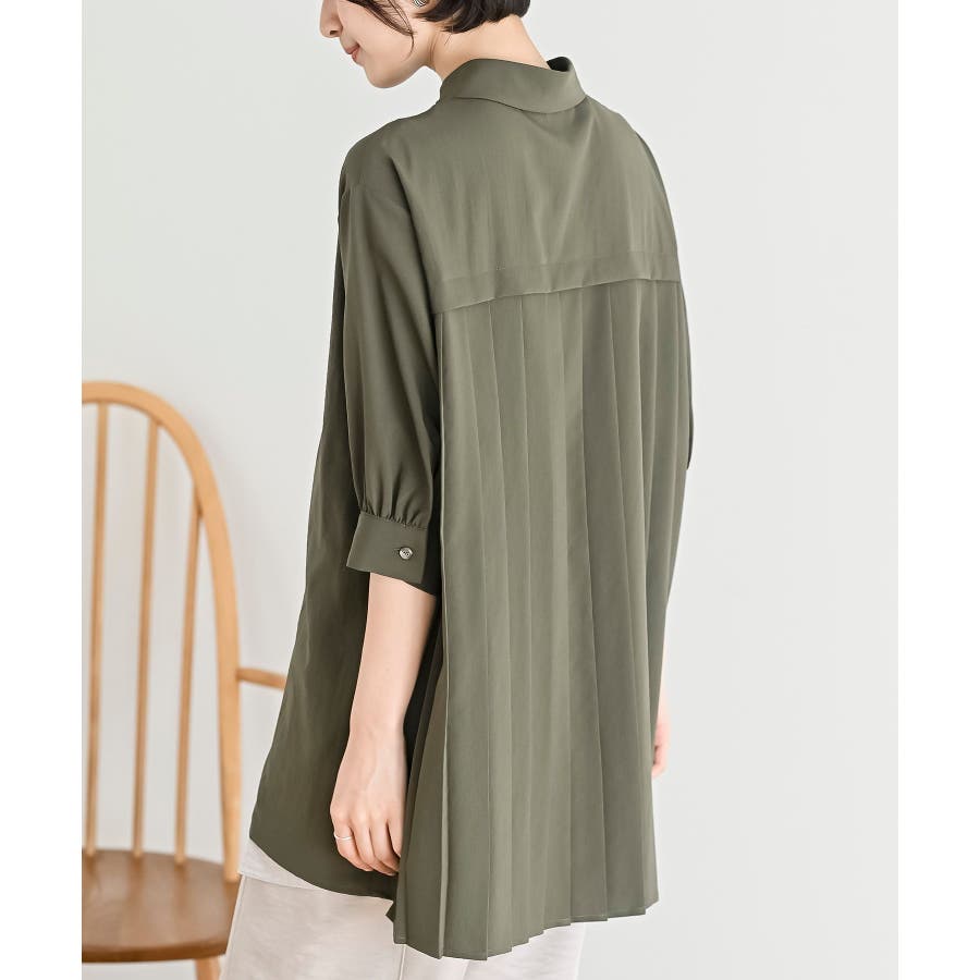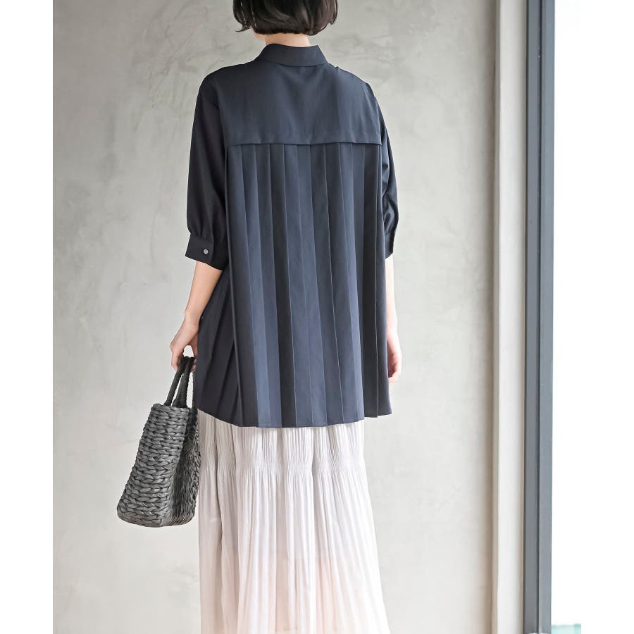 BACKプリーツ7分袖ブラウスチュニック