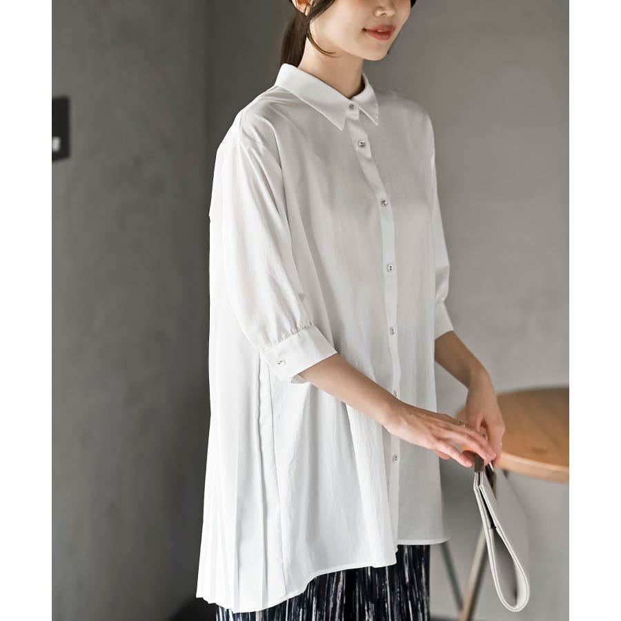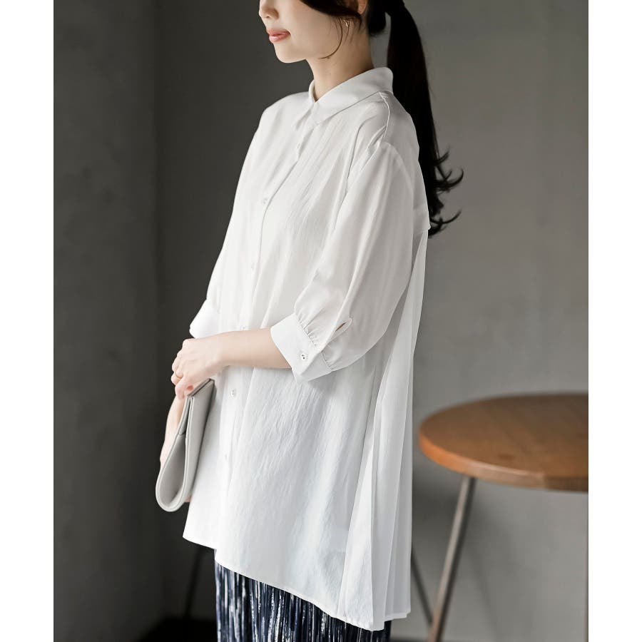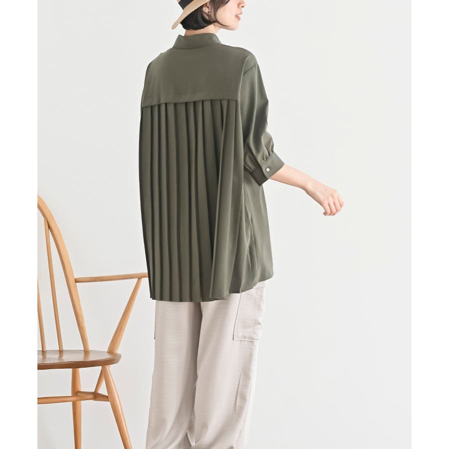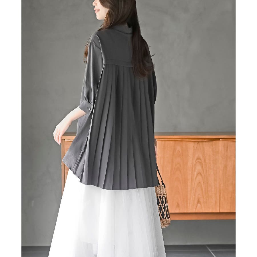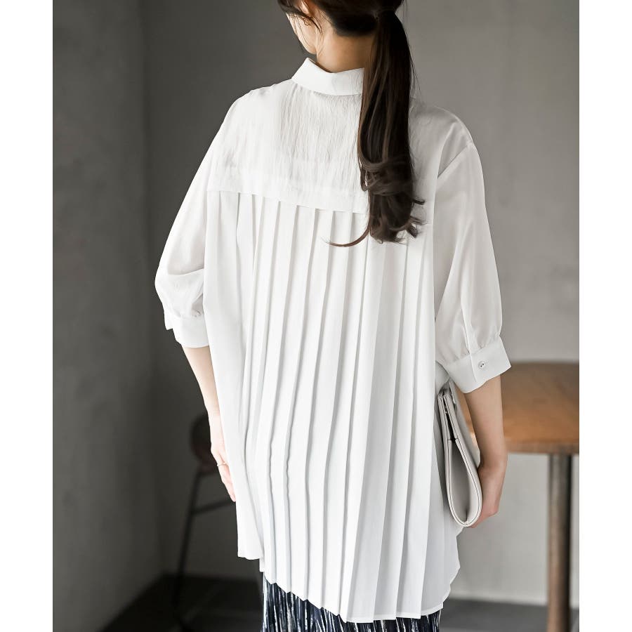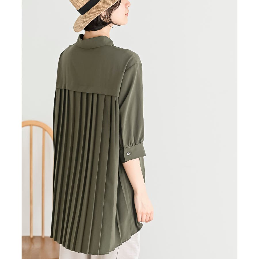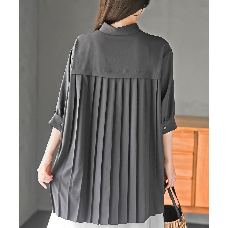 BACKプリーツ7分袖ブラウスチュニック