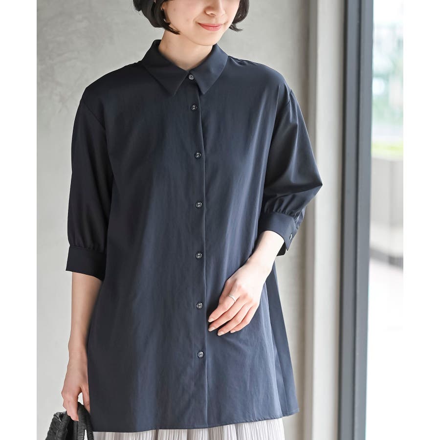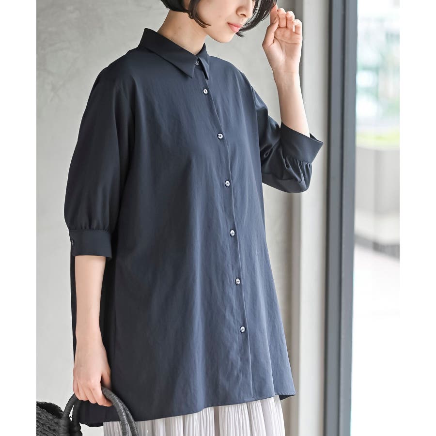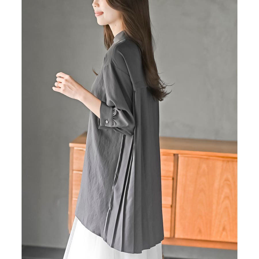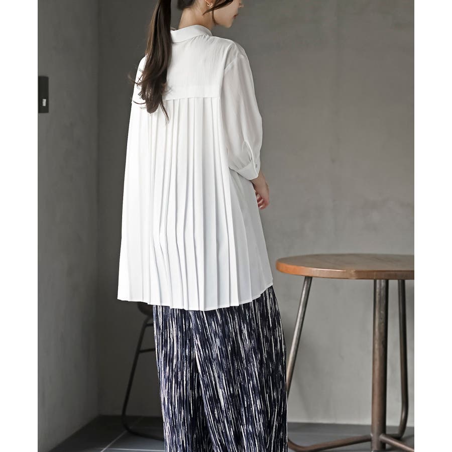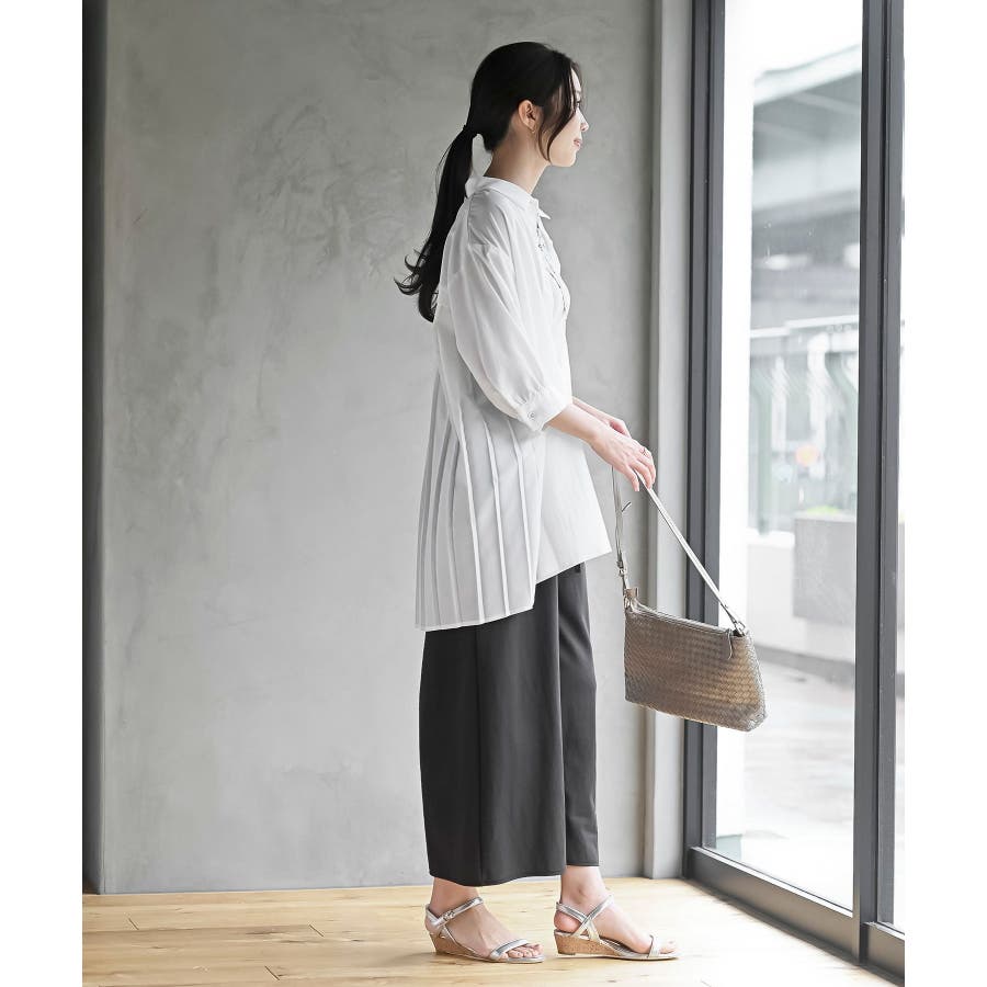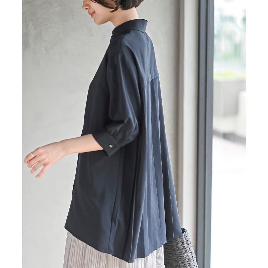 BACKプリーツ7分袖ブラウスチュニック