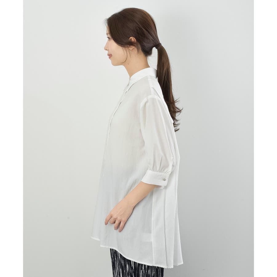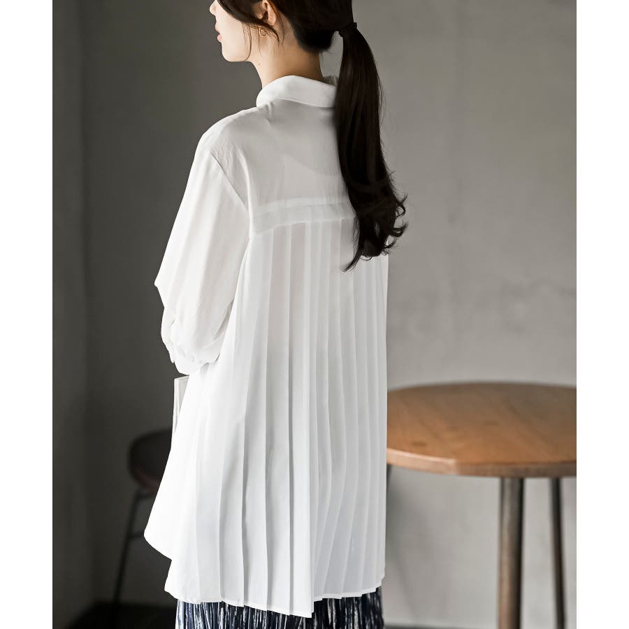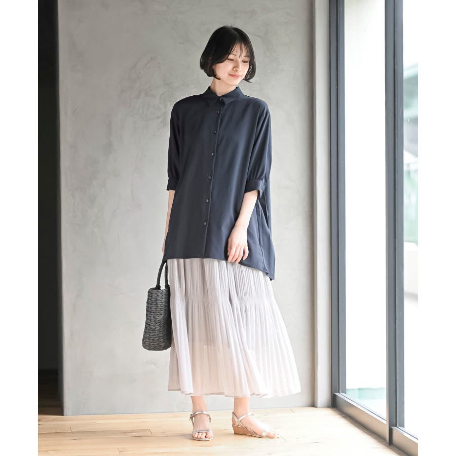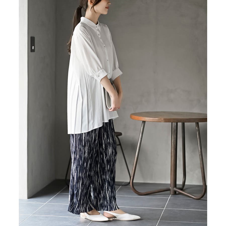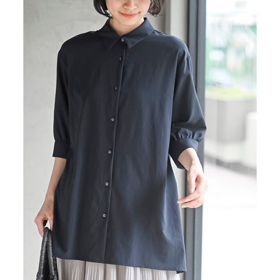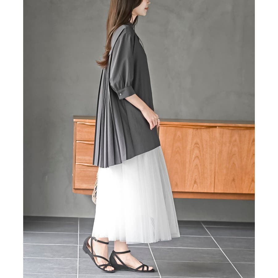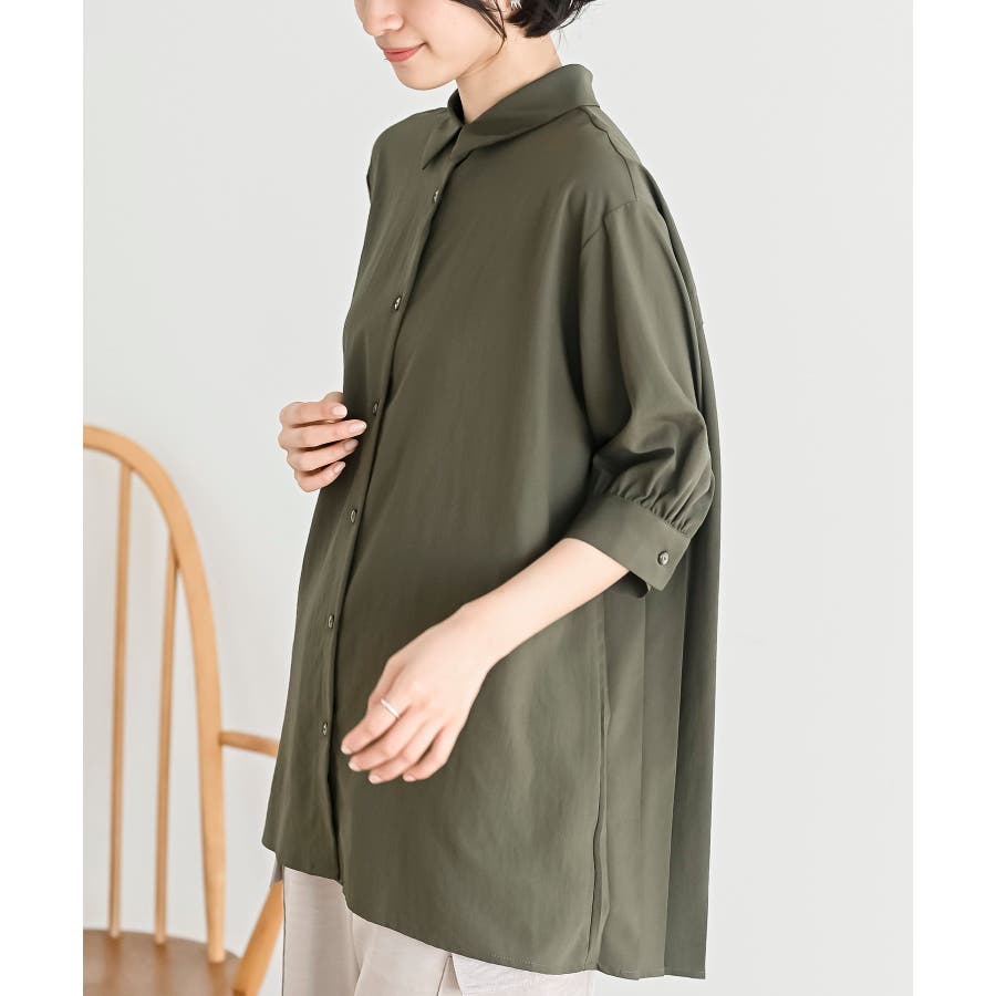 BACKプリーツ7分袖ブラウスチュニック