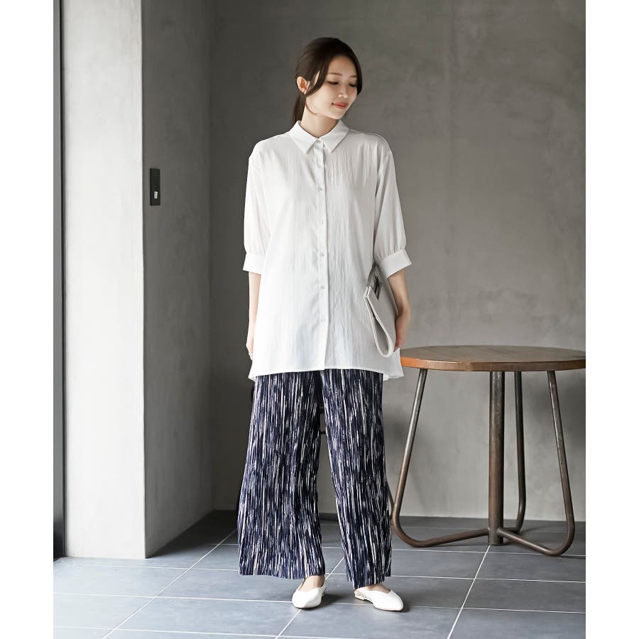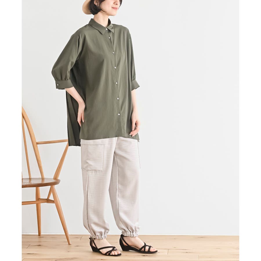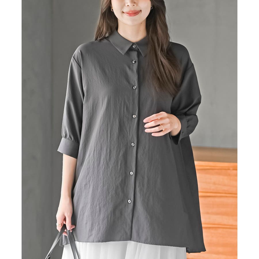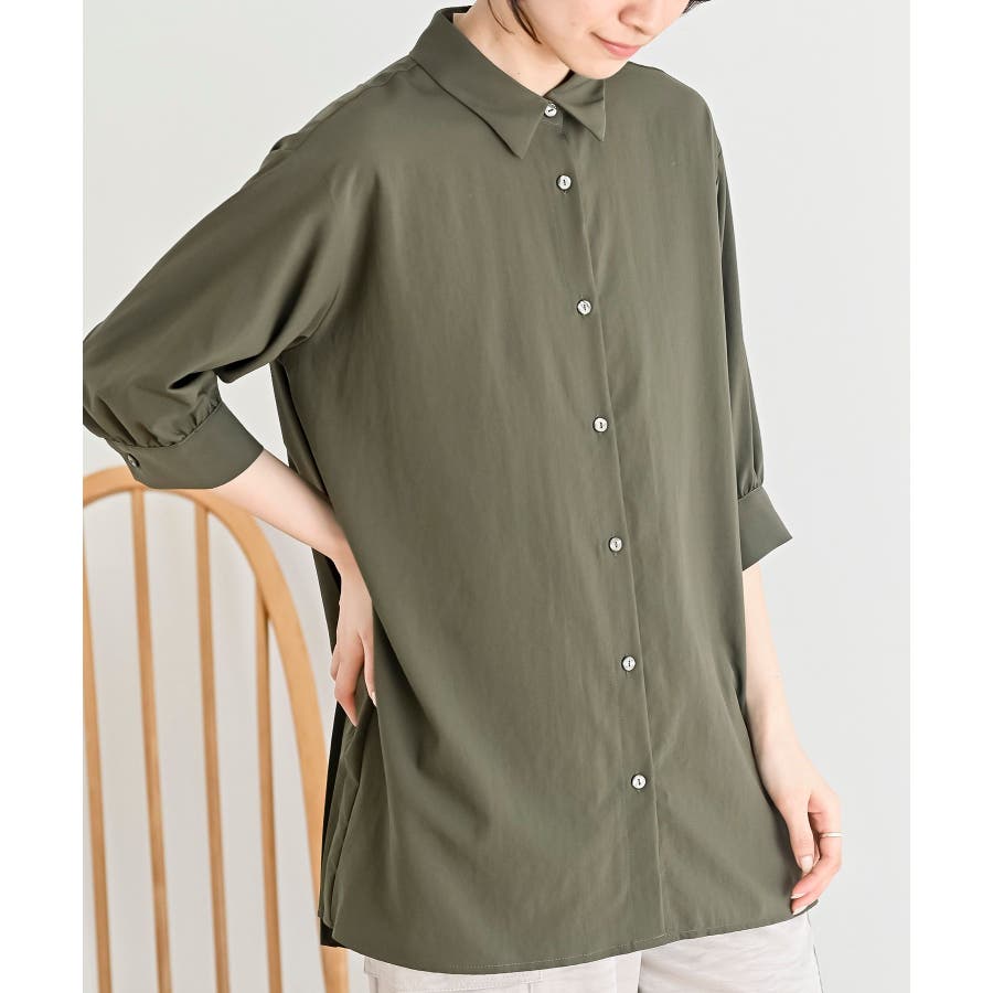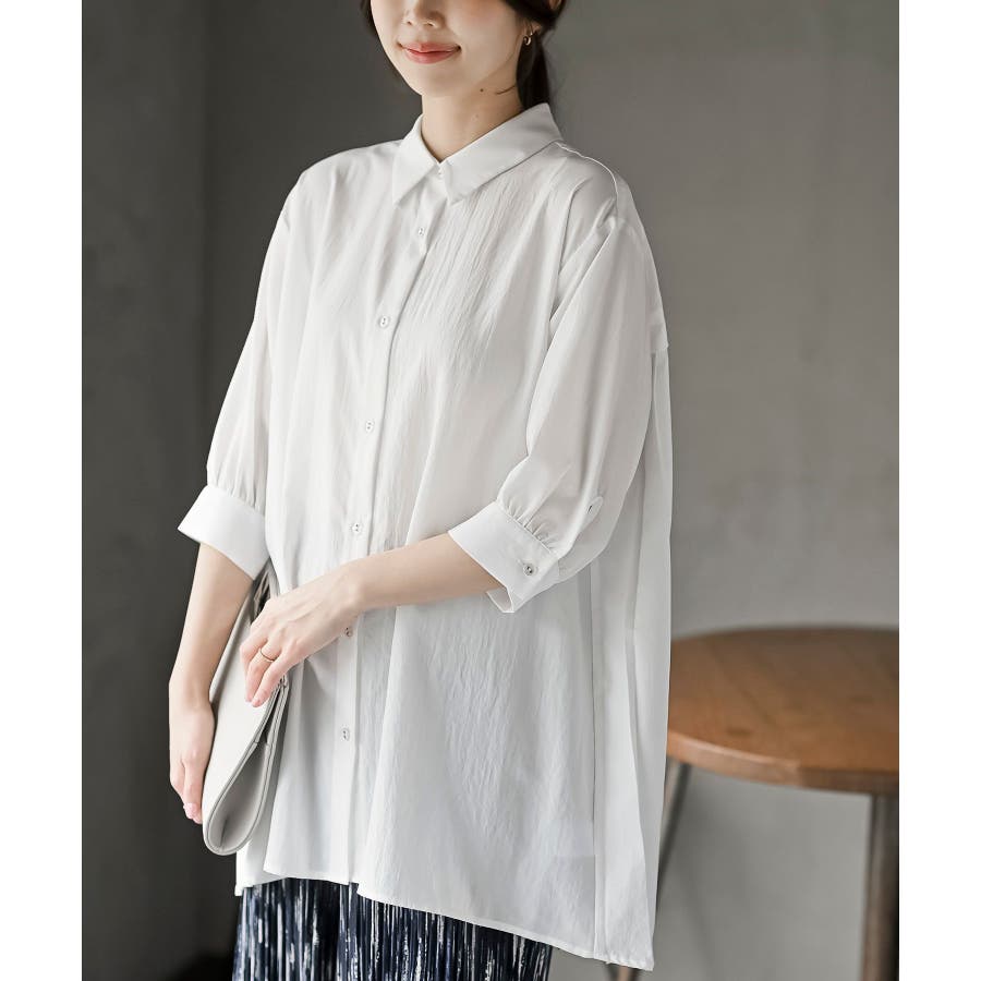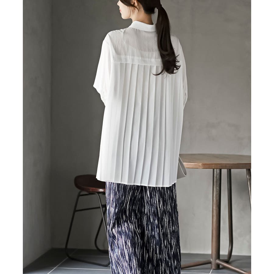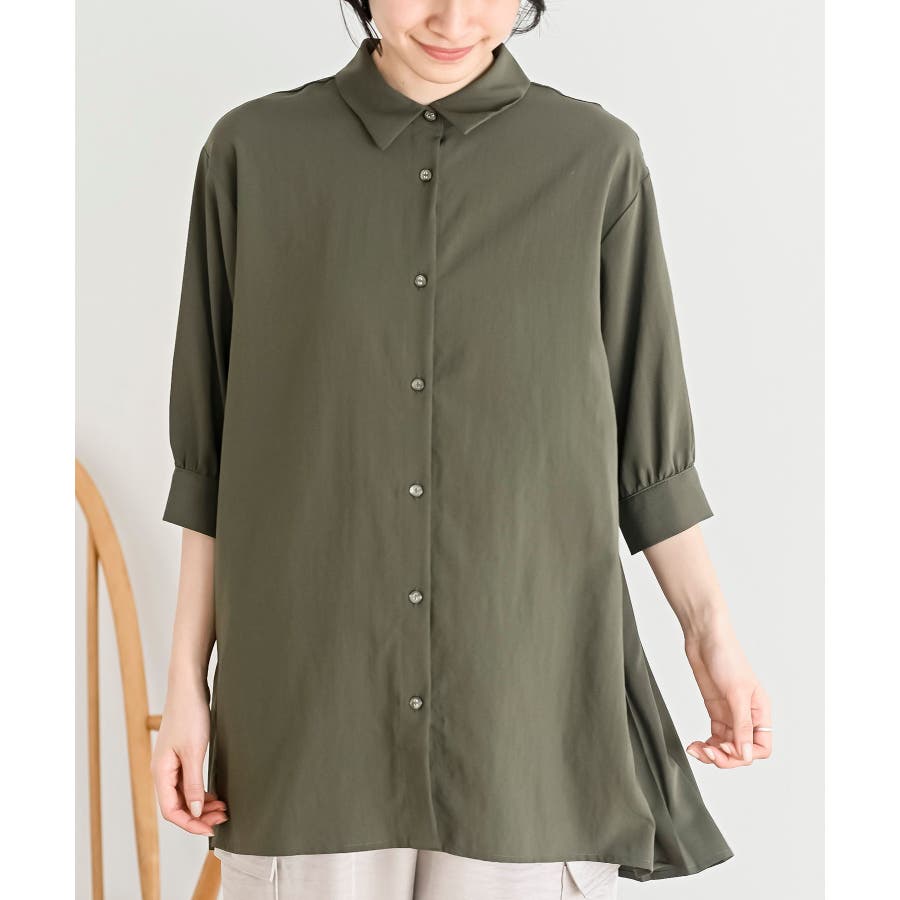 BACKプリーツ7分袖ブラウスチュニック