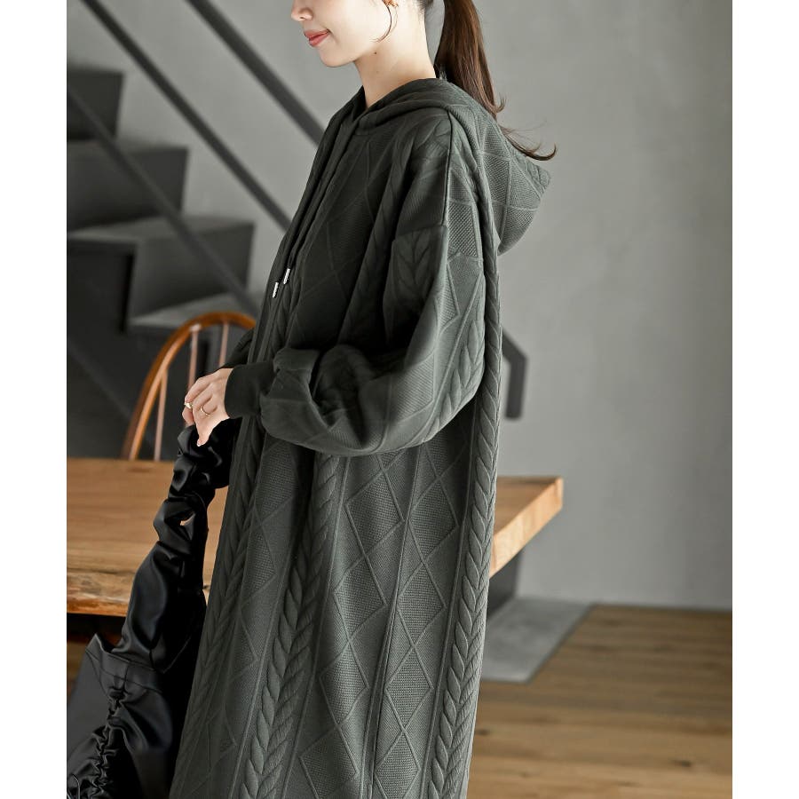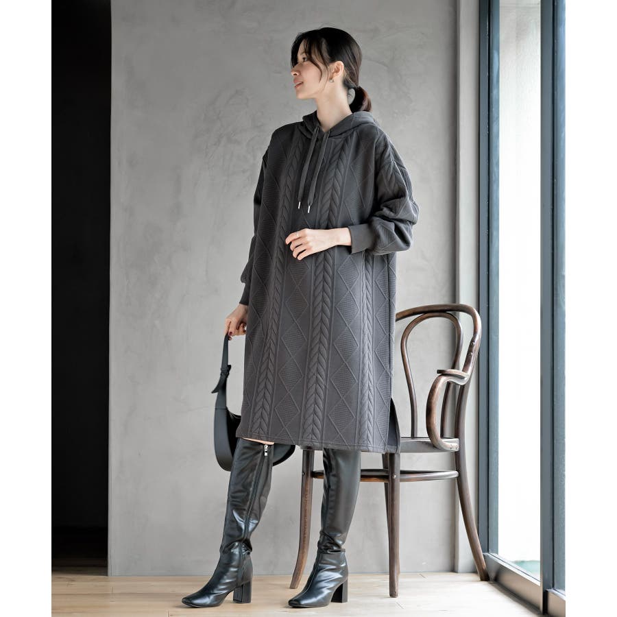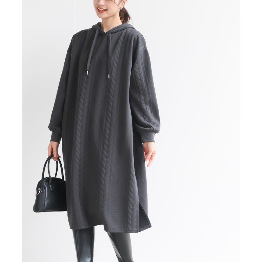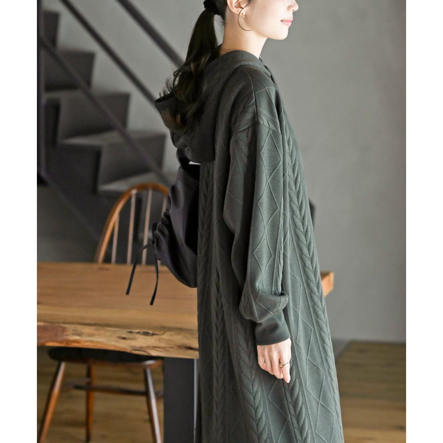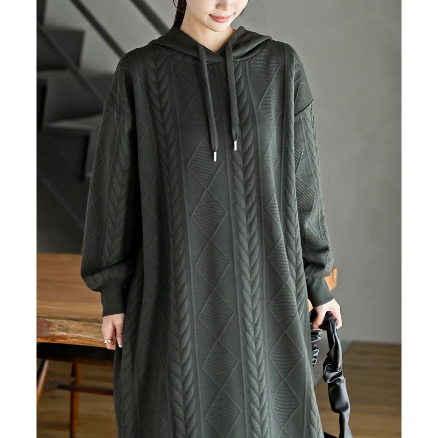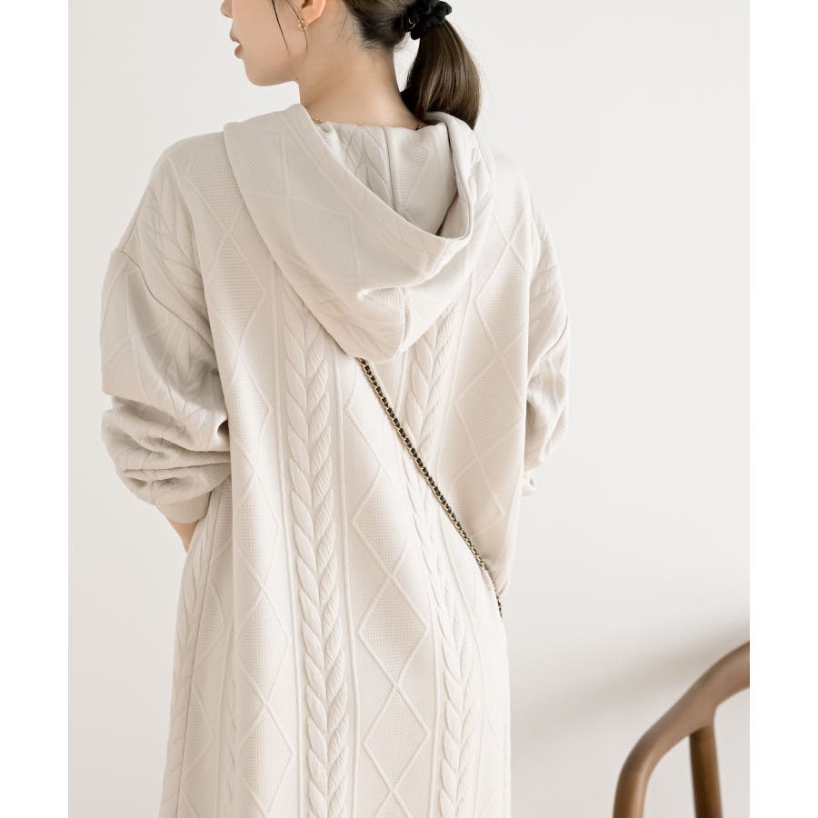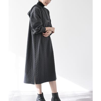ケーブル柄パーカーワンピース