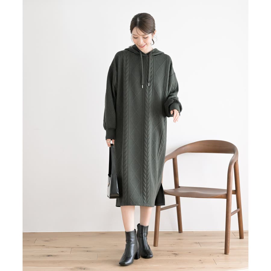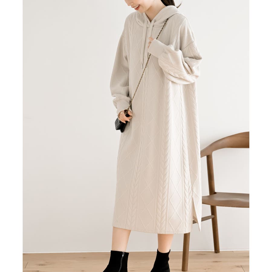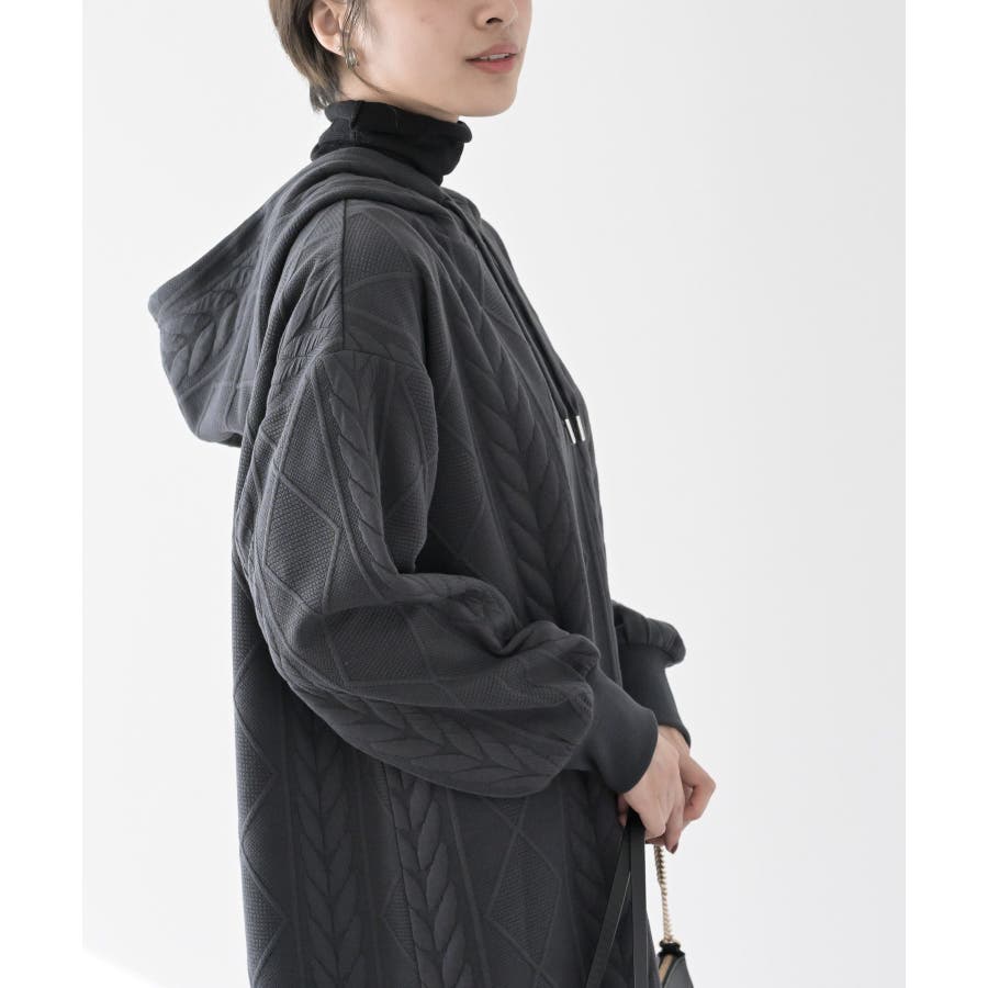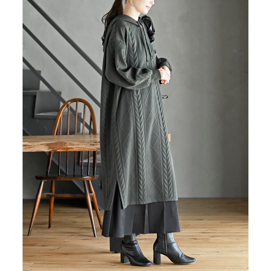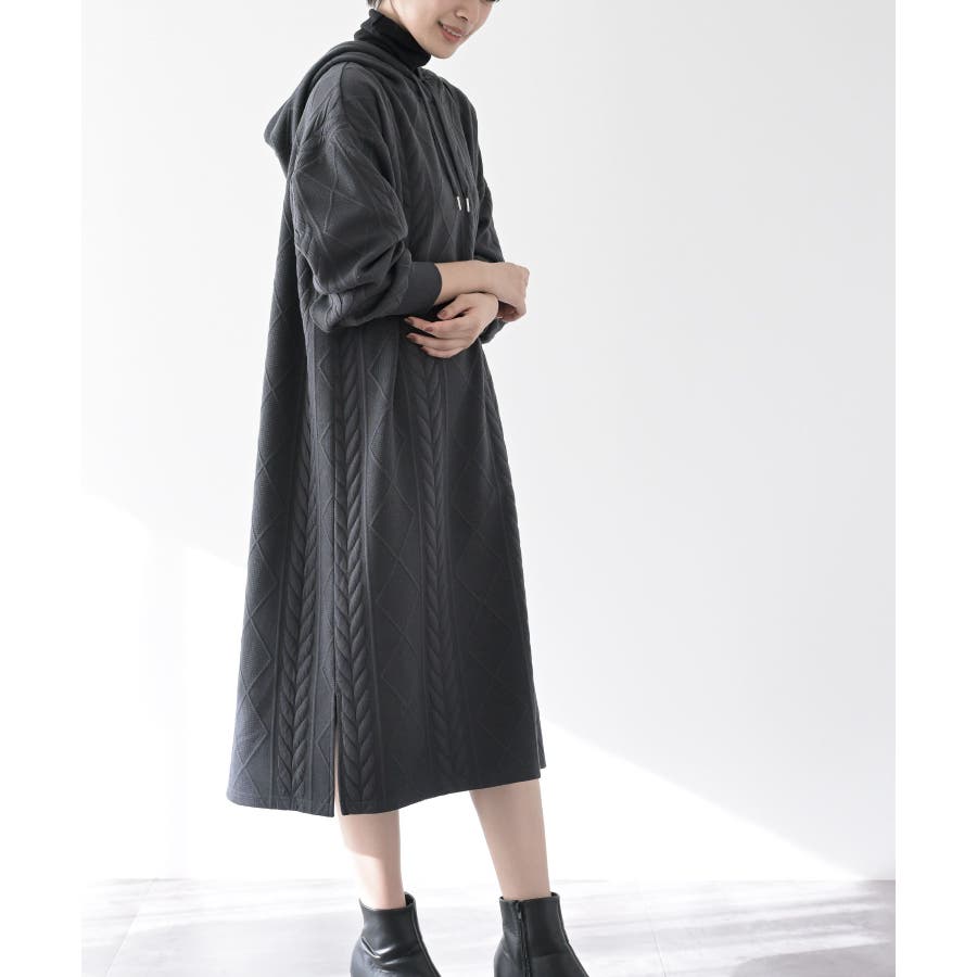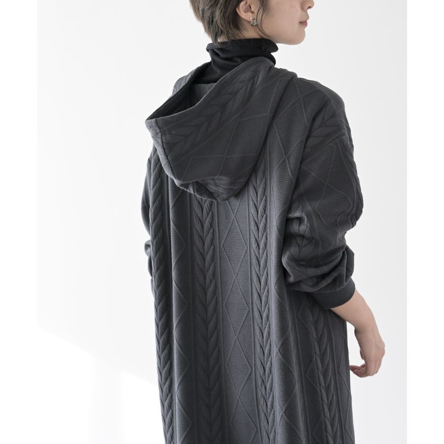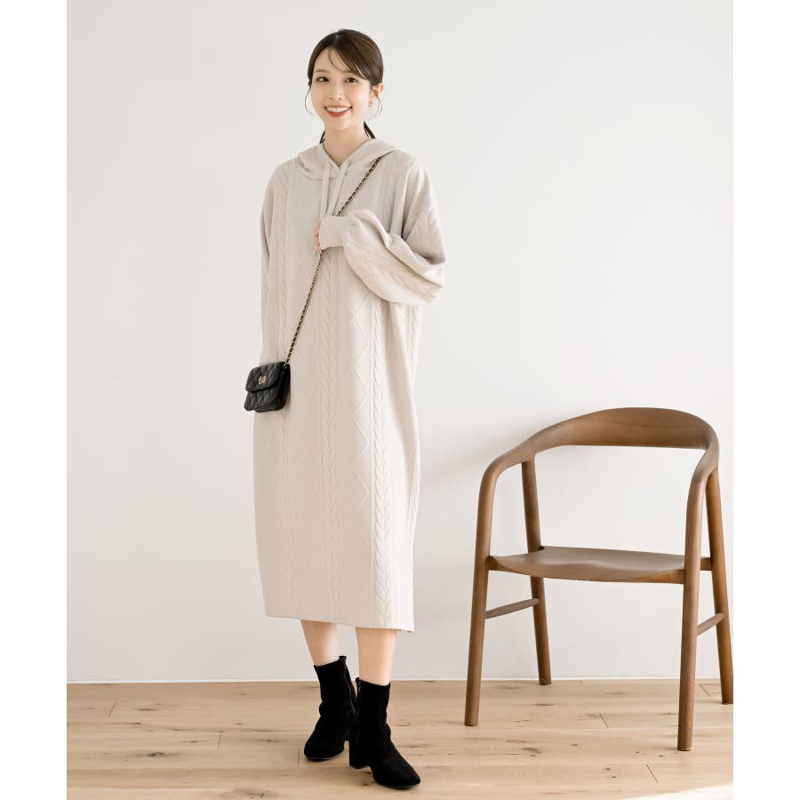 ケーブル柄パーカーワンピース