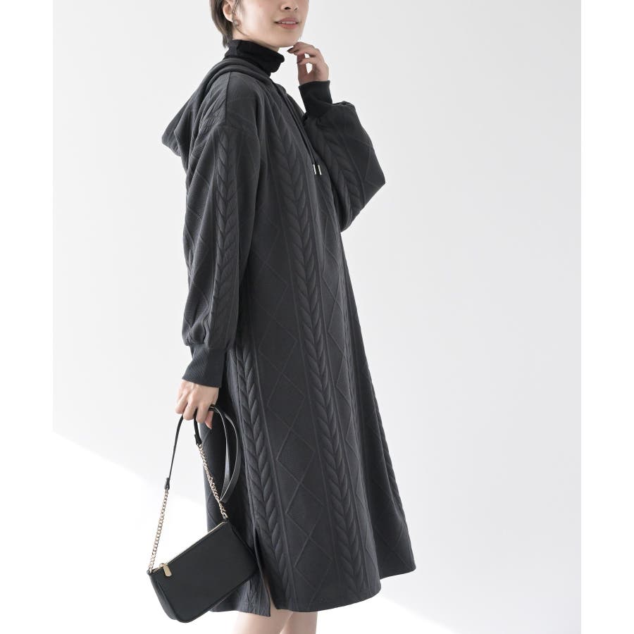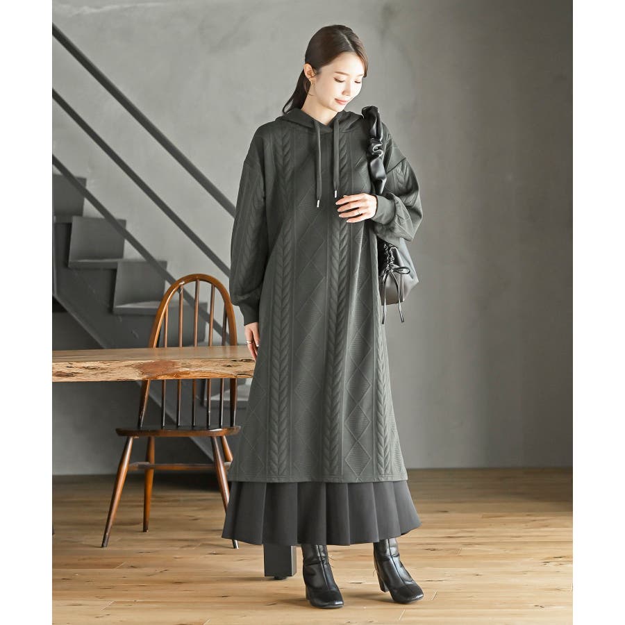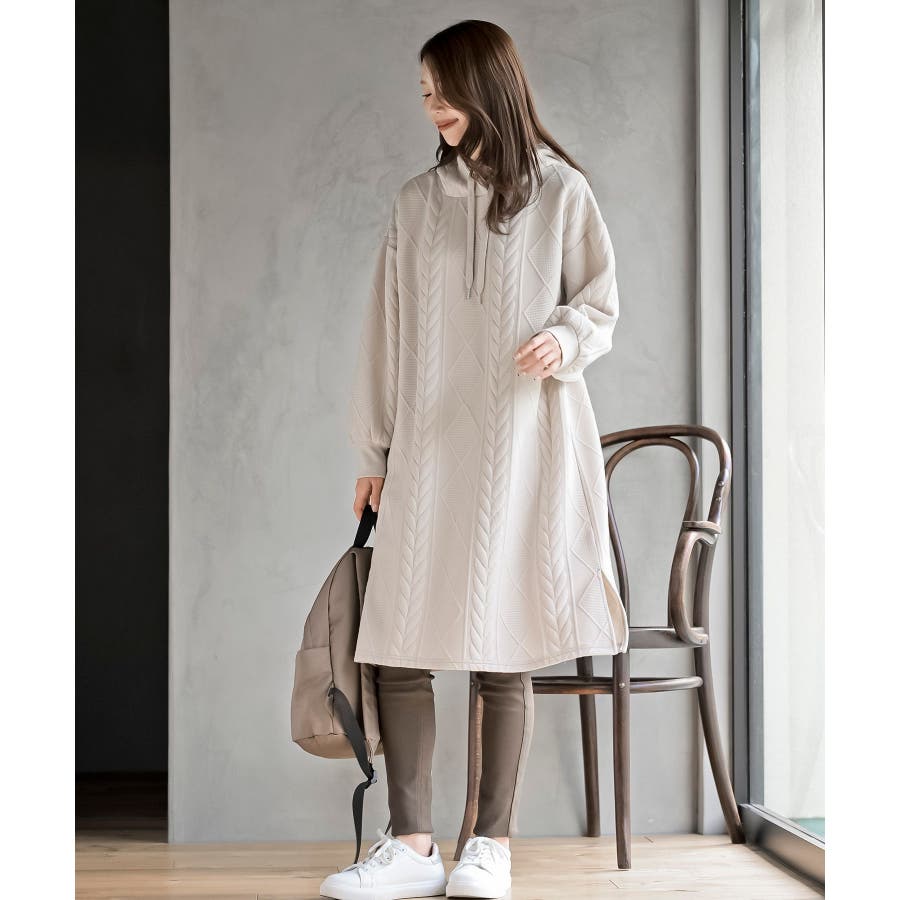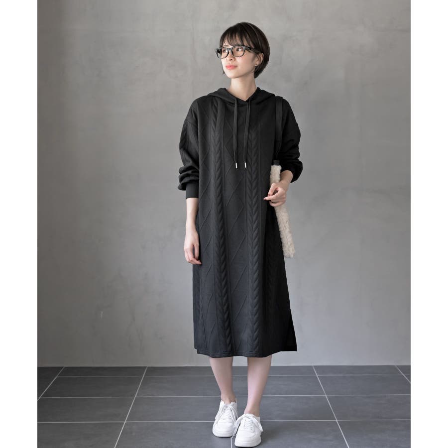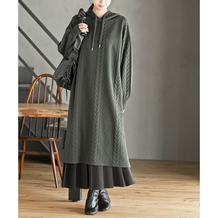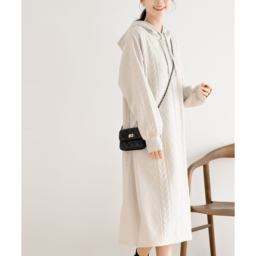 ケーブル柄パーカーワンピース