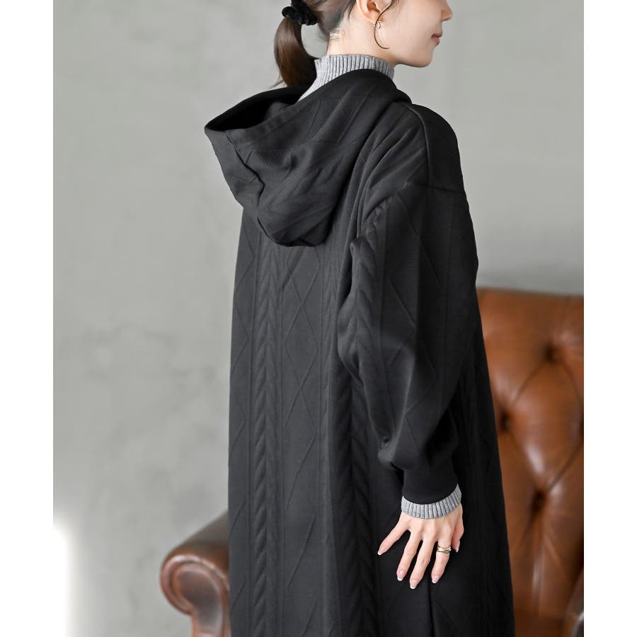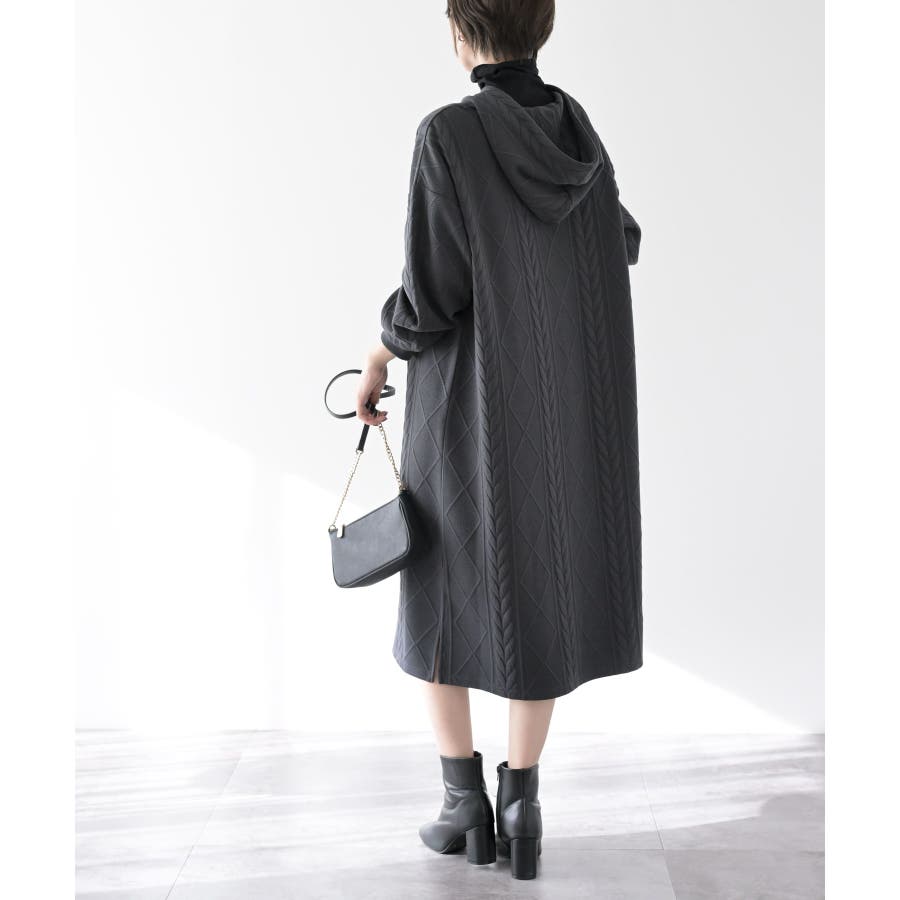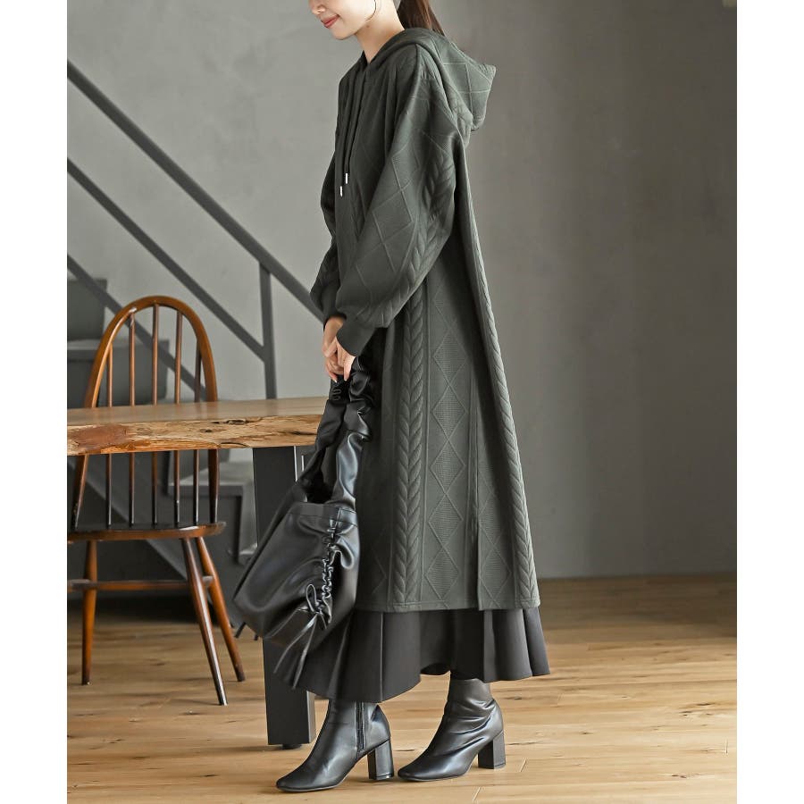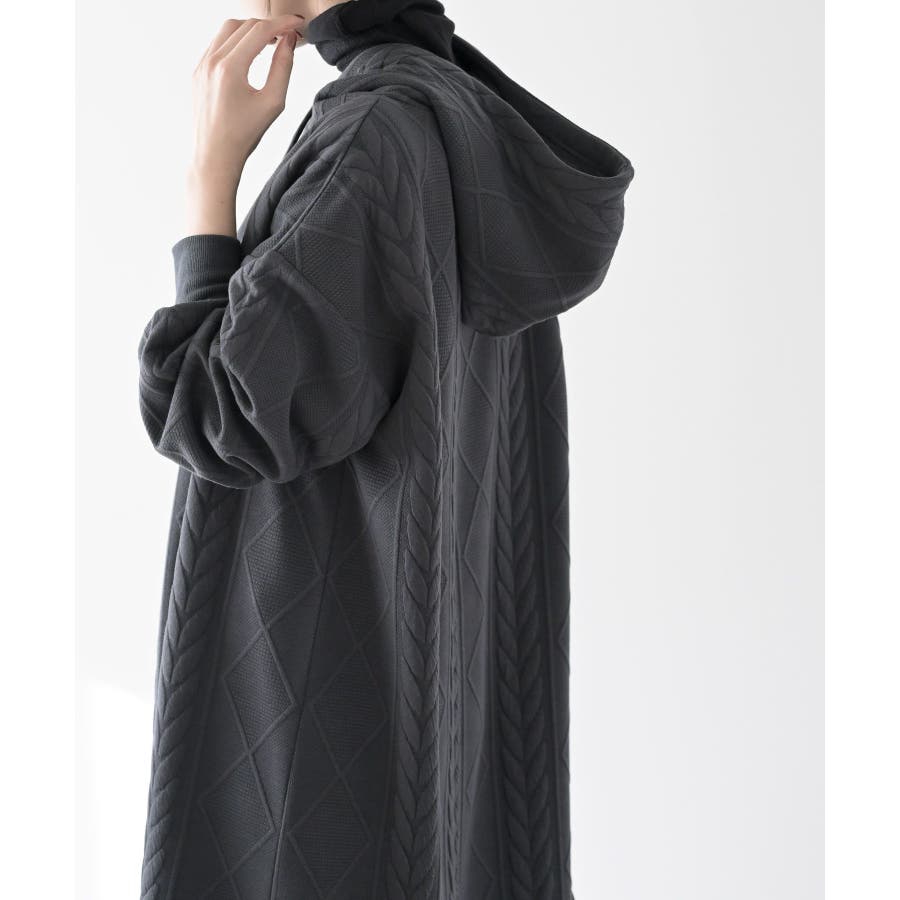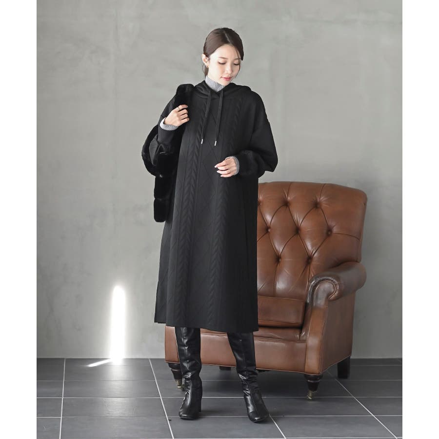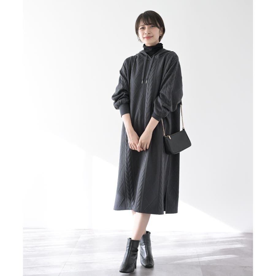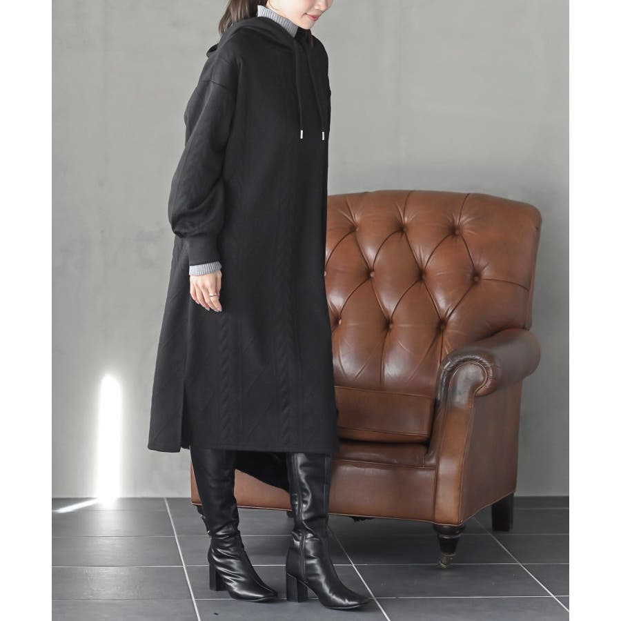 ケーブル柄パーカーワンピース