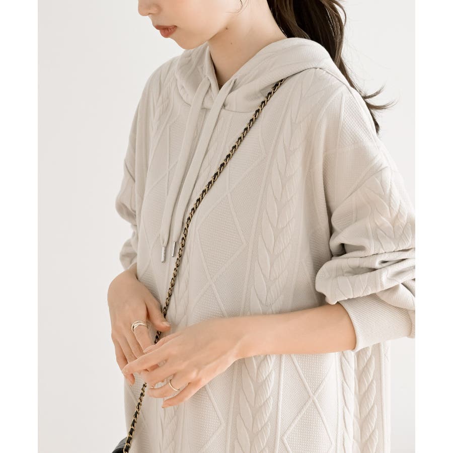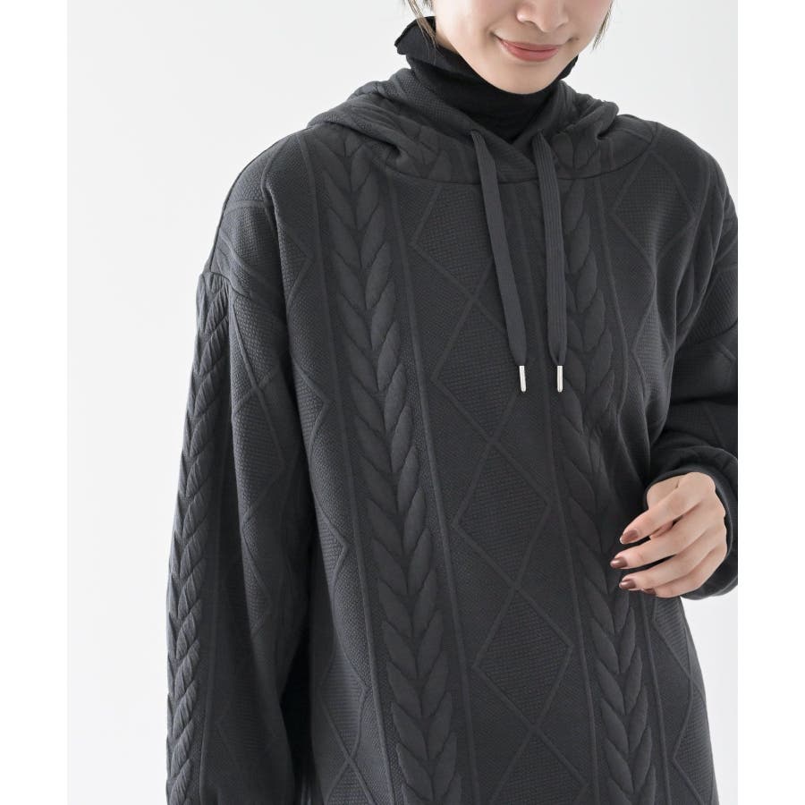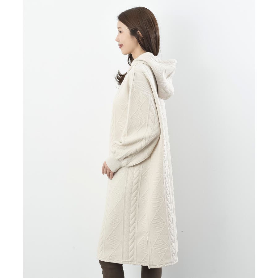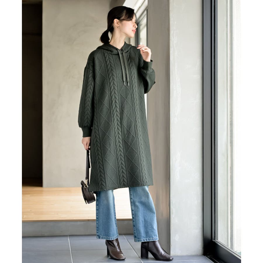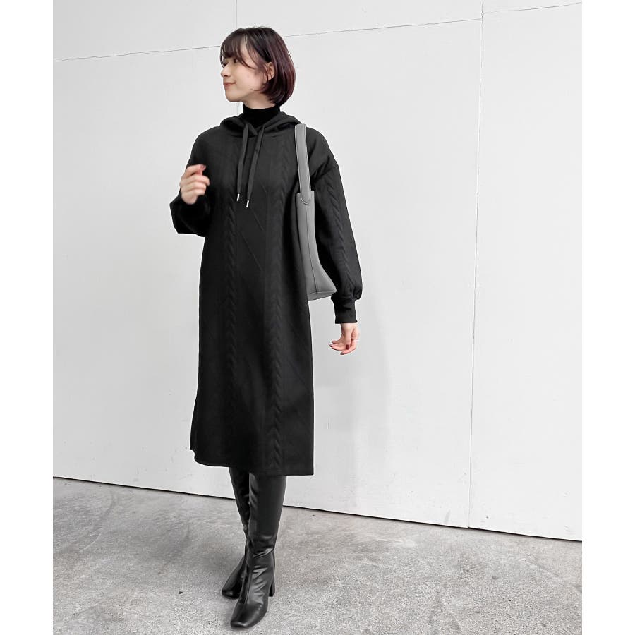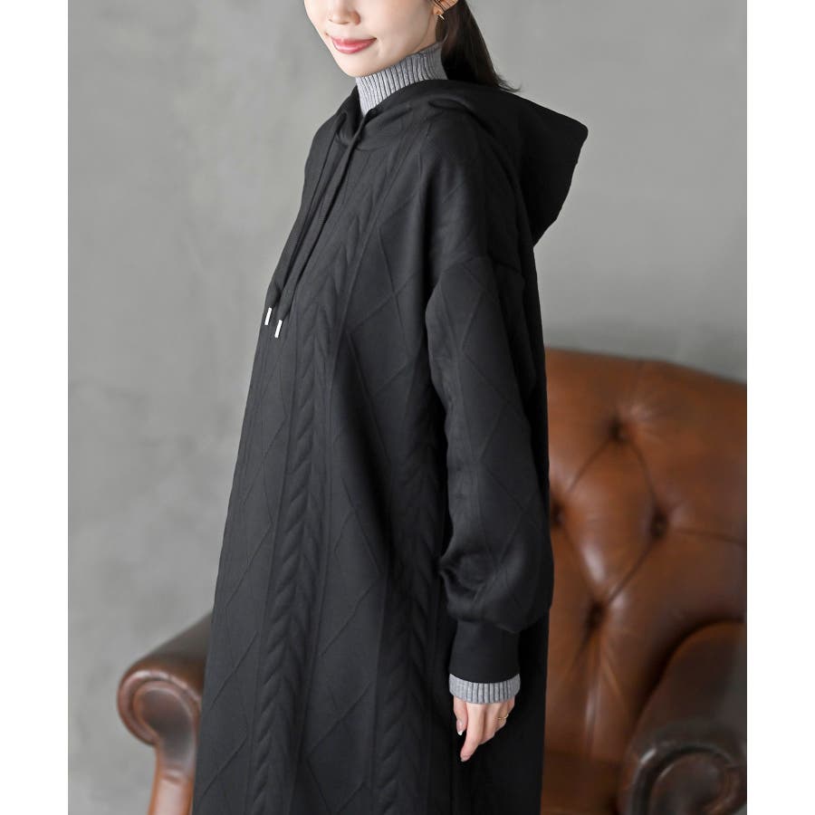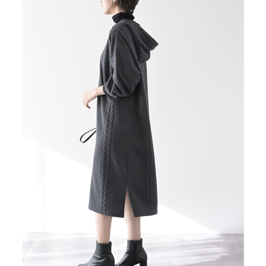 ケーブル柄パーカーワンピース