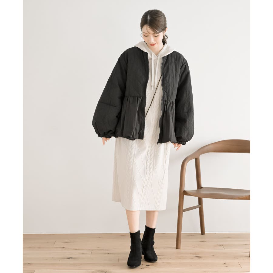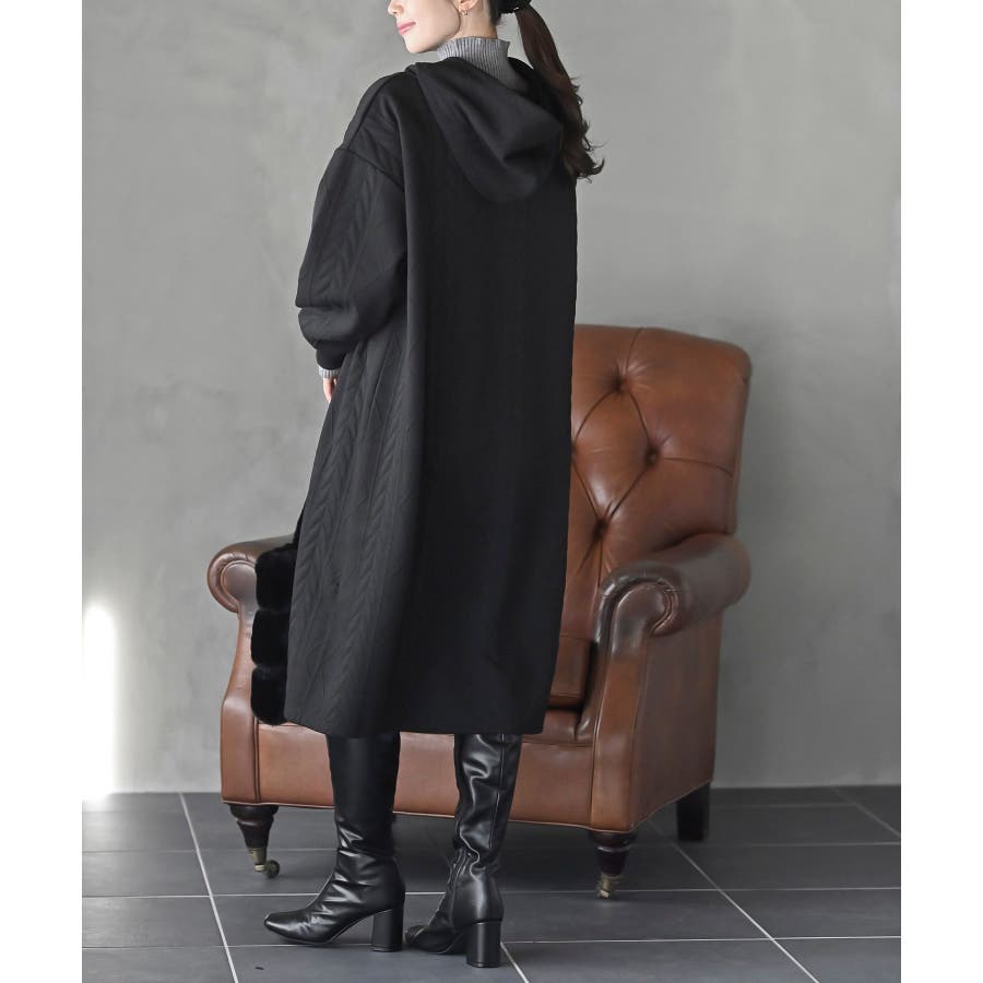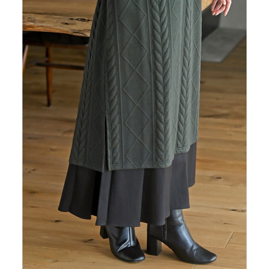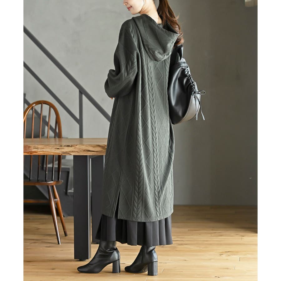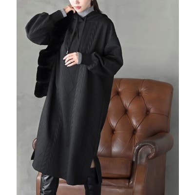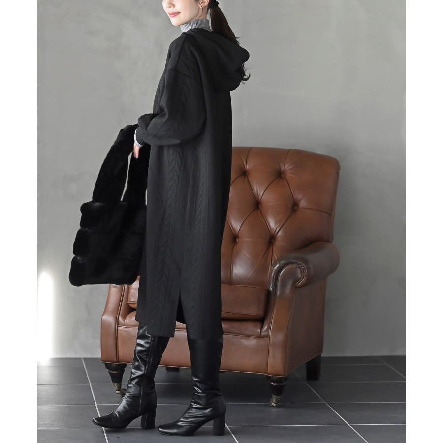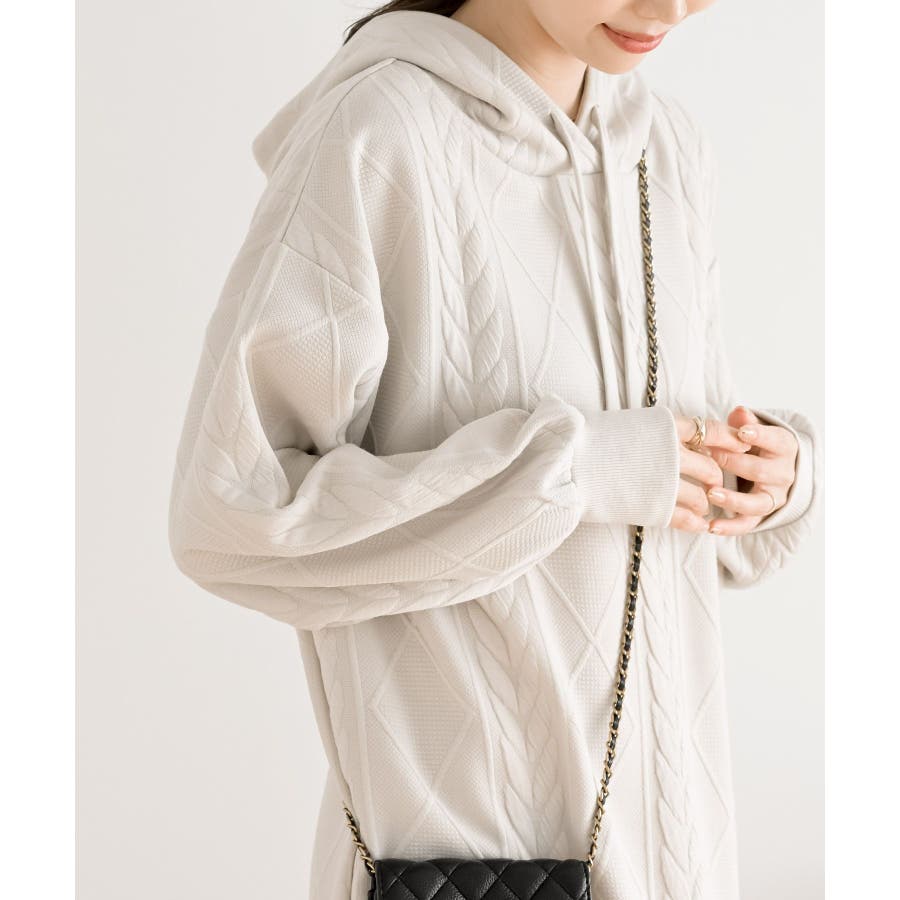 ケーブル柄パーカーワンピース