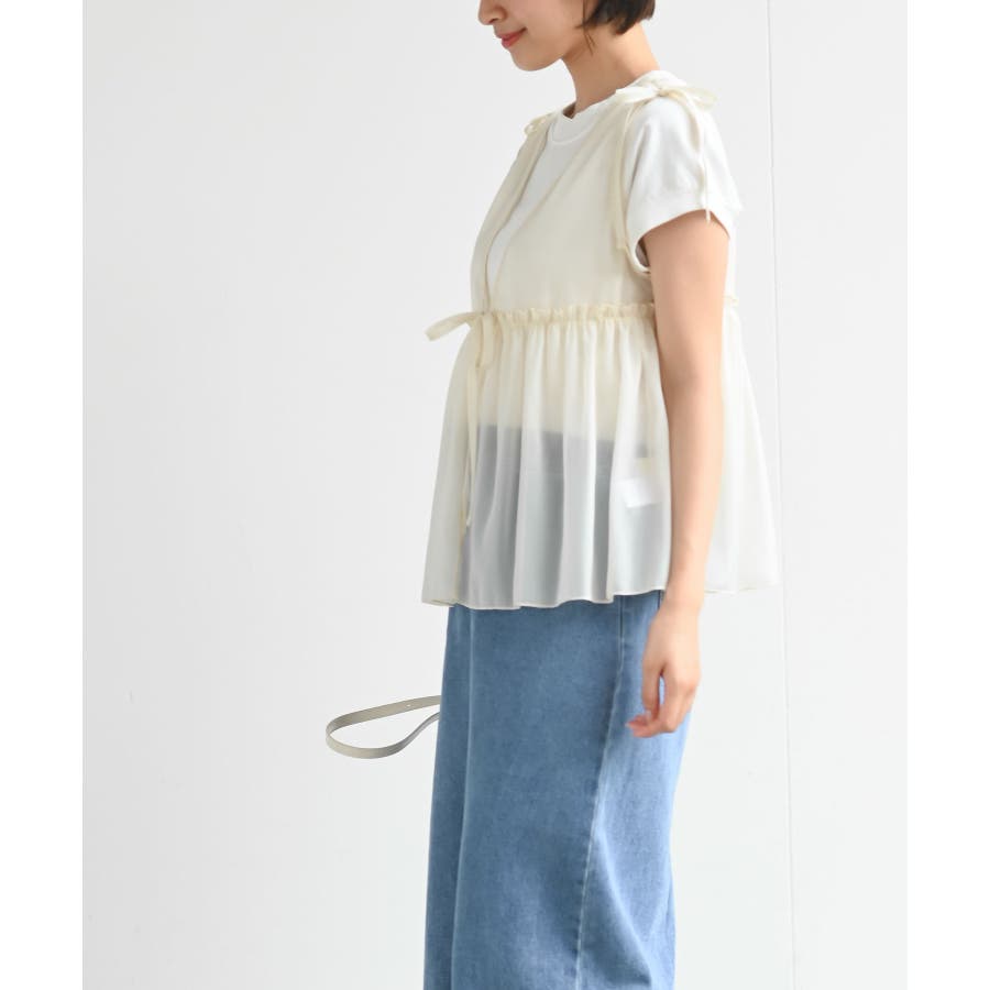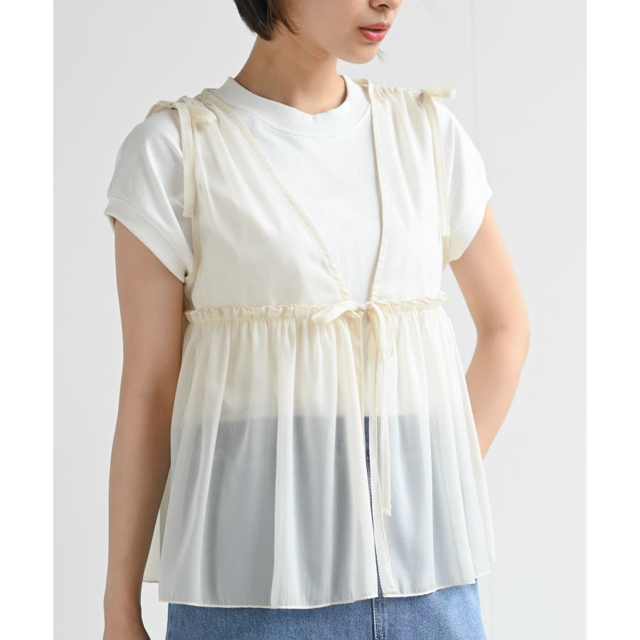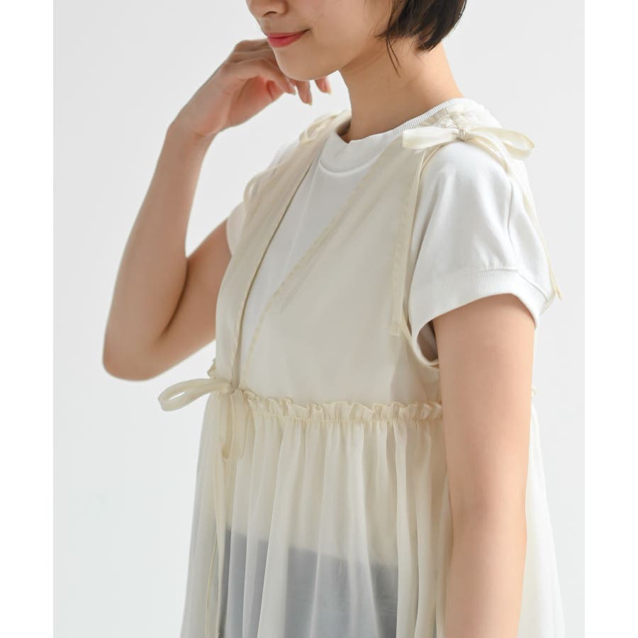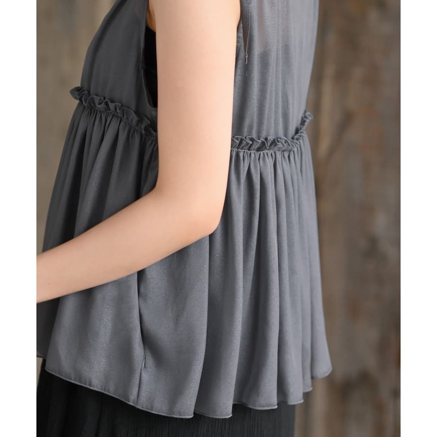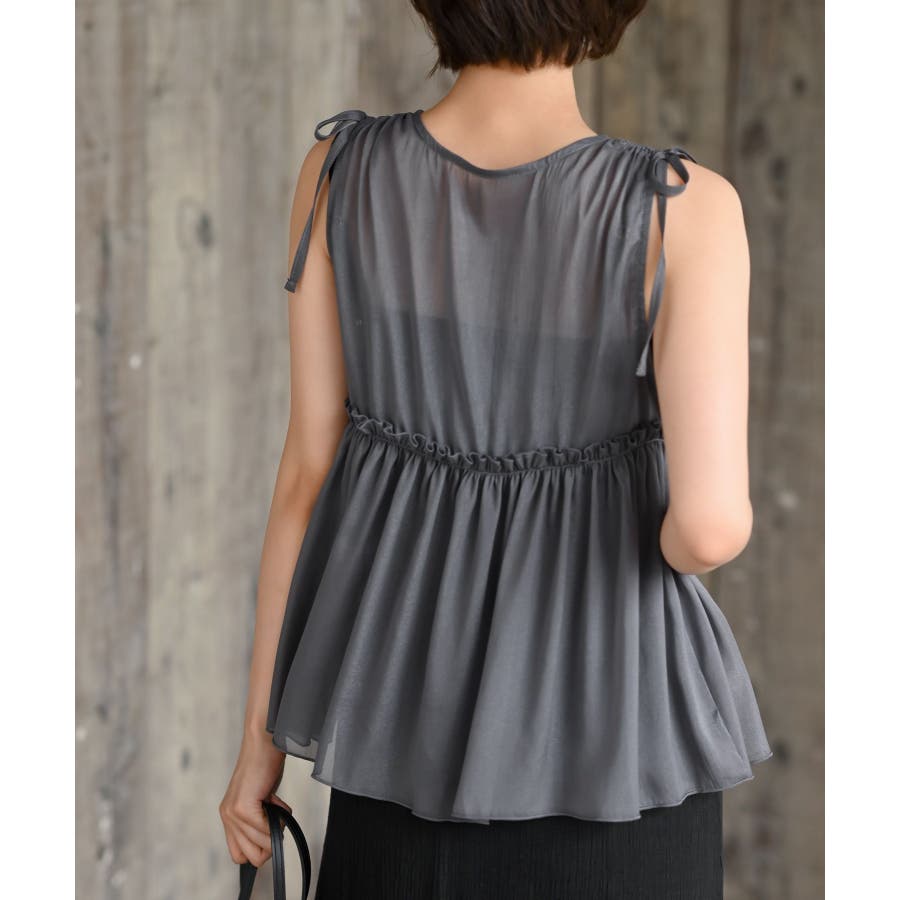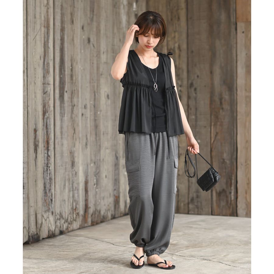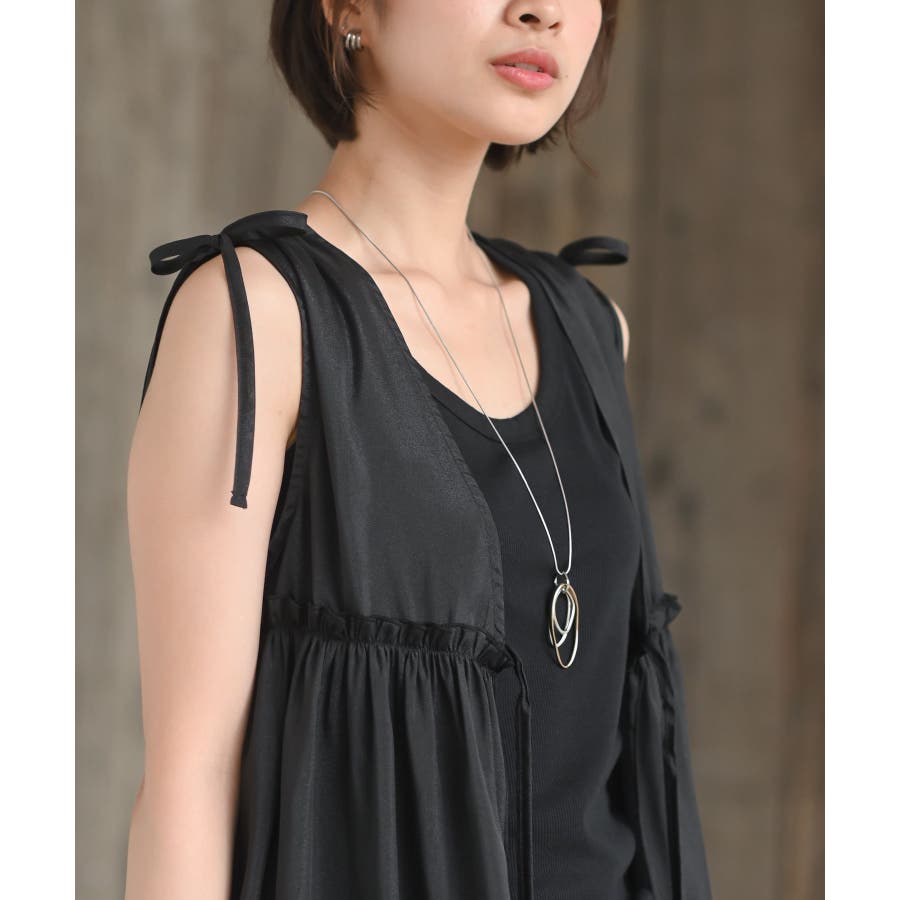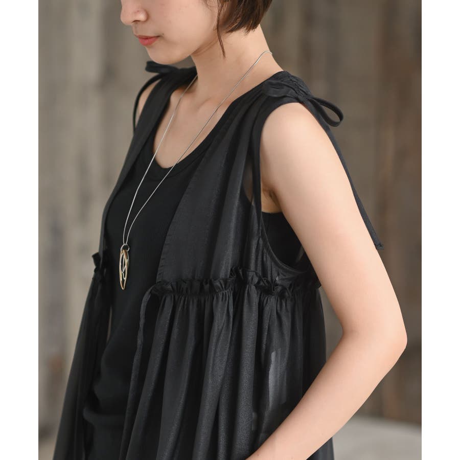 【CHACグレー】光沢シアーリボンベスト