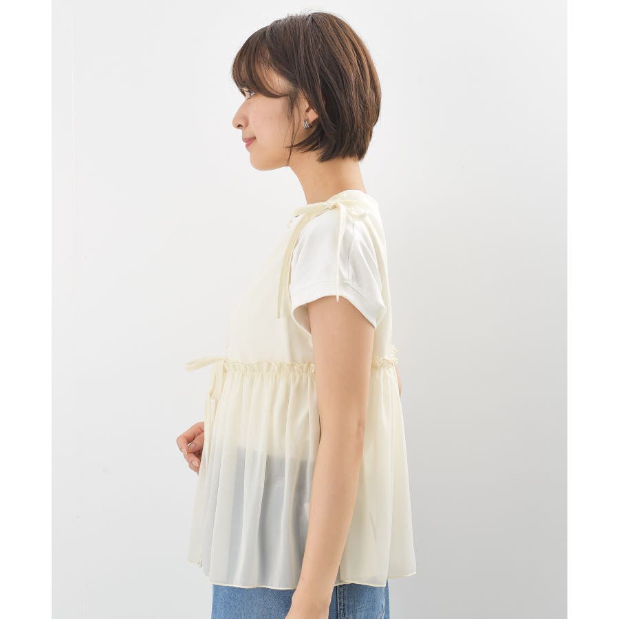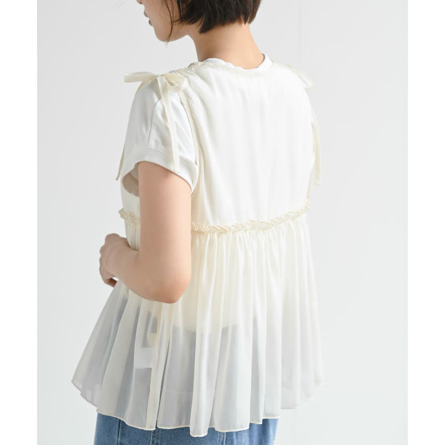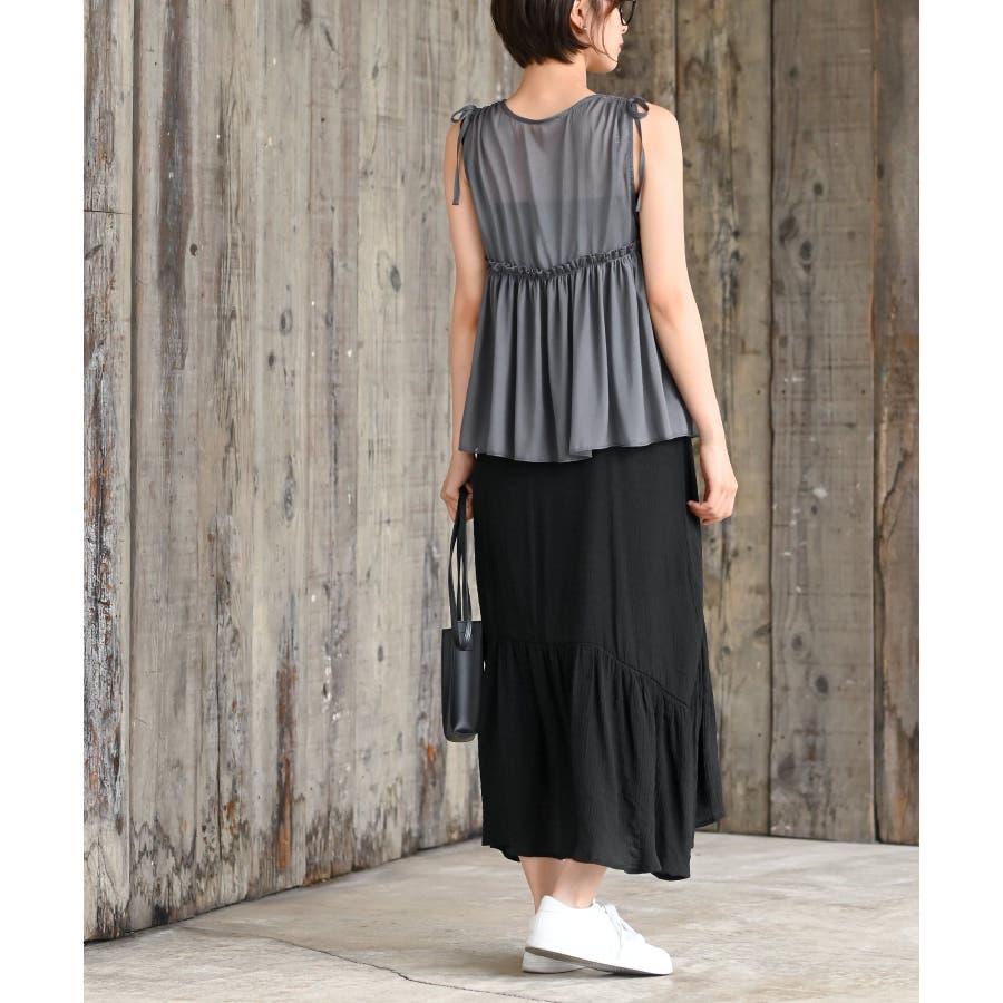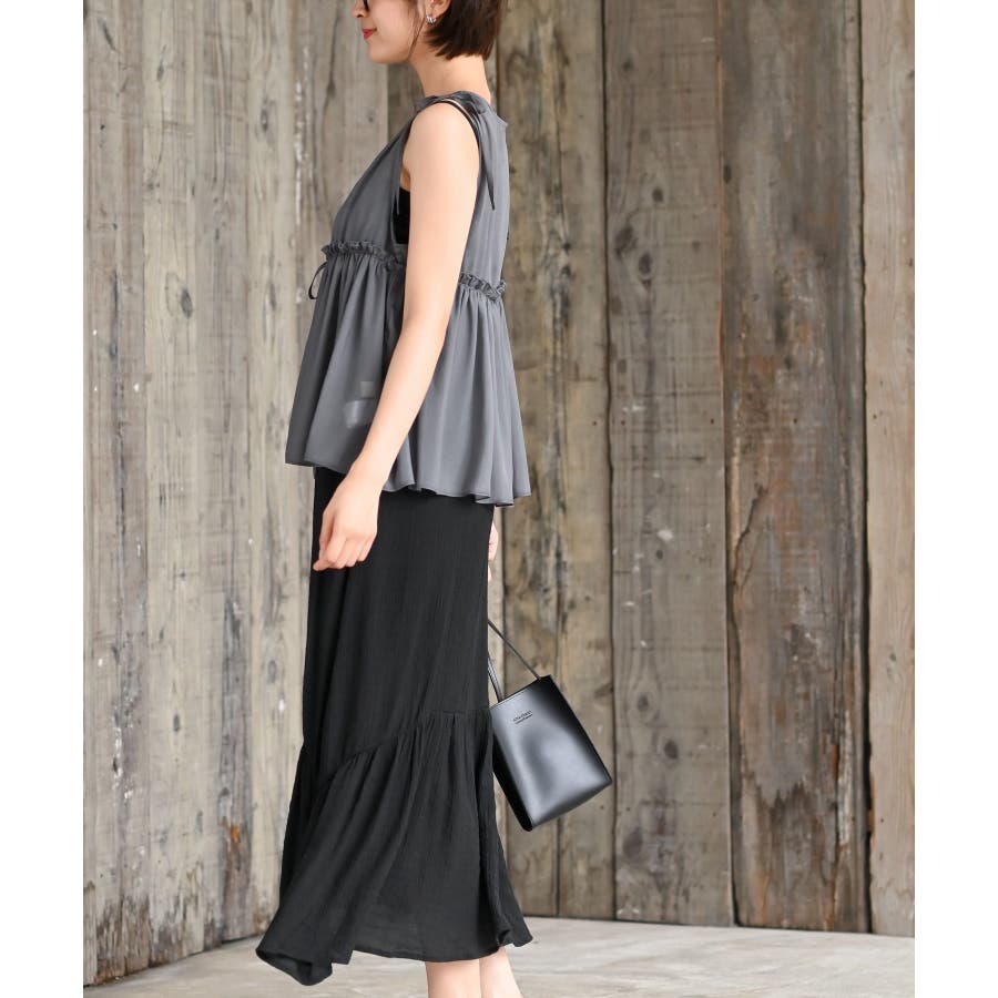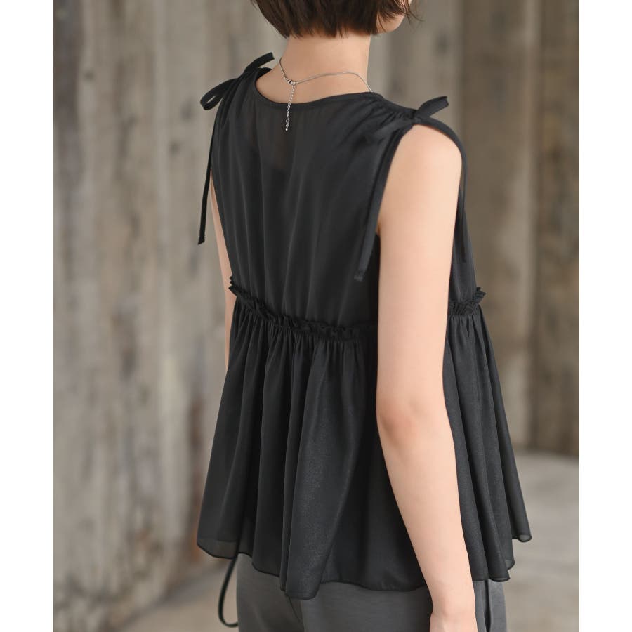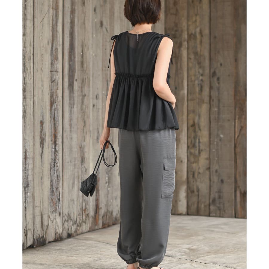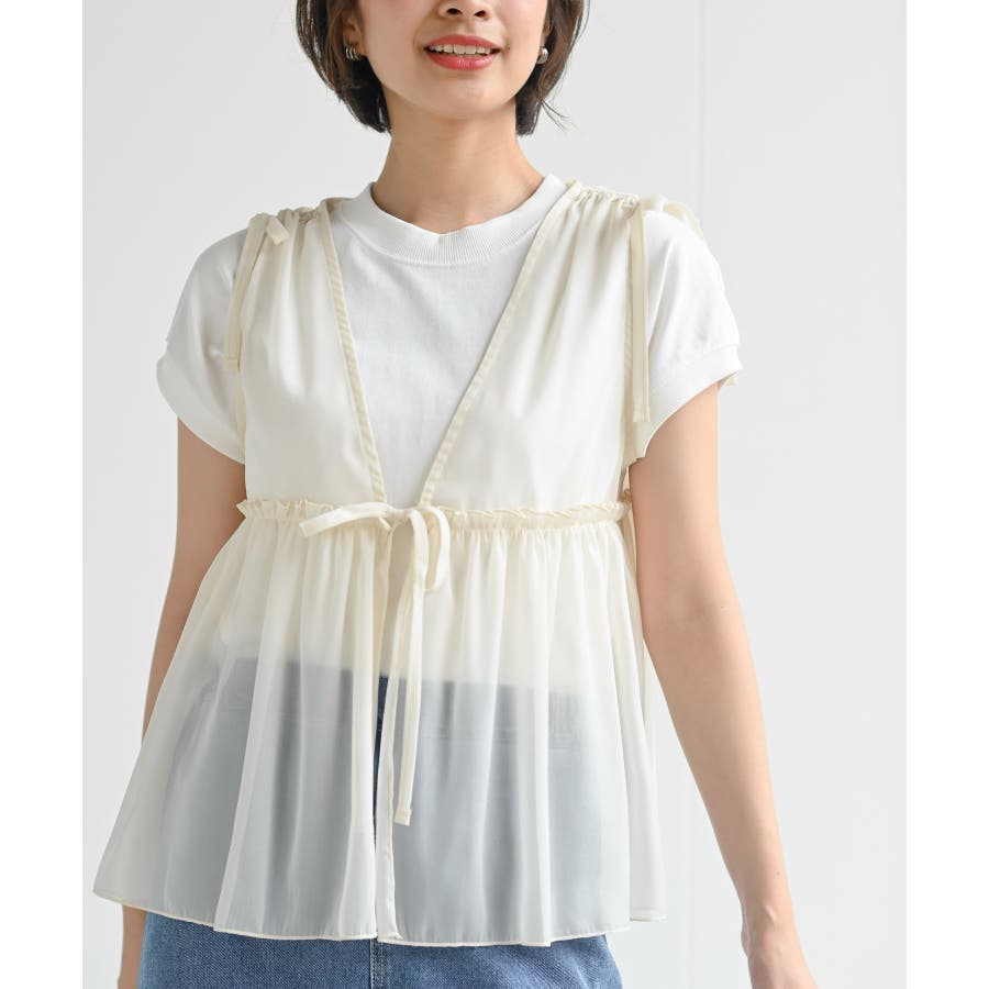 【CHACグレー】光沢シアーリボンベスト