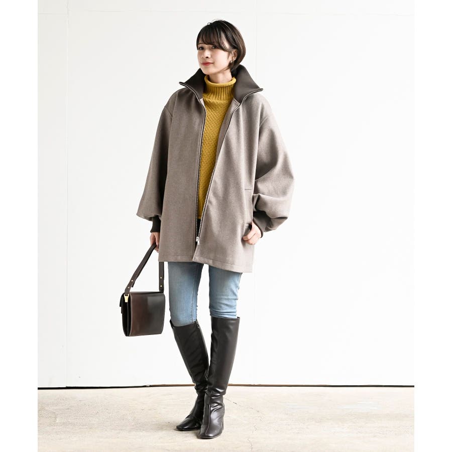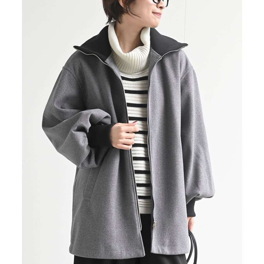 リブ切替ミドルZIPコート